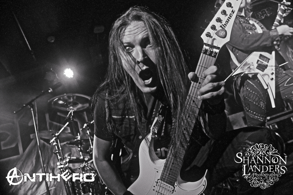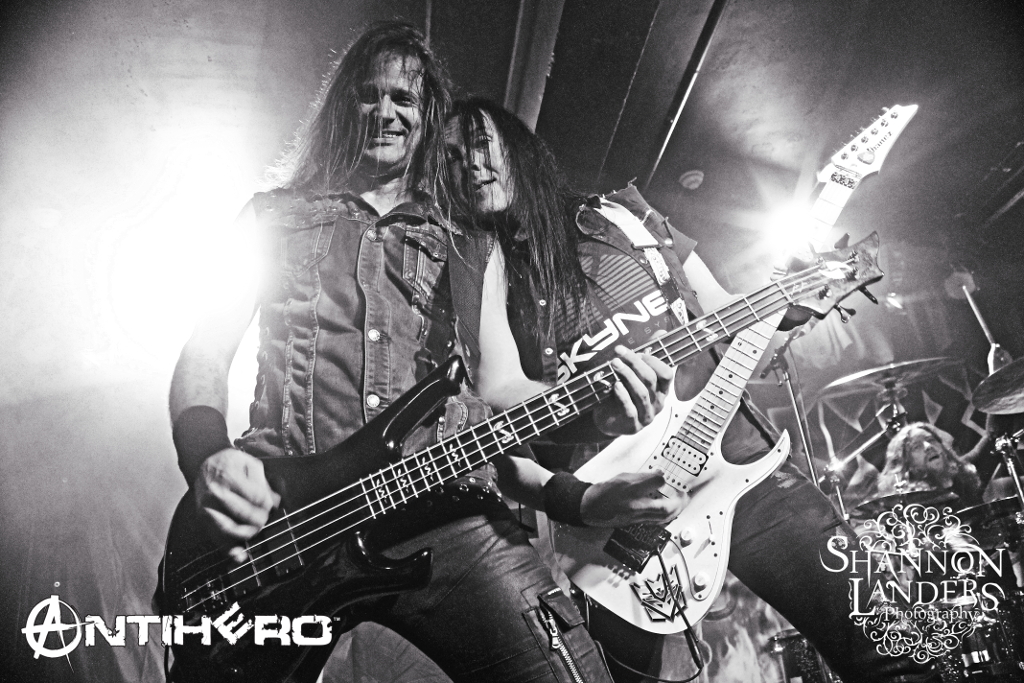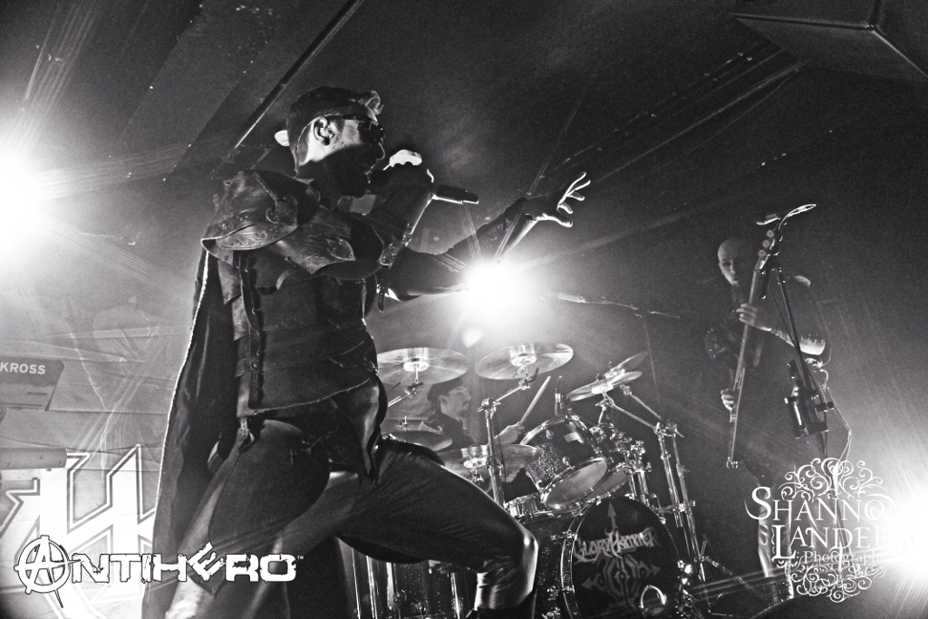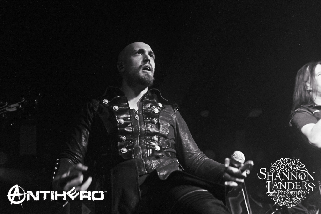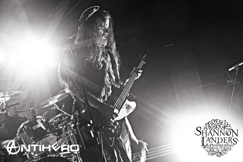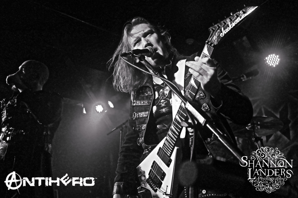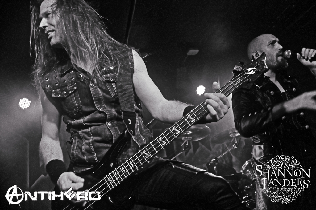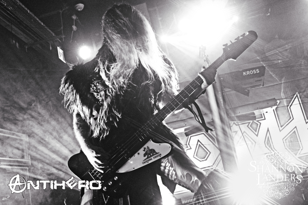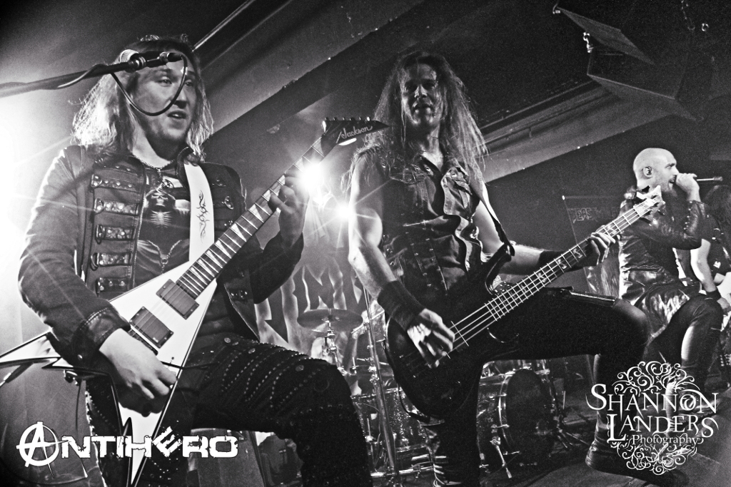 About an hour after doors, where fans had rushed downstairs to the jam-packed room, I finally obtained my photo pass which unfortunately meant missing all but one song by Wind Rose, that I wasn’t allowed to photograph. The photo pit had decreased in size and the room was shoulder-to-shoulder, so after I’d squeezed through, I finally saw a Viking Metal band that looked like they had stepped out of history to roar in your face. There were fur and armour, punches in the air and the crowd shouting for more.