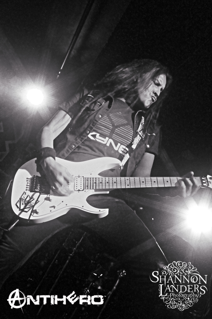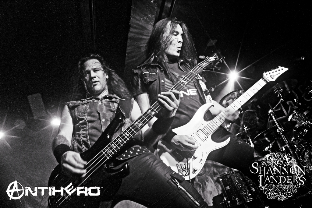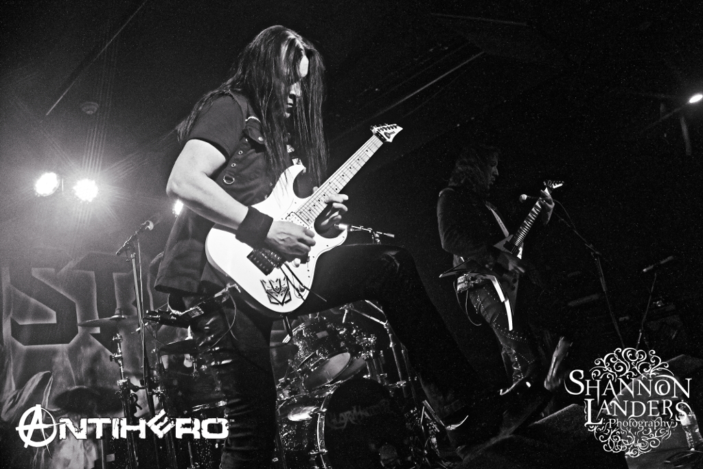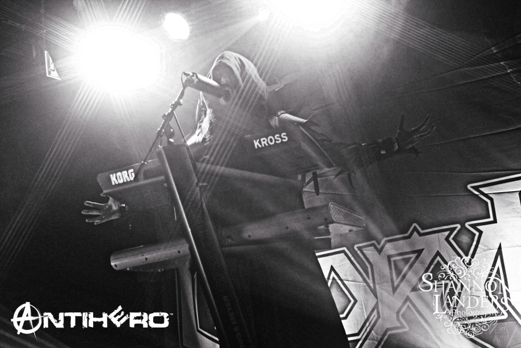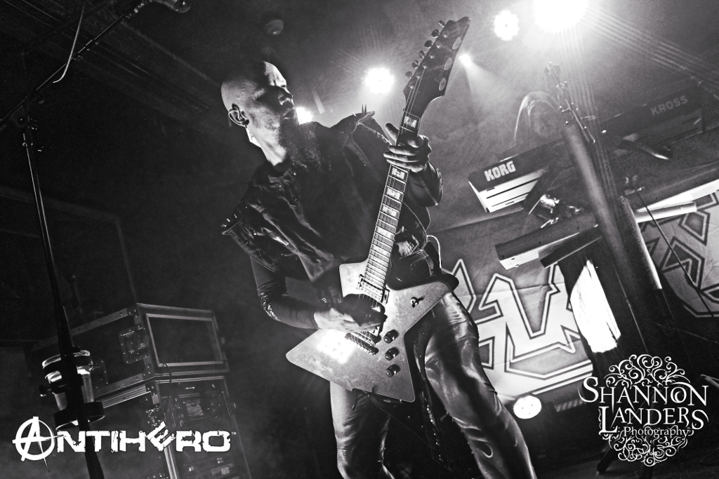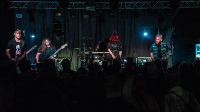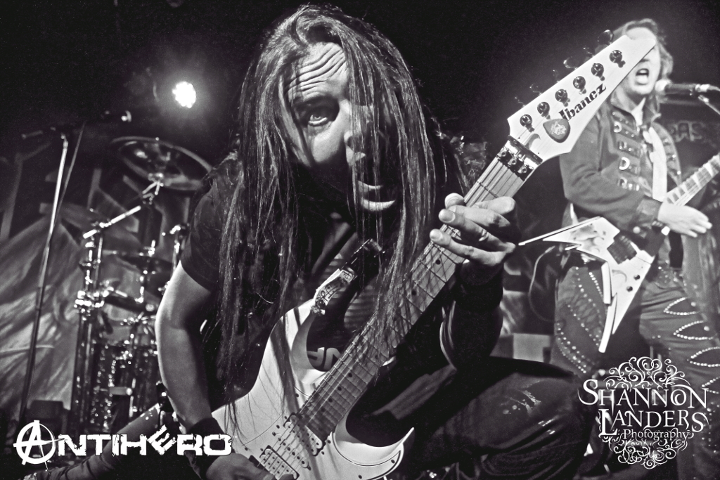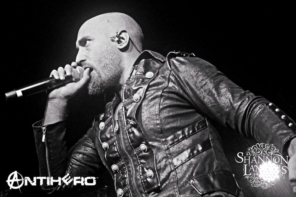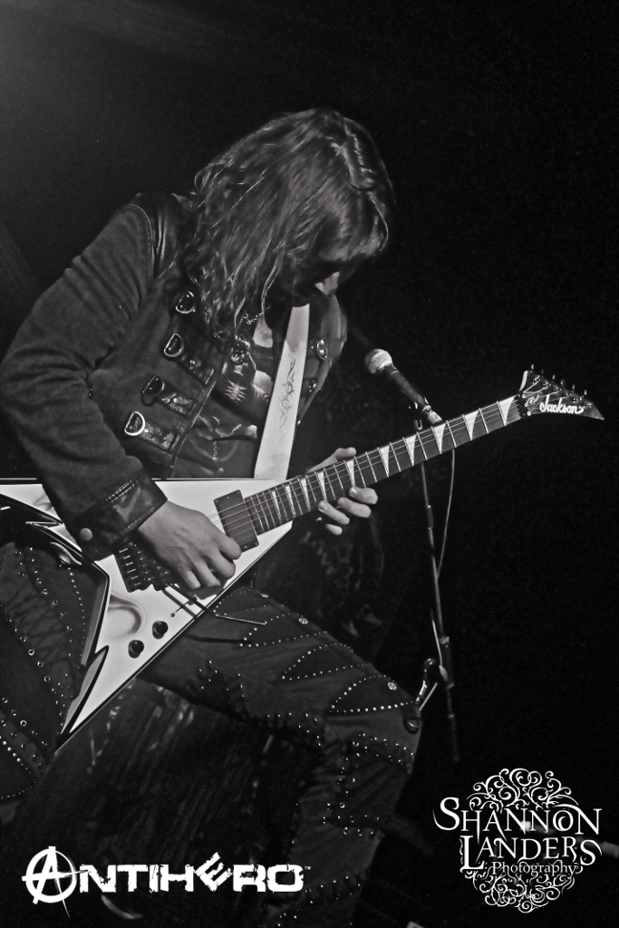 About an hour after doors, where fans had rushed downstairs to the jam-packed room, I finally obtained my photo pass which unfortunately meant missing all but one song by Wind Rose, that I wasn’t allowed to photograph. The photo pit had decreased in size and the room was shoulder-to-shoulder, so after I’d squeezed through, I finally saw a Viking Metal band that looked like they had stepped out of history to roar in your face. There were fur and armour, punches in the air and the crowd shouting for more.
