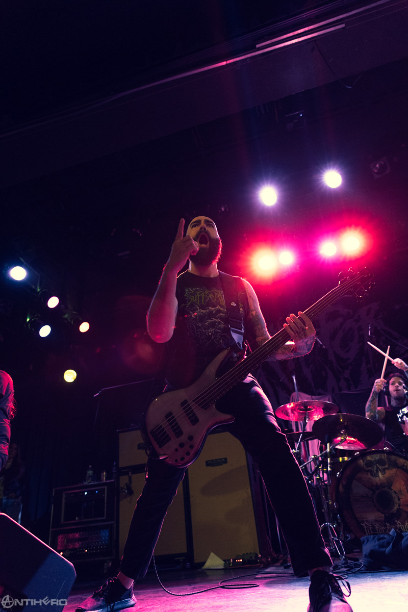 For a show that started at 6:30 pm on a Saturday, the venue was packed with a sea of people dressed in black. Kicking off the music was Ringworm, a hardcore band from Cleveland, Ohio. They brought so much energy to the stage, they drained it from the audience. Anytime they asked, “how’s everyone feelin’ tonight?” they were met with a noise that could barely be classified as loud. They were understandably annoyed to always have to repeat the question. Despite the lackluster audience, Ringworm was nothing short of spectacular. Lots of energy, powerful vocals, and brutal guitar is exactly how a night of metal music should start.