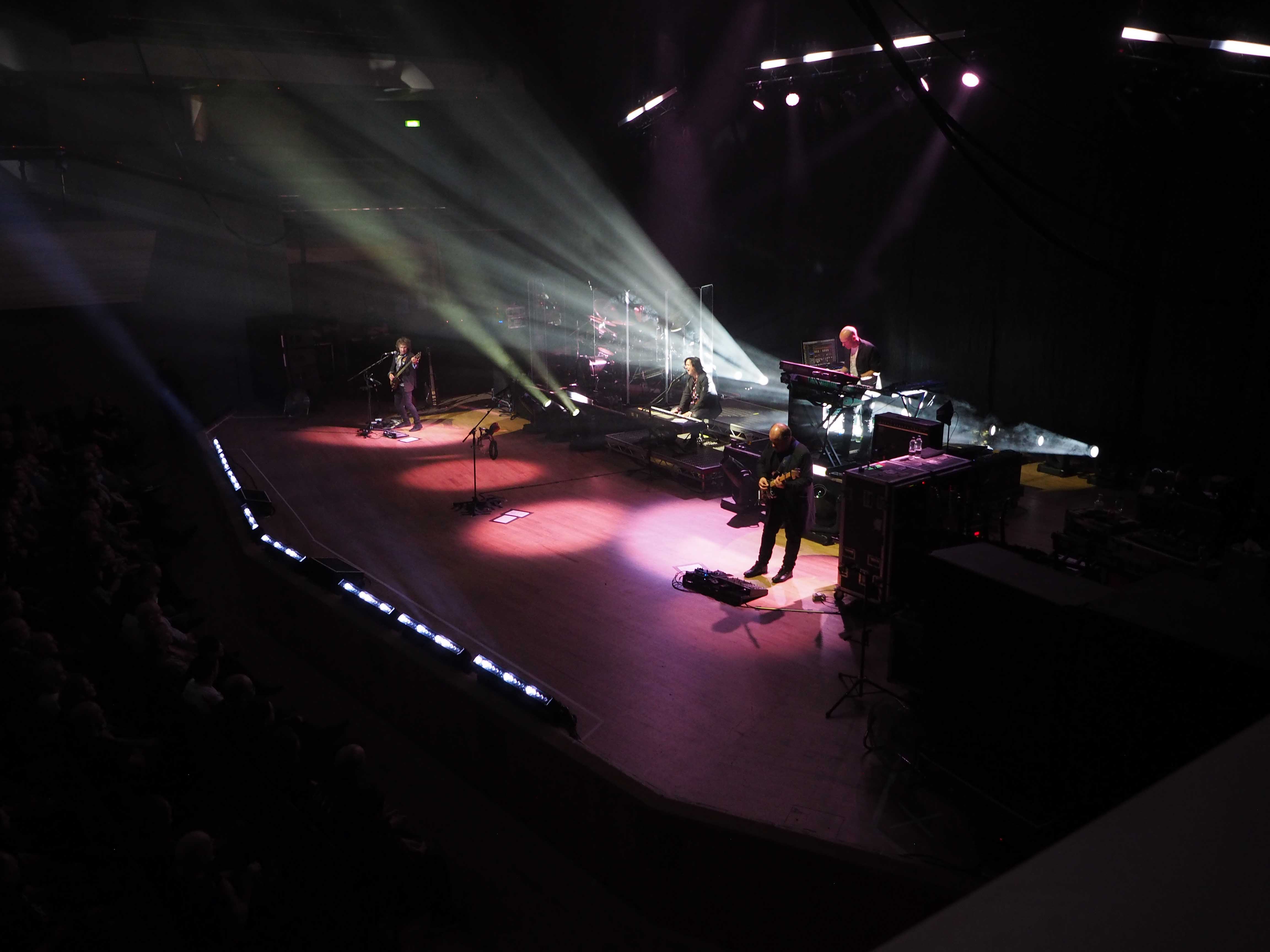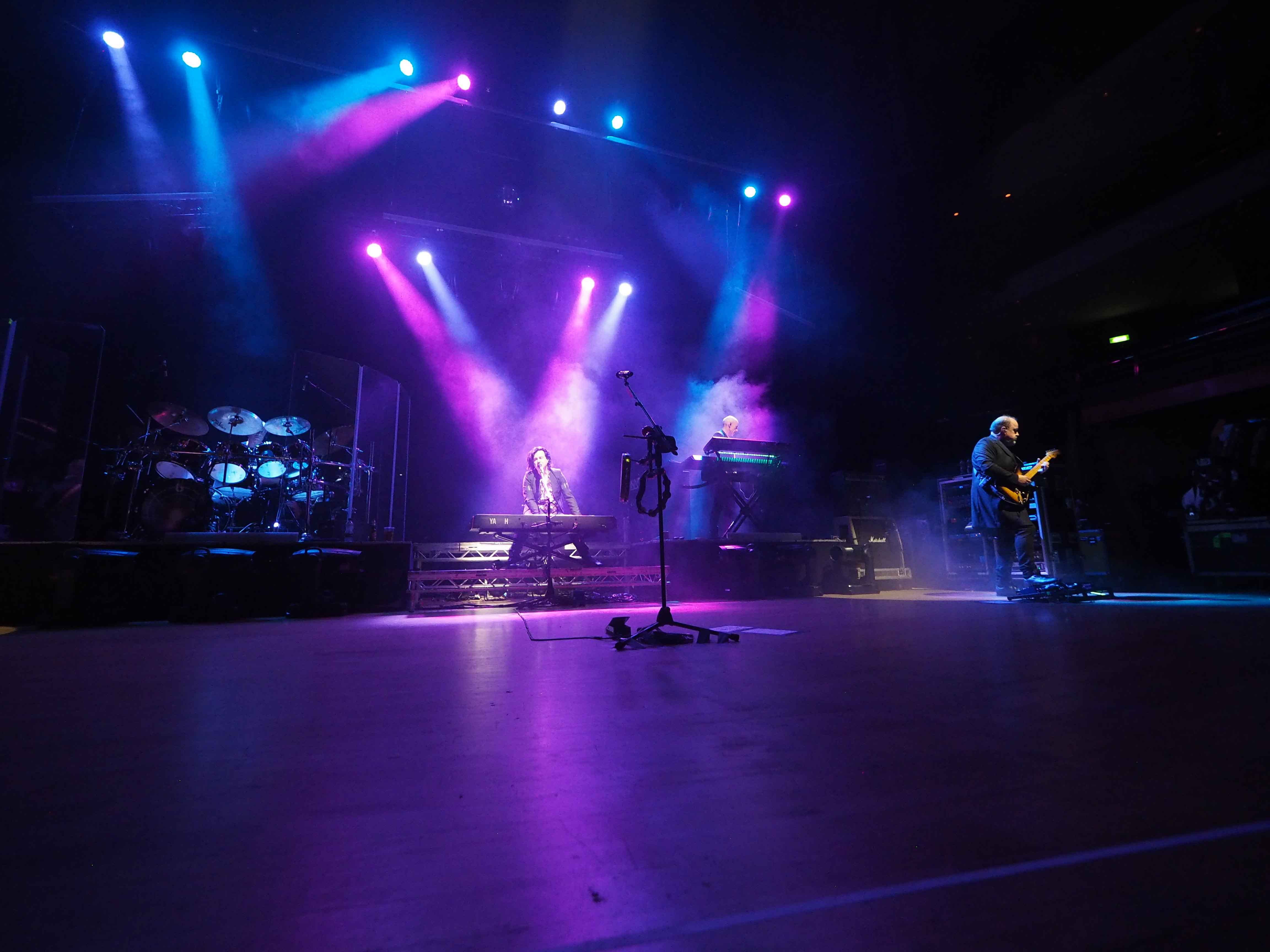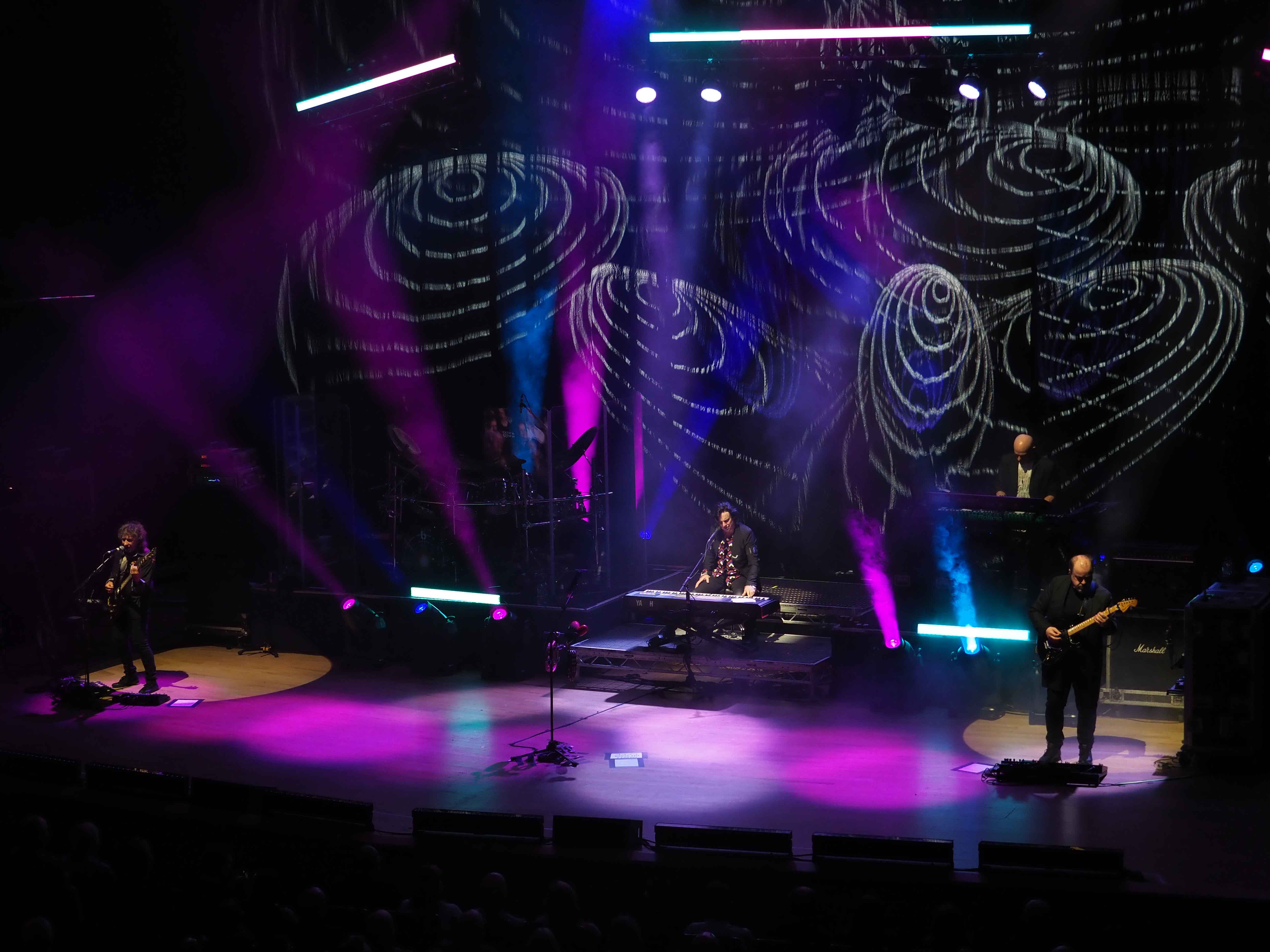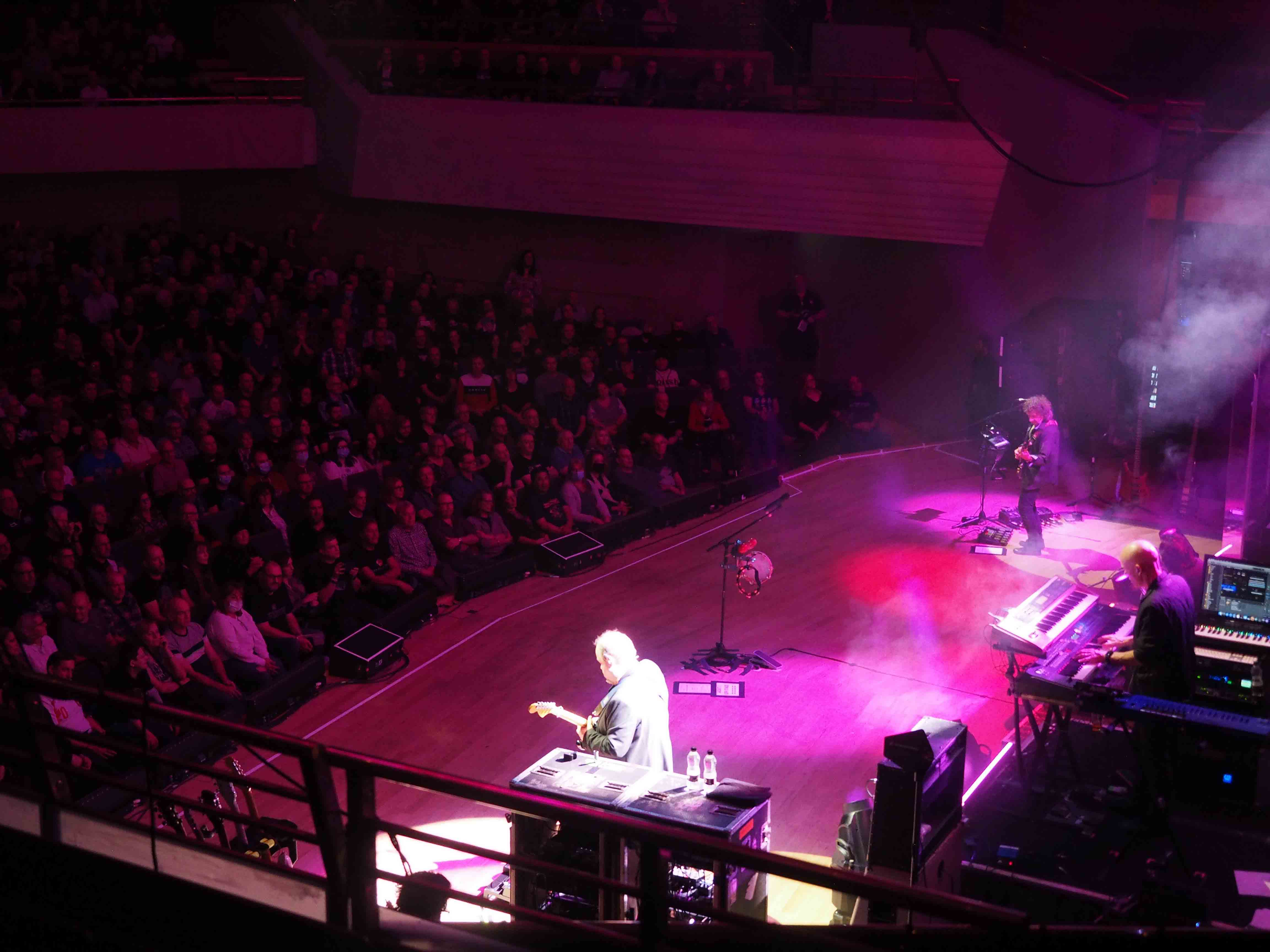 The following trilogy of songs from their 1991 “Brave” album were most welcome. First – “Bridge” starts with the sound of lapping water- and in the auditorium the sound balance was that good you could be fooled into thinking you were stood at the riverside in person. “Living with the big lie” followed by “Runaway”- with a sympathetic light show including a piece whereby there were red and blue lights rather like the light bar on a police car – possibly a nod toward the story that the “Brave “ album tells about a suicidal female on the Severn bridge and the involvement of the police.