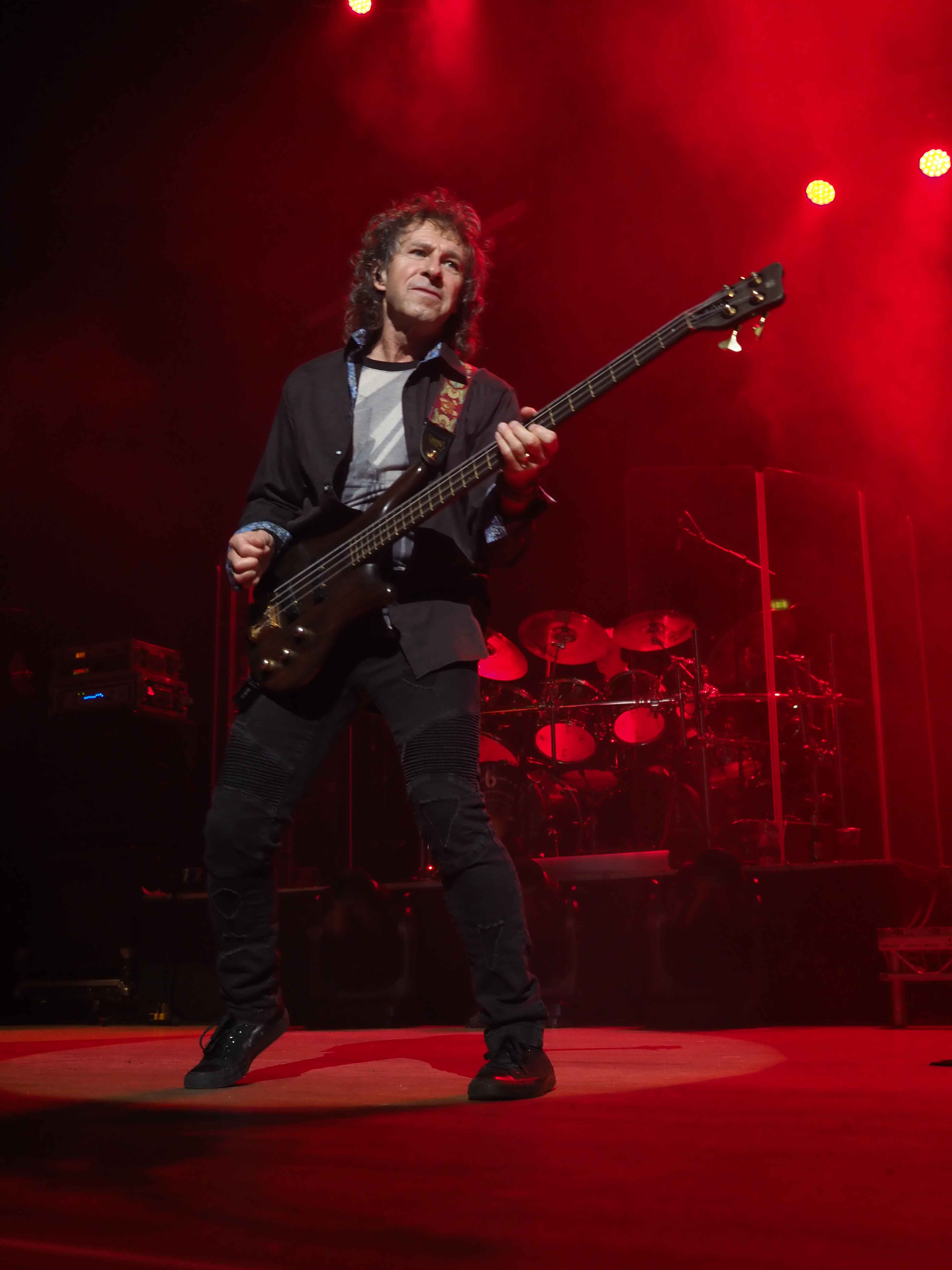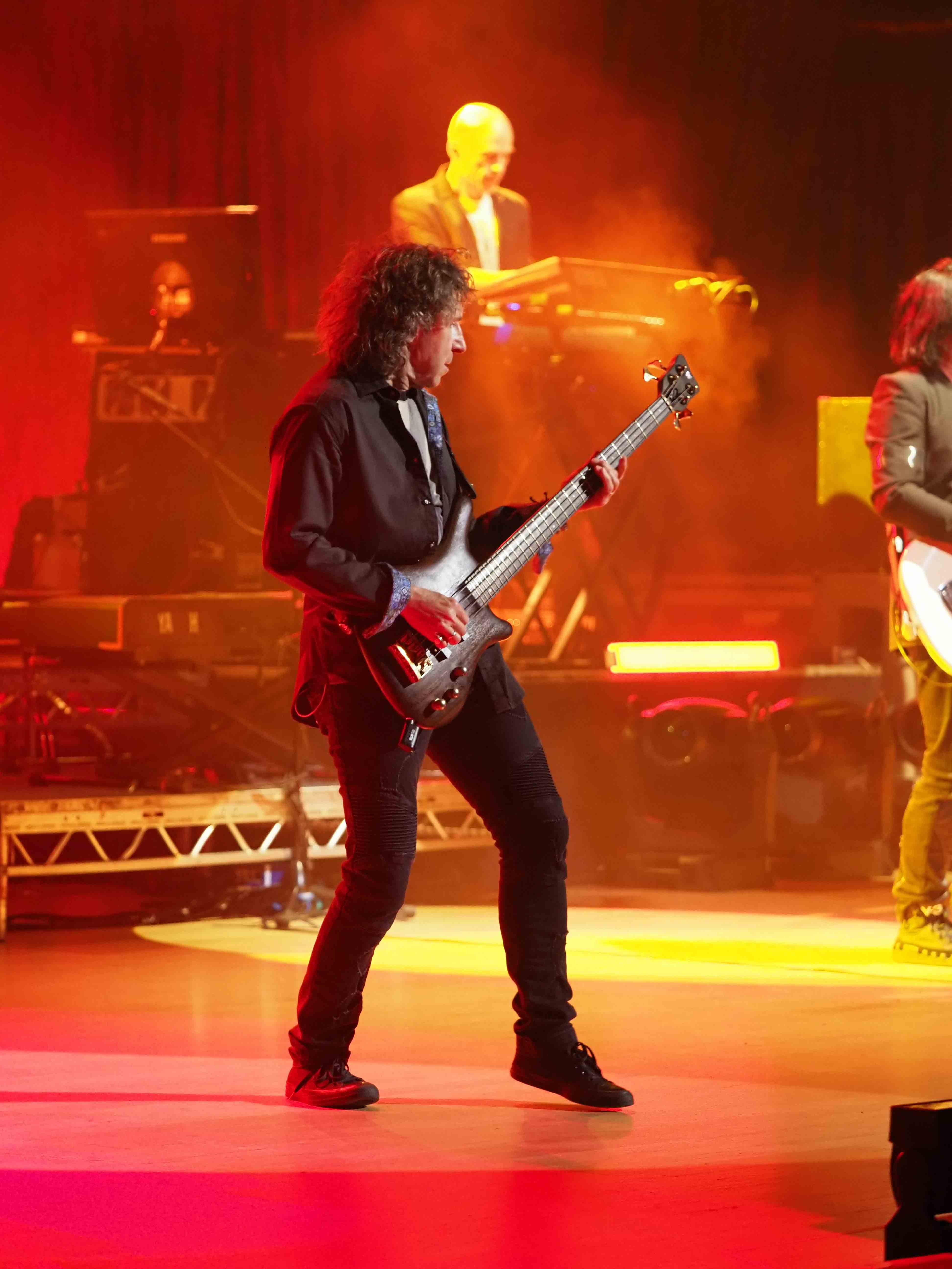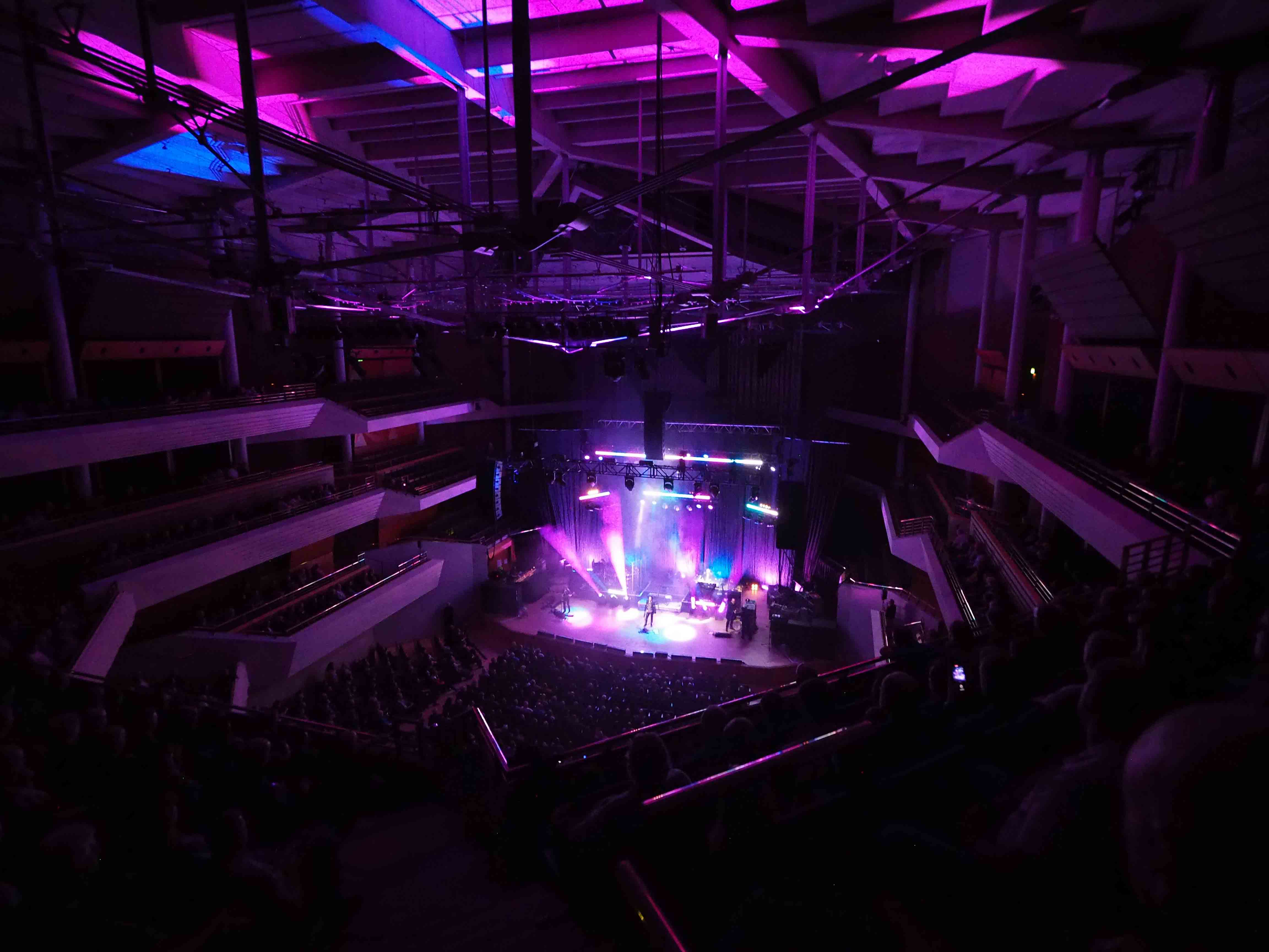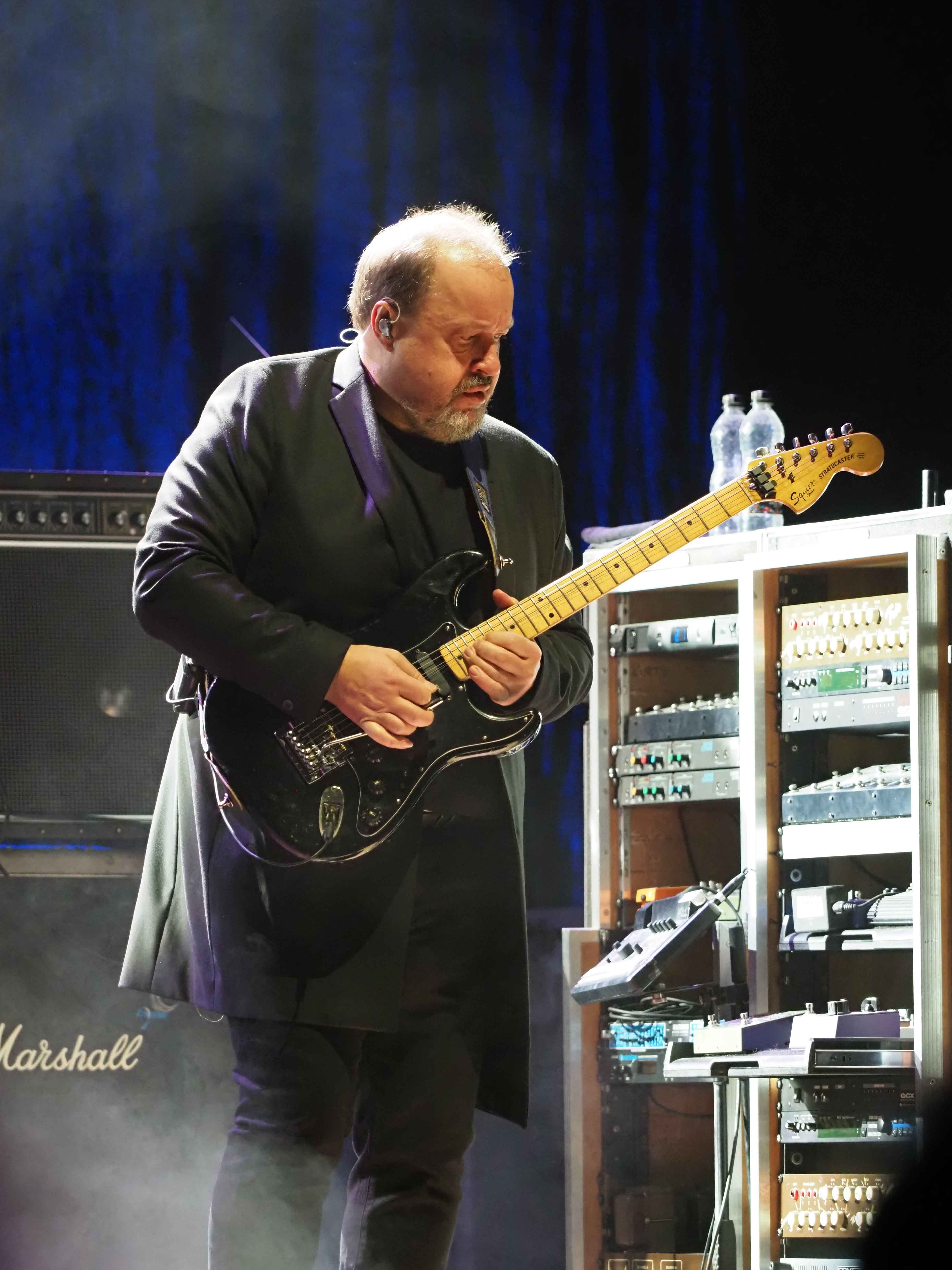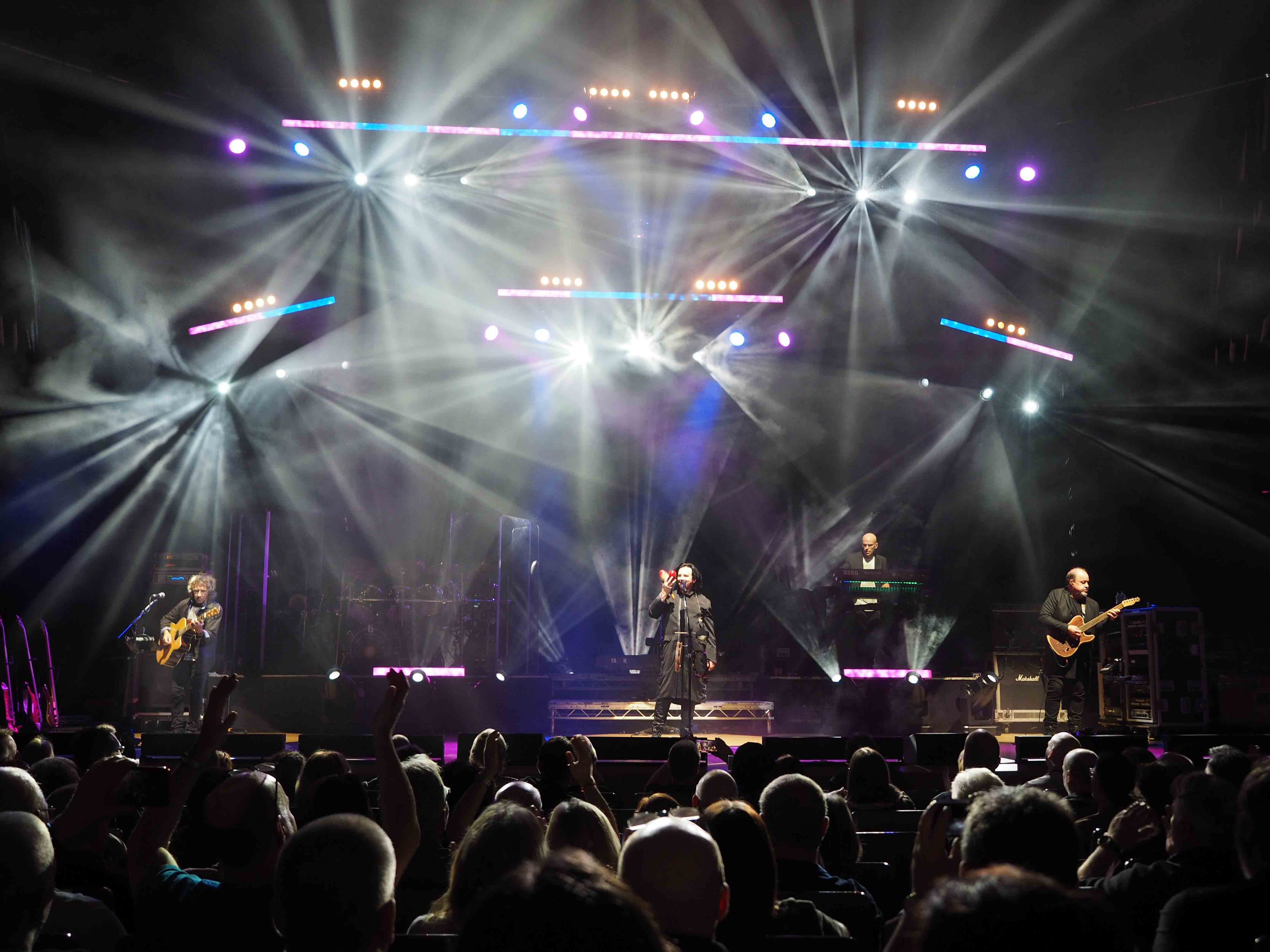 The following trilogy of songs from their 1991 “Brave” album were most welcome. First – “Bridge” starts with the sound of lapping water- and in the auditorium the sound balance was that good you could be fooled into thinking you were stood at the riverside in person. “Living with the big lie” followed by “Runaway”- with a sympathetic light show including a piece whereby there were red and blue lights rather like the light bar on a police car – possibly a nod toward the story that the “Brave “ album tells about a suicidal female on the Severn bridge and the involvement of the police.