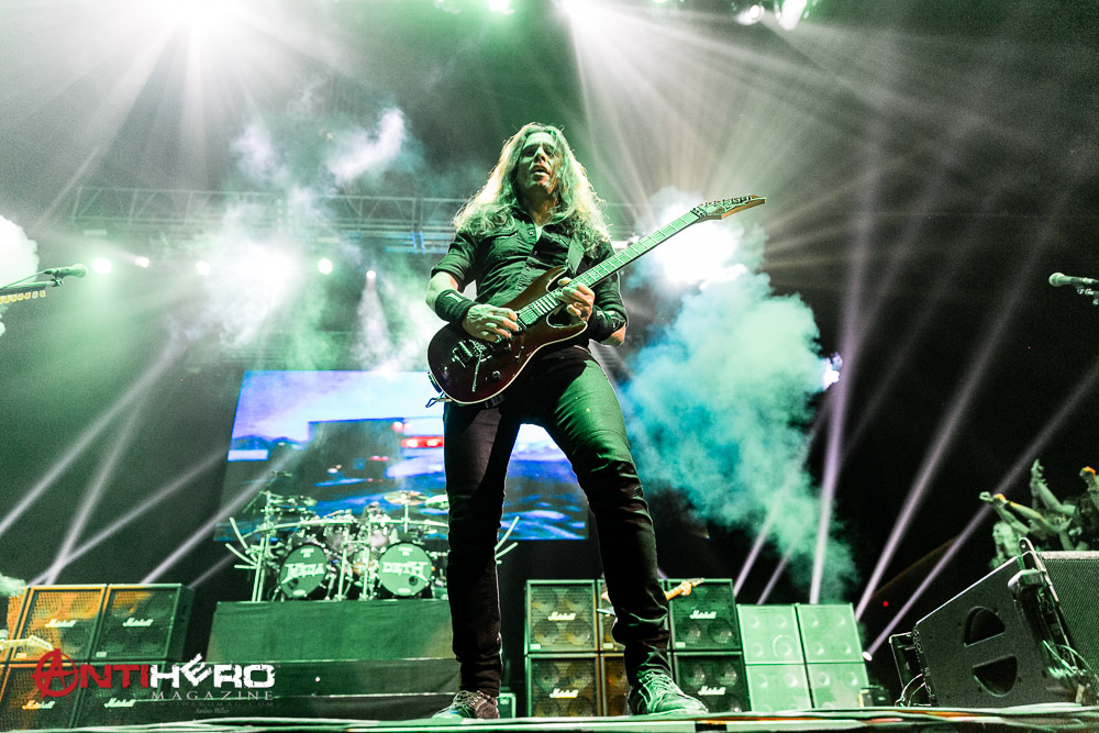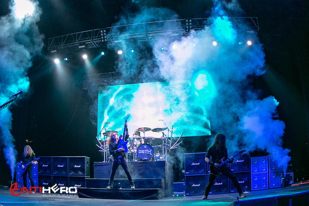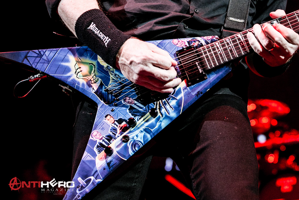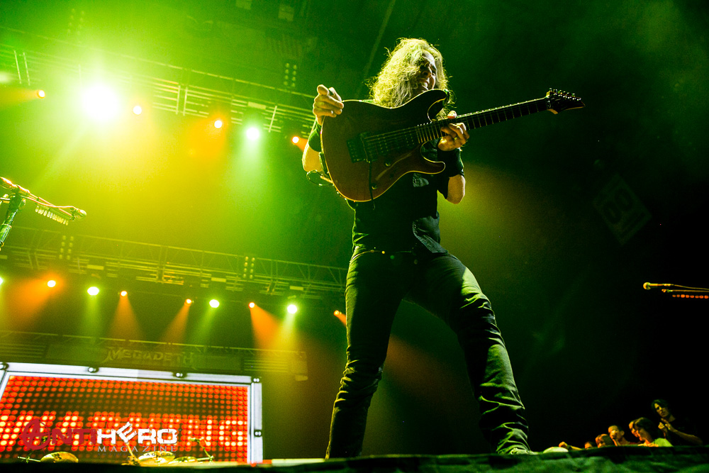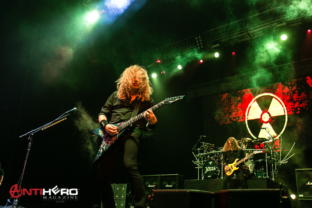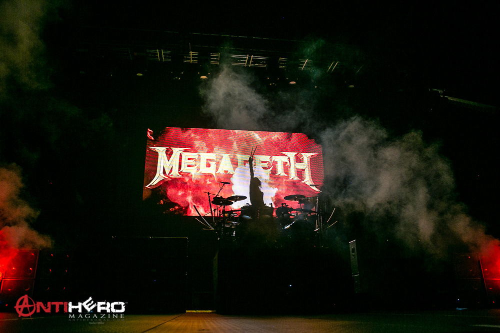 Megadeth, now 35 years strong, have brought a renewed call-to-arms to metal fans old and new on this first tour post-Grammy win for Dystopia. Megadeth hit the stage right on time, kicking the anxious horde into overdrive, pounding out “Hangar 18”.