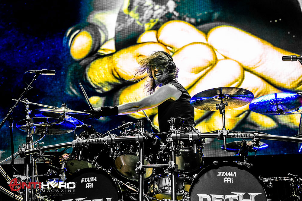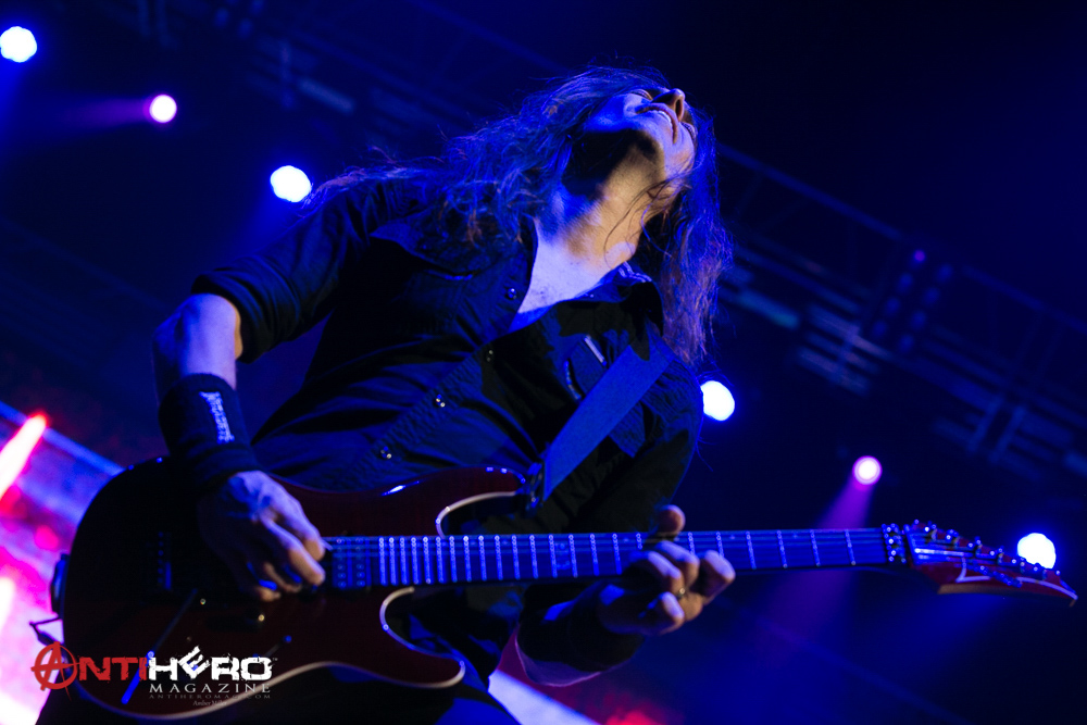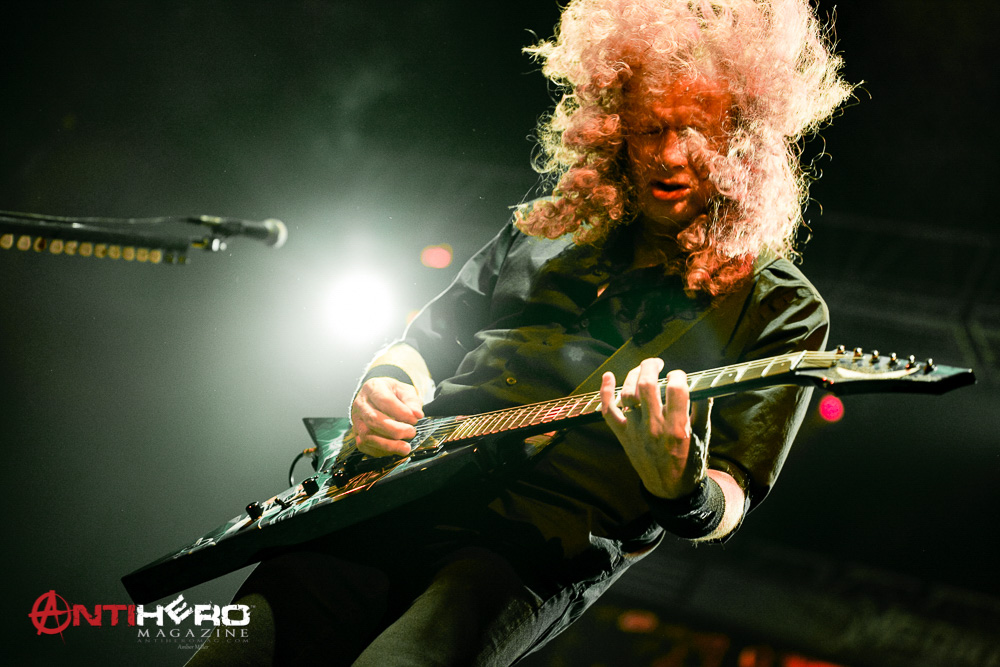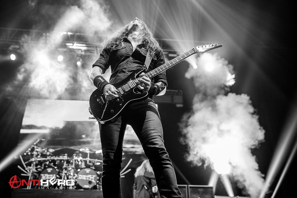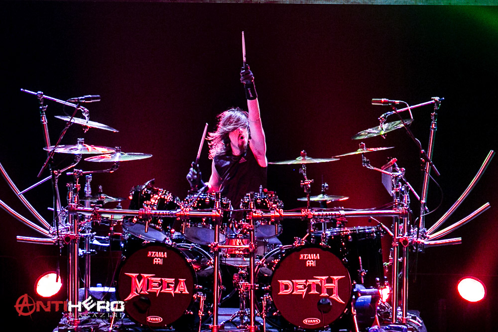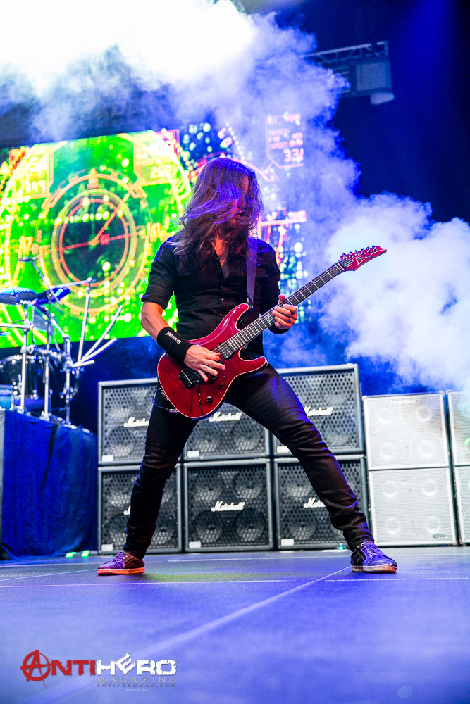 Megadeth, now 35 years strong, have brought a renewed call-to-arms to metal fans old and new on this first tour post-Grammy win for Dystopia. Megadeth hit the stage right on time, kicking the anxious horde into overdrive, pounding out “Hangar 18”.