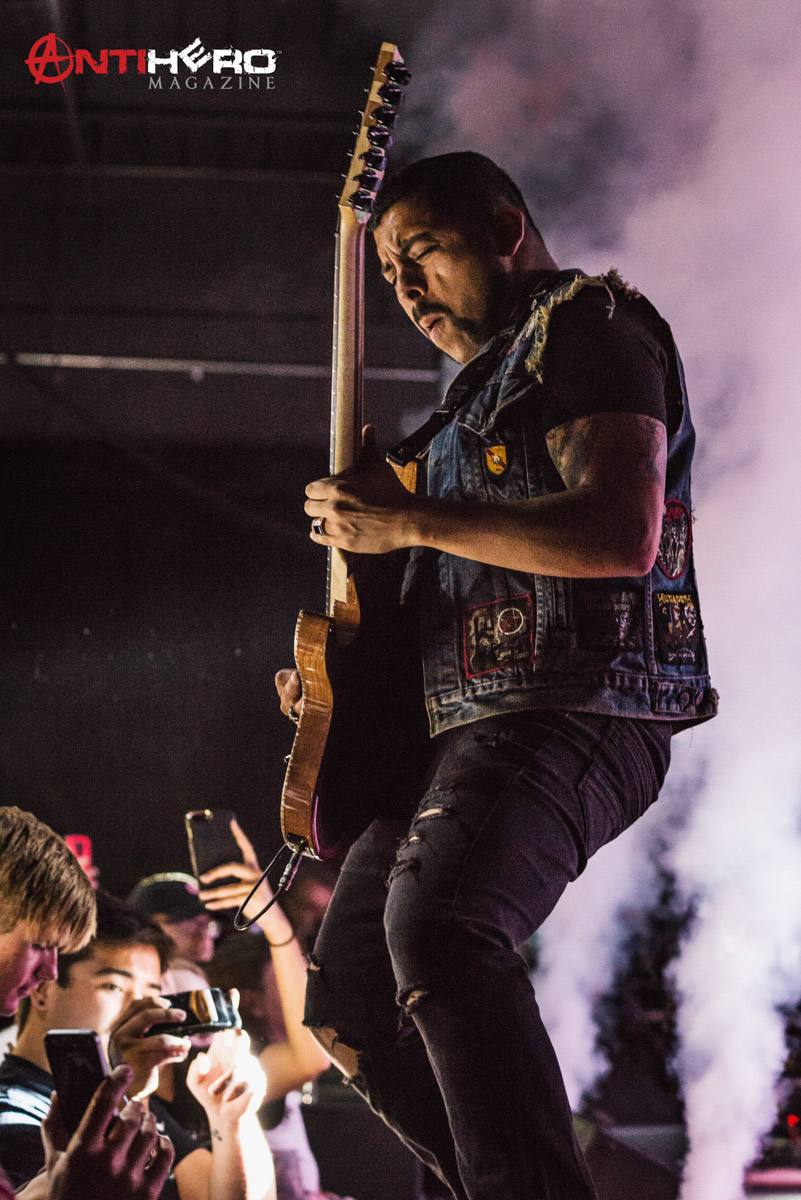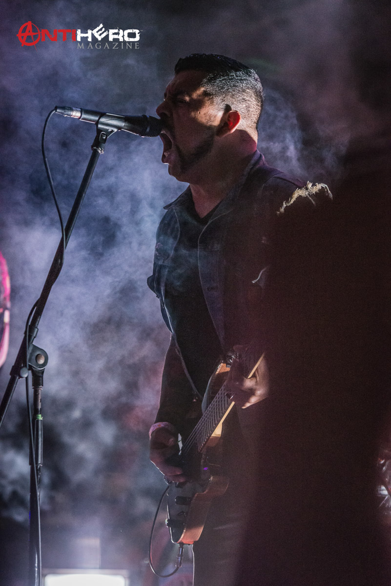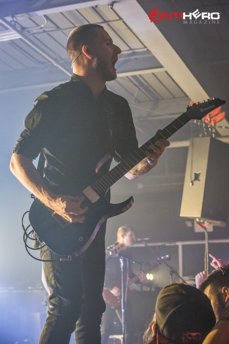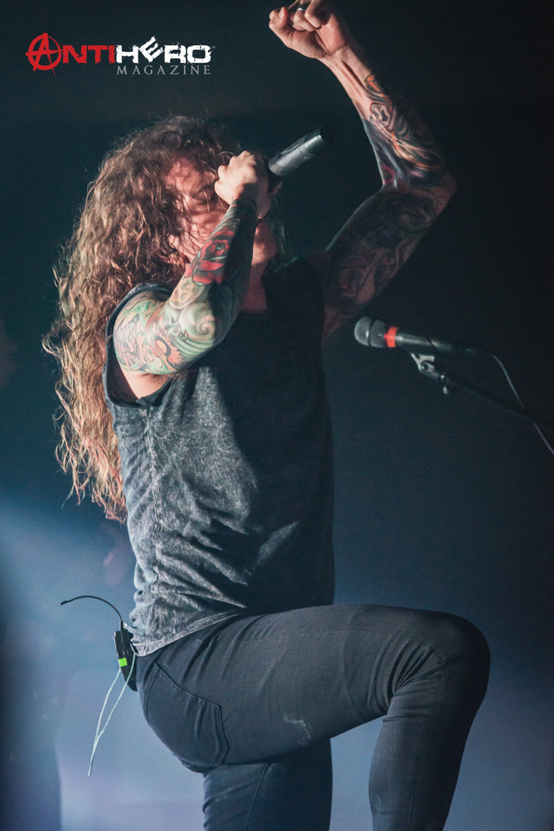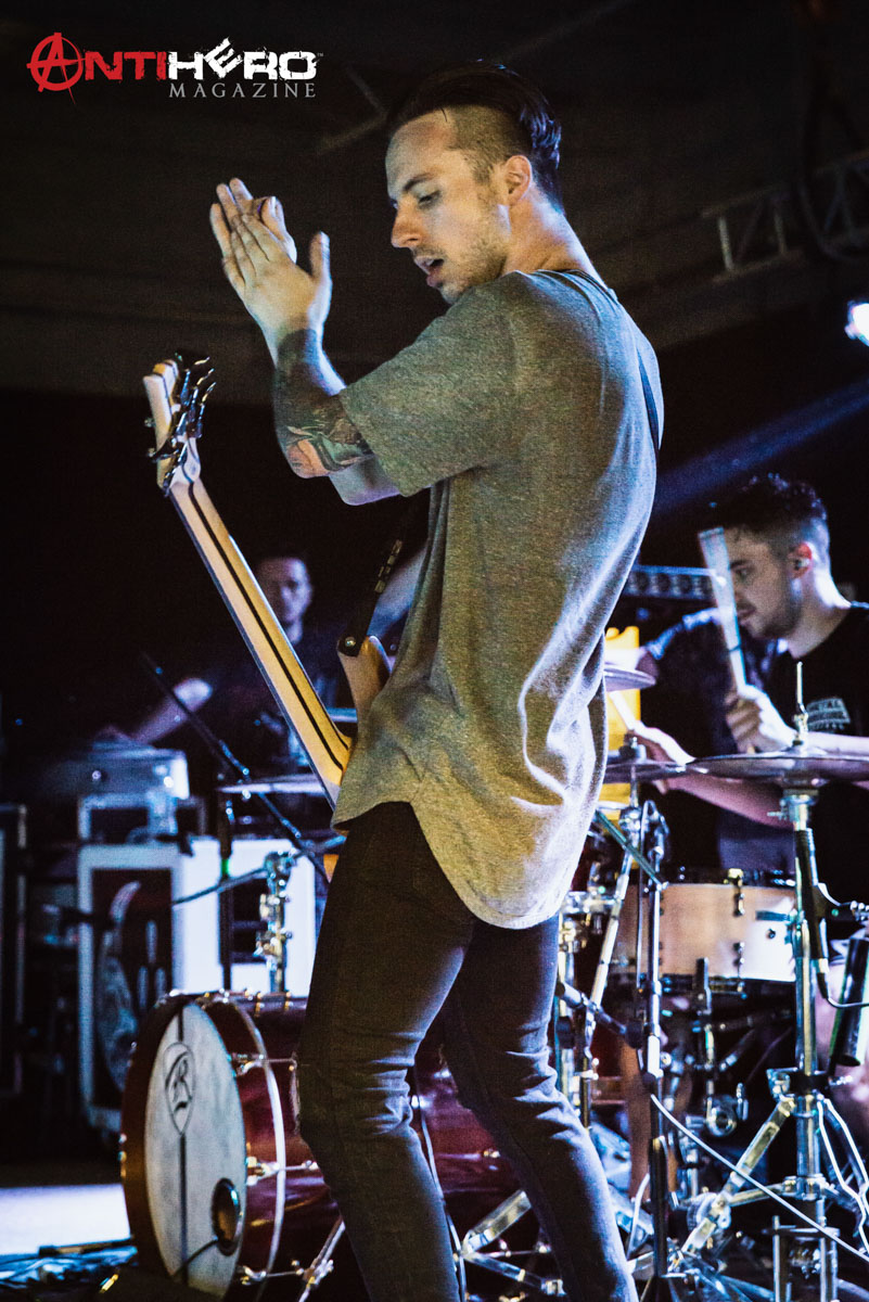 The night started off with the tour’s opening act, Currents. The funny thing about this night was, I had an interview scheduled with the band the following day to talk about their new album, but didn’t know that they were on this same tour until I saw the list of the bands at the mixing board, I got pretty lucky on this one, but my luck didn’t last long. When the lights dimmed and Currents took the stage, I raised my camera to begin firing images off, but I quickly noticed the severe lack of lighting that I needed to capture these bands in action. Currents and their new frontman, Brian Willie, did not disappoint with their on-stage performance. This was the band’s first major tour, outside of their home in Connecticut, using the opportunity to capture the attention and the love of the fans in the crowd.