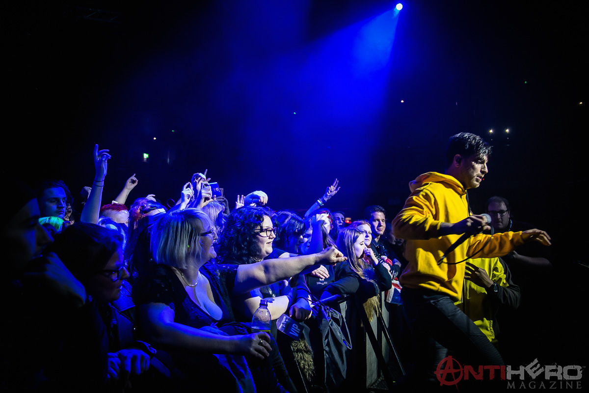 From start to finish it has been mental! With a venue at almost full capacity and the majority of the fans loving INK, this place was jumping. With an ego so high it’s touching the roof, lead singer “Spencer Charnas” had the crowd eating at the palm of his hand. Opening up the set with “Communion of the Cursed”, it went down a treat! Not even one song in and Spencer comes off stage and sings from the barrier, pleasing all the fans in the vicinity. Spencer loves Manchester! It’s definitely been the best live set so far in the UK! Heavy drums, riffs, and a mix of soft and hard vocals making a perfect mix and setting the mood on a high tonight! Each track becoming more addictive, making you want more! Despite a short set, INK played tracks like “The Plot Sickens, Enjoy Your Slay”, and ending it with “Me, Myself and Hyde”.