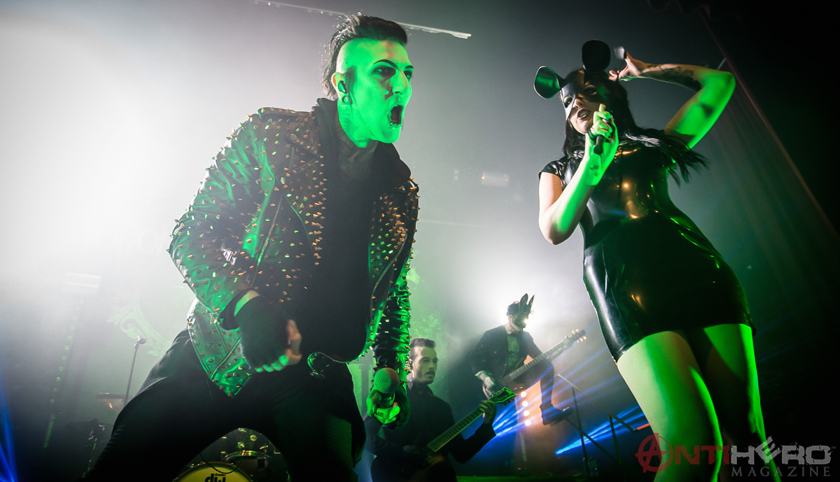 Opening the set with new single “Rats”, which is a definite crowd pleaser, two divine dancers appear on stage. From start to finish the crowd is loving it! Singing and cheering along to each track like a school choir. During the set, one of their classics “Abigail” is played and Ice Nine Kills singer Spencer comes on stage to assist Chris Motionless, which was perfect.