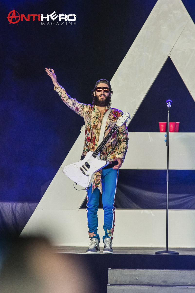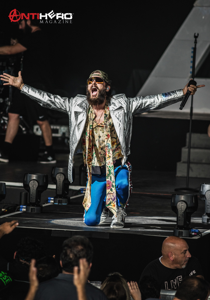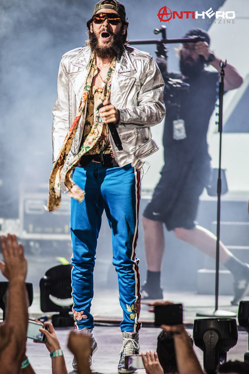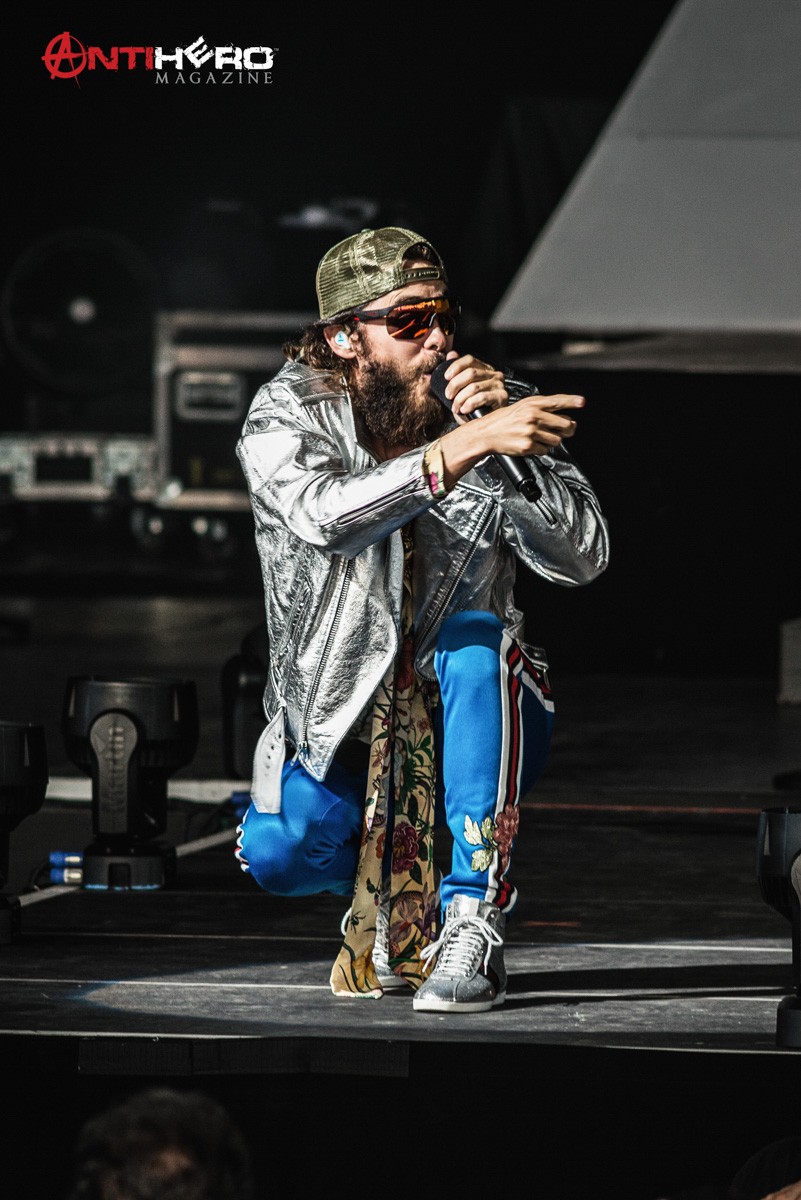 Due to traffic, I made it to the PNC Music Pavilion in Charlotte, minutes before 30 Seconds To Mars took the stage. I had just enough time to find my spot and click my lens on before the lights dimmed for 30 Seconds To Mars’ performance. When I heard that they were coming back to North Carolina for the first time since 2014, I knew I had to make the show. This band always delivers when it comes to their live performances. As soon as the band walked out onto the stage the crowd erupted into cheers and screams, starting their set with one of their bigger hits, “Up In The Air”.