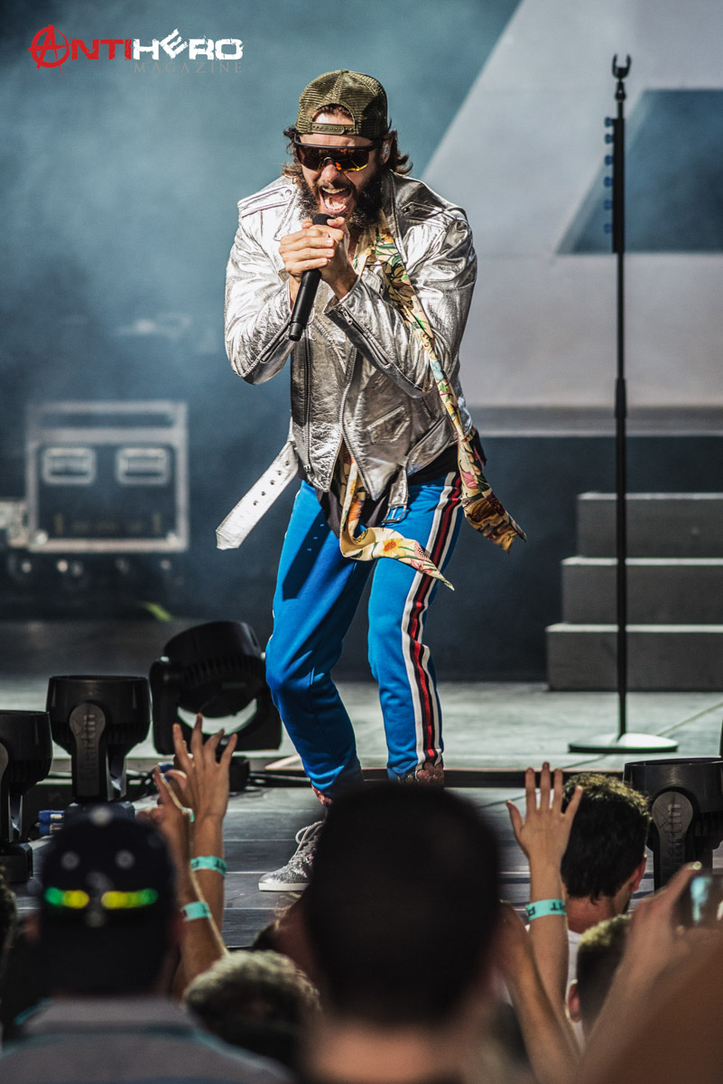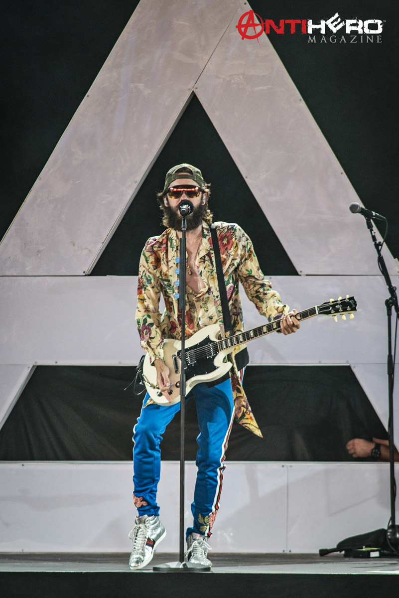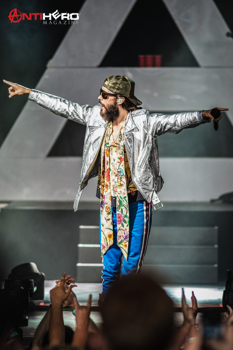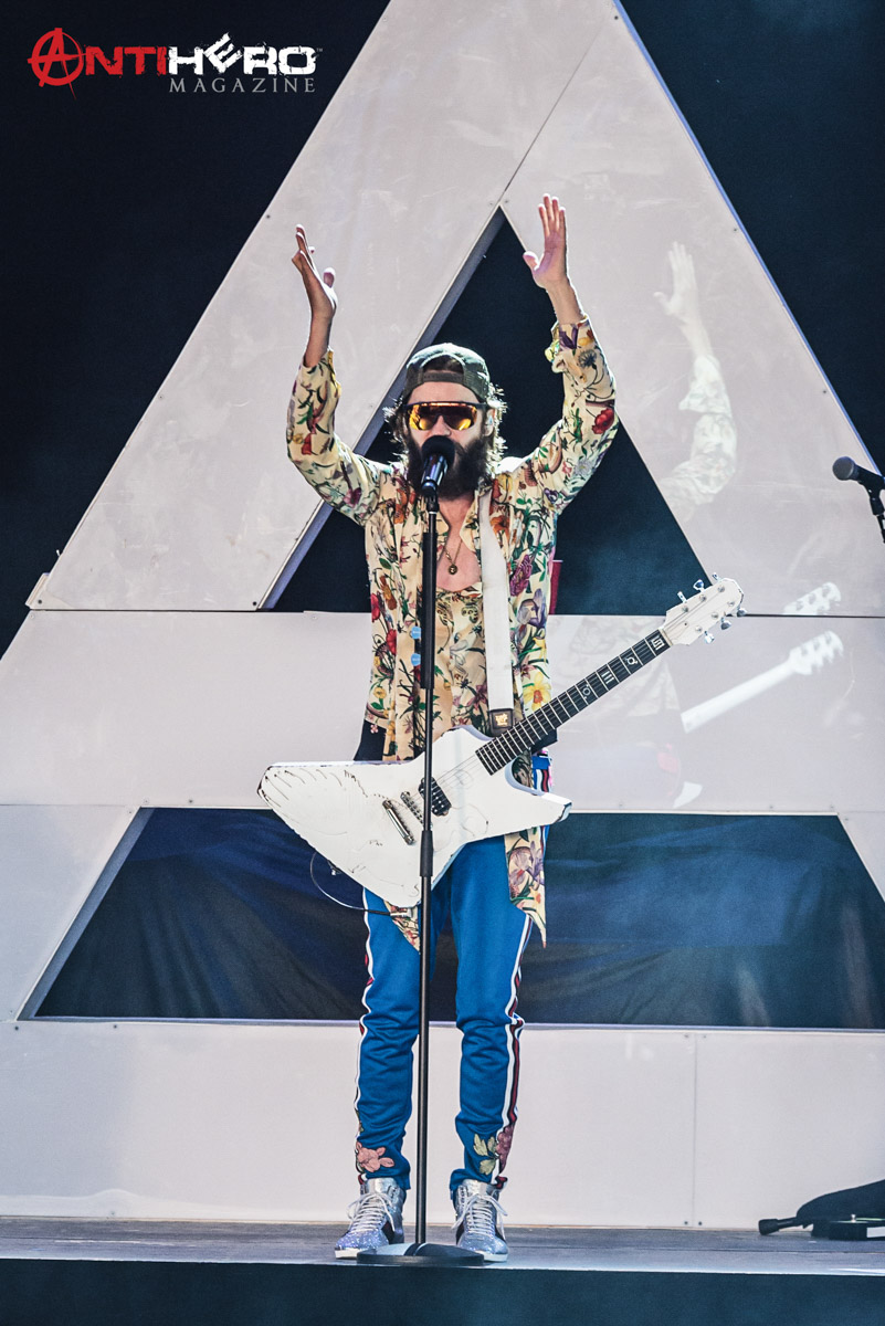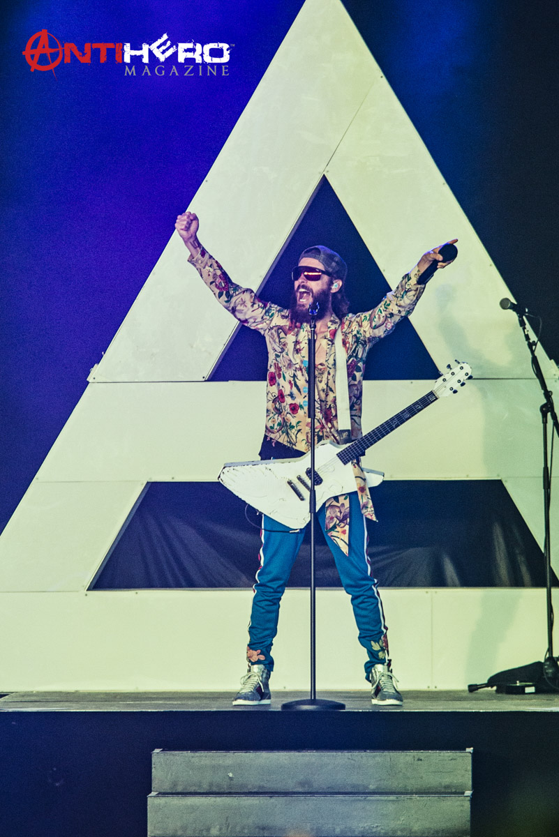 Due to traffic, I made it to the PNC Music Pavilion in Charlotte, minutes before 30 Seconds To Mars took the stage. I had just enough time to find my spot and click my lens on before the lights dimmed for 30 Seconds To Mars’ performance. When I heard that they were coming back to North Carolina for the first time since 2014, I knew I had to make the show. This band always delivers when it comes to their live performances. As soon as the band walked out onto the stage the crowd erupted into cheers and screams, starting their set with one of their bigger hits, “Up In The Air”.