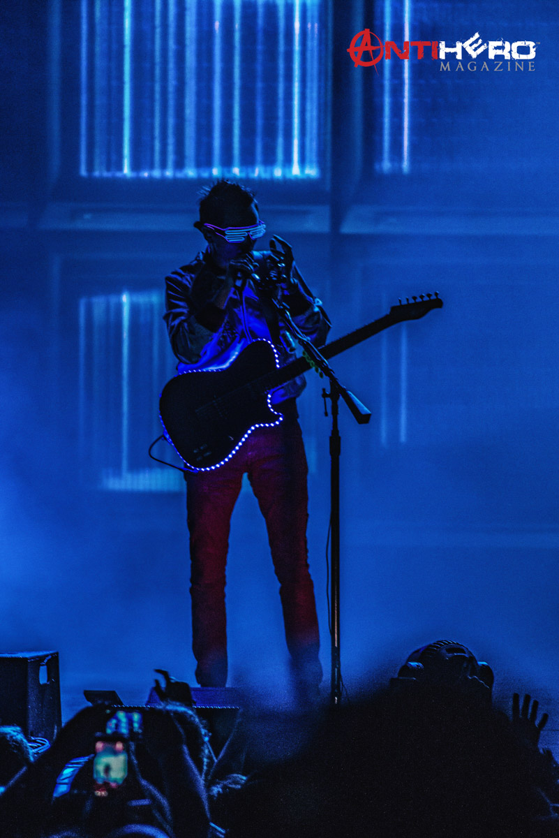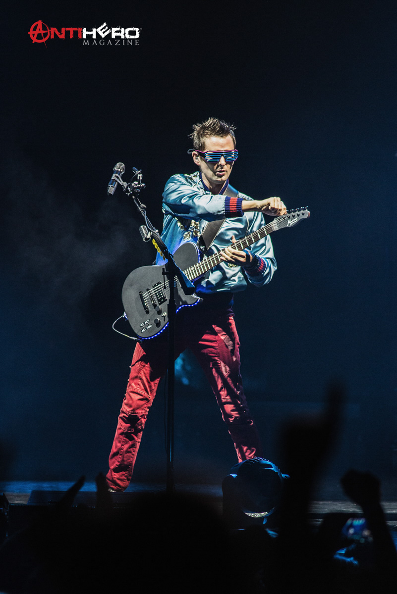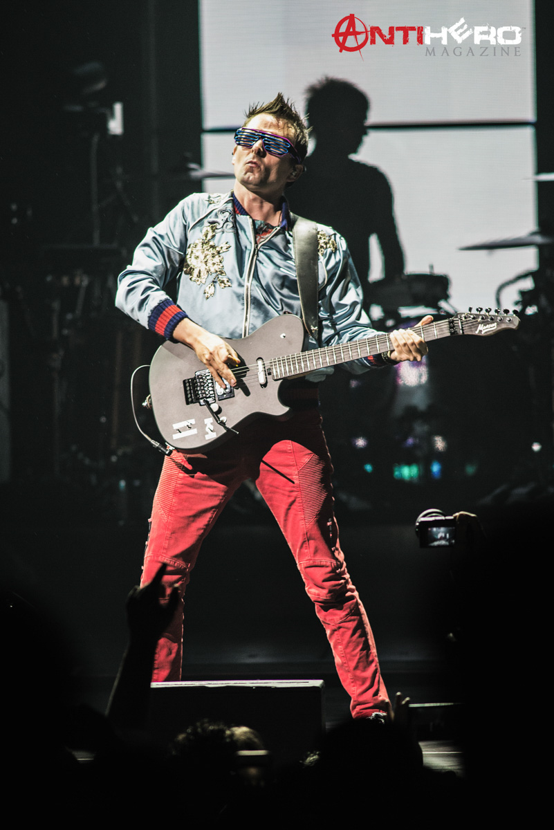 Once the powerful storm moved out of the area, attendees made their way back to their seats to prepare for the night’s headlining act, Muse. The one thing that I have noticed recently is that many foreign acts focus on making their live shows spectacular, with their use of stage props and lighting. I had seen Muse live on YouTube videos from their performances in other countries, but I had never seen them in person until now. They delivered exactly what I expected from their over-the-top stage lighting that was perfect for photography, to their custom instruments with light inlays. Every aspect of their show was memorable and the setlist was exactly what the fans wanted, playing all of their hits from their career.