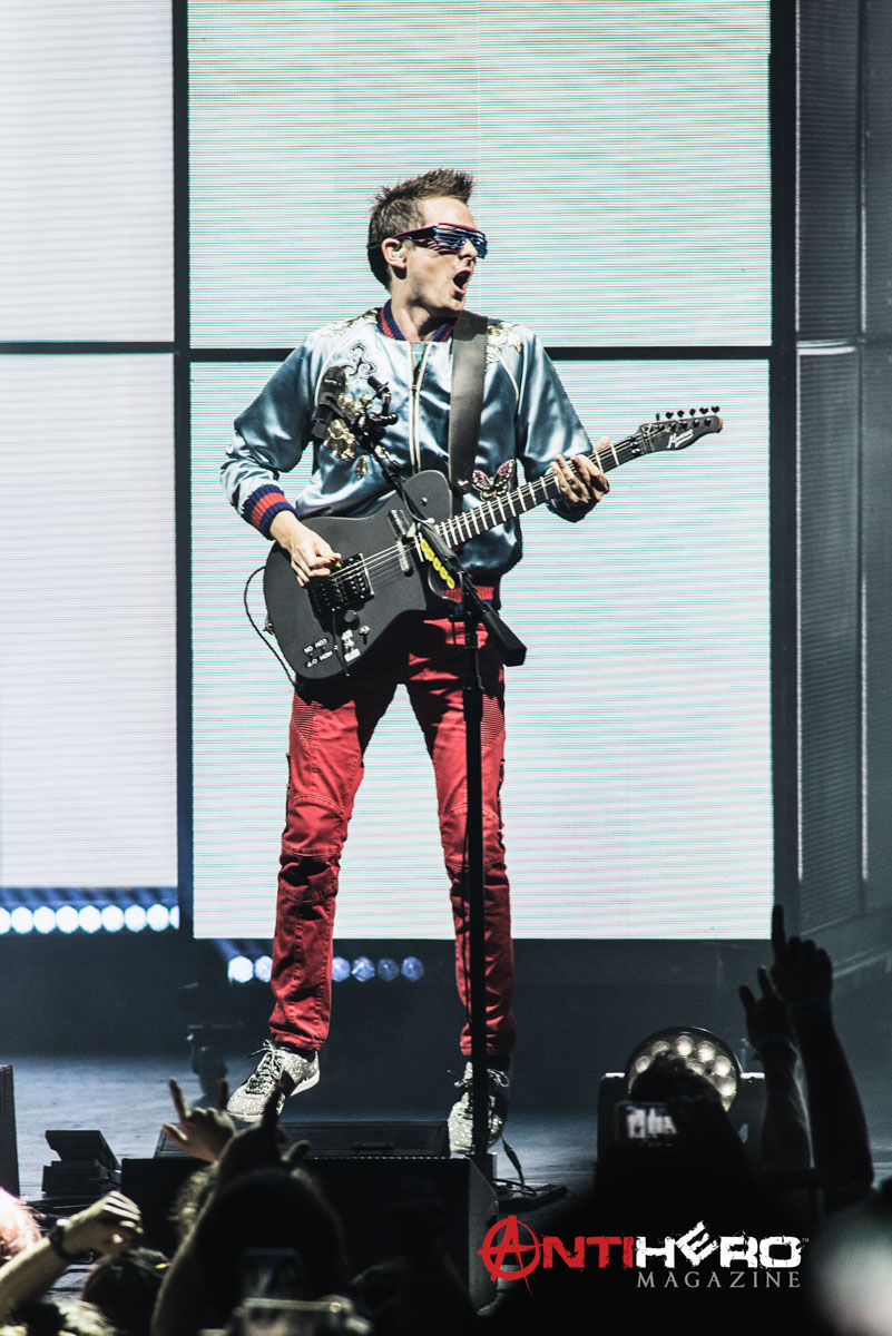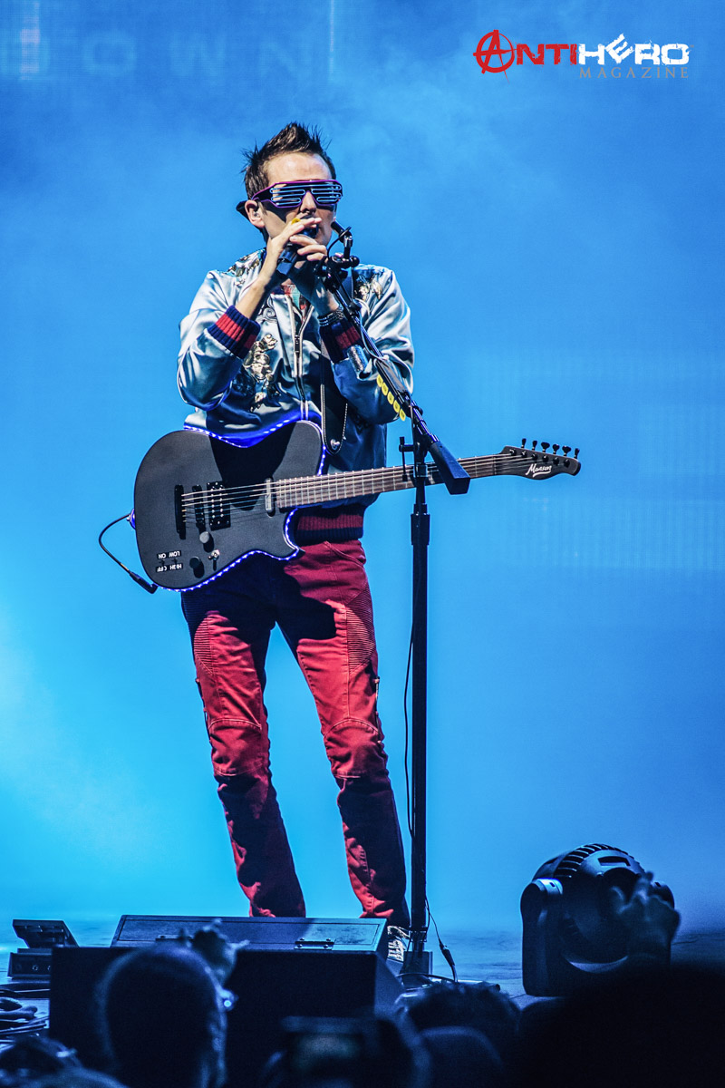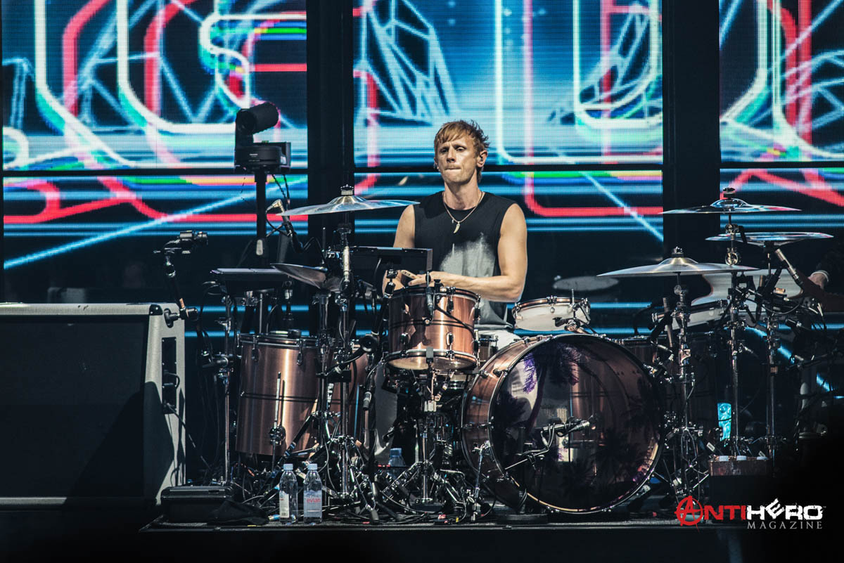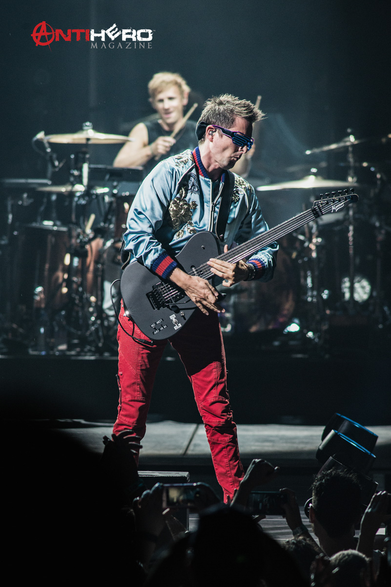 Once the powerful storm moved out of the area, attendees made their way back to their seats to prepare for the night’s headlining act, Muse. The one thing that I have noticed recently is that many foreign acts focus on making their live shows spectacular, with their use of stage props and lighting. I had seen Muse live on YouTube videos from their performances in other countries, but I had never seen them in person until now. They delivered exactly what I expected from their over-the-top stage lighting that was perfect for photography, to their custom instruments with light inlays. Every aspect of their show was memorable and the setlist was exactly what the fans wanted, playing all of their hits from their career.