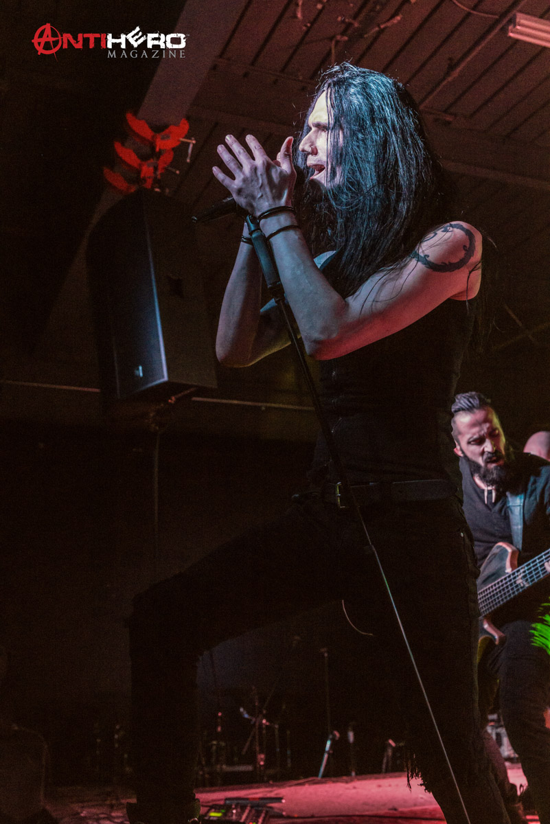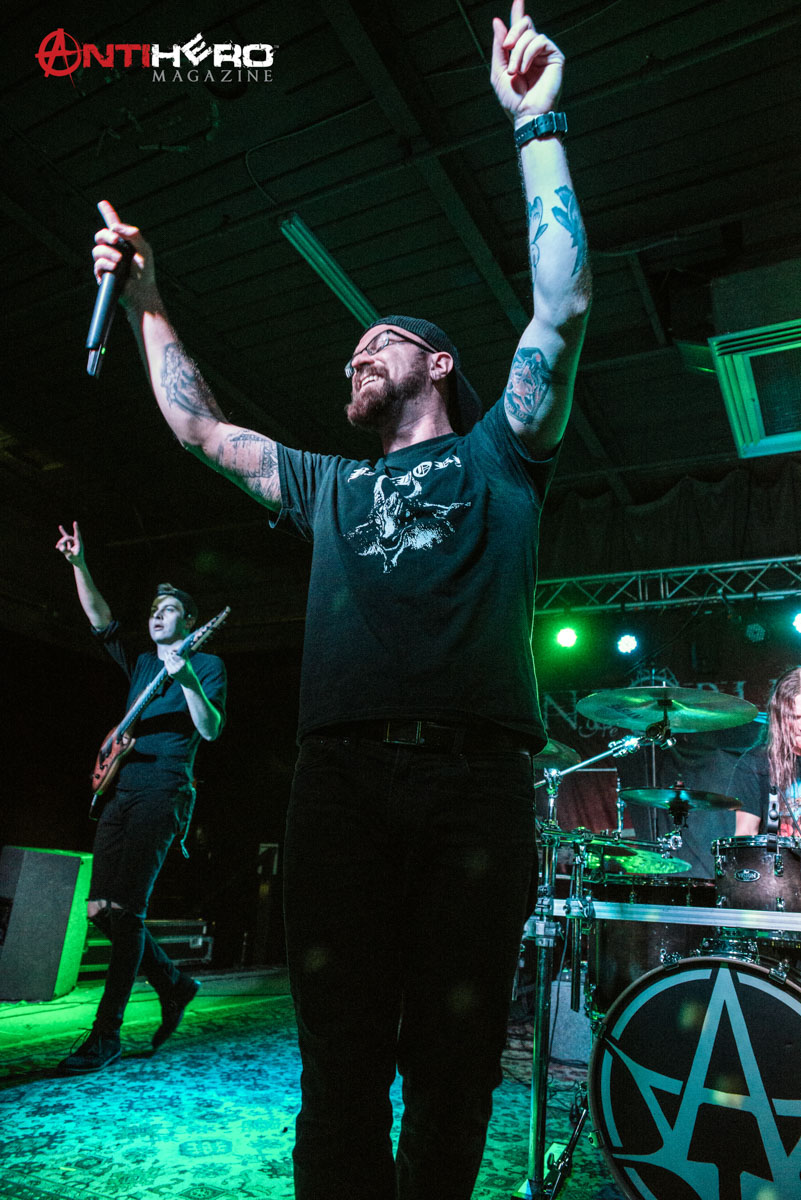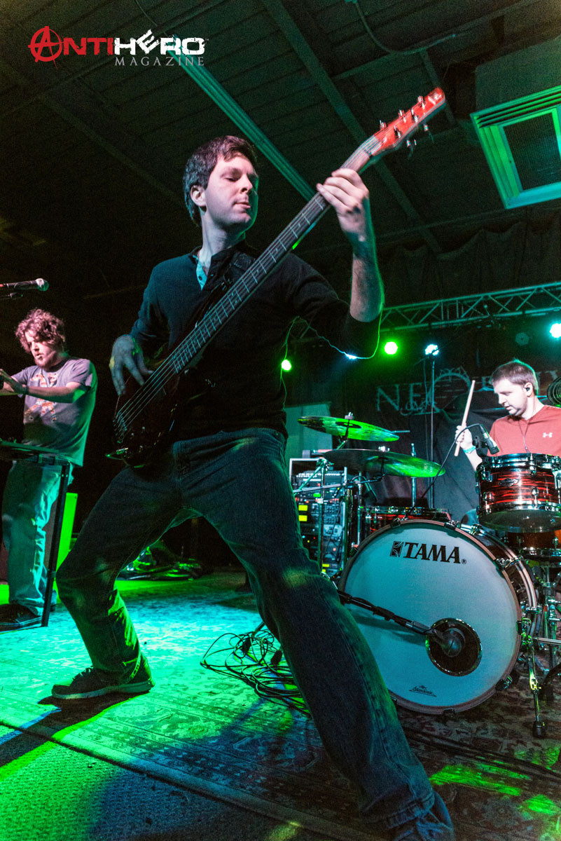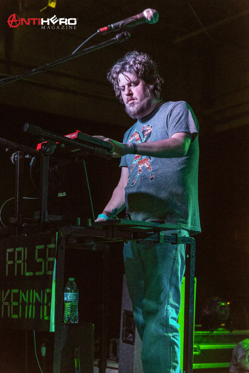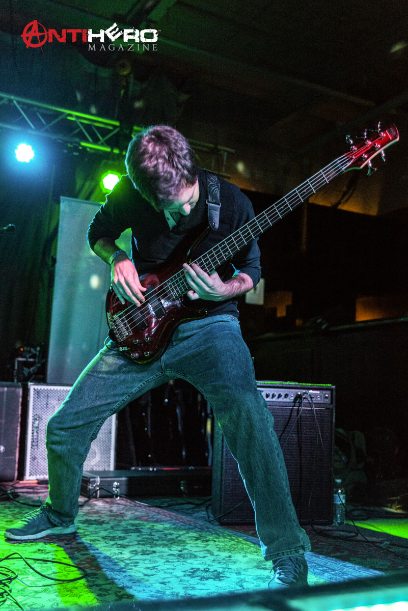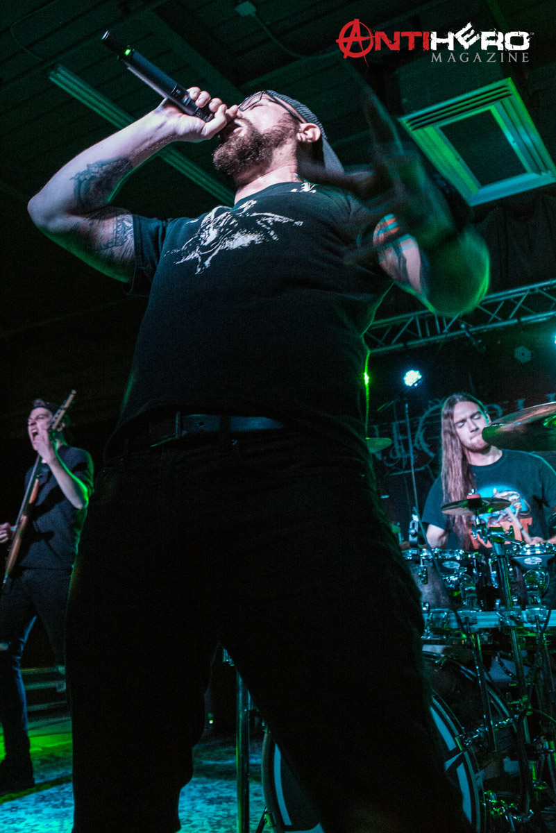 The first band to hit the stage was local act False Awakening from High Point, NC. The three-piece band helped warm the crowd up from the cold temperatures outside with their blend of progressive rock and EDM. Not the perfect fit for this show, since their music was all instrumental with no lyrics. Even though the bands they shared the stage with on this night were a little bit more on the extreme side, this group of kids gave the venue everything they had and for that, I throw my horns to them.