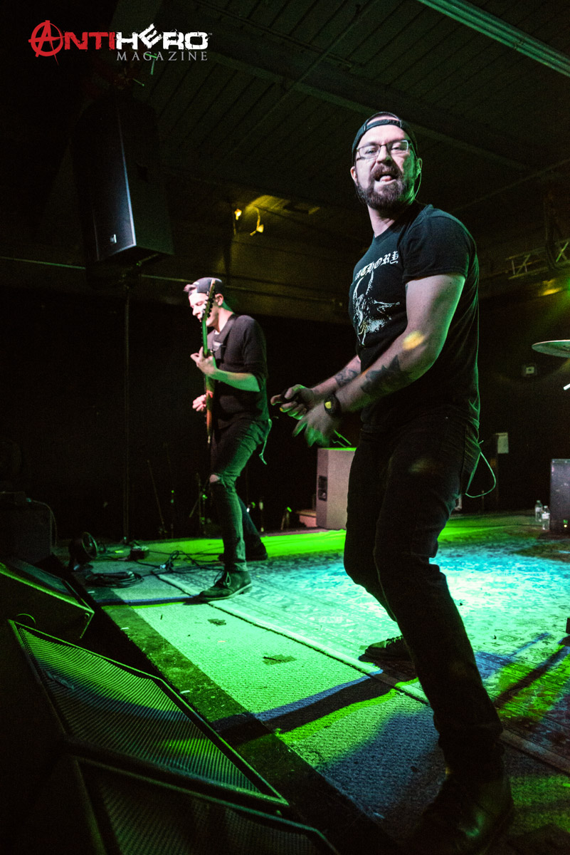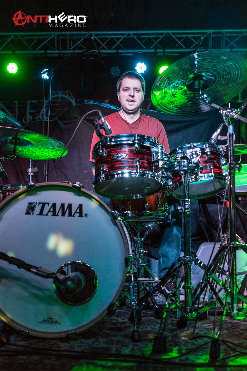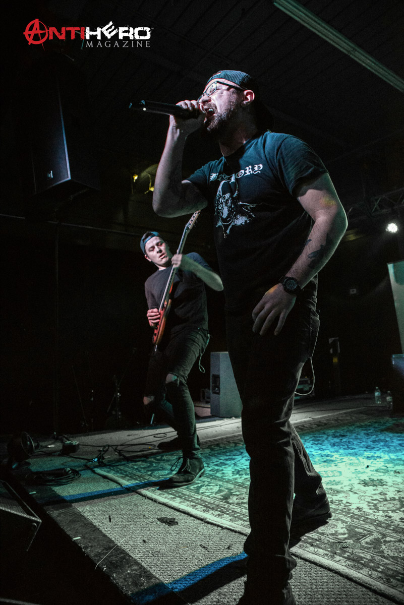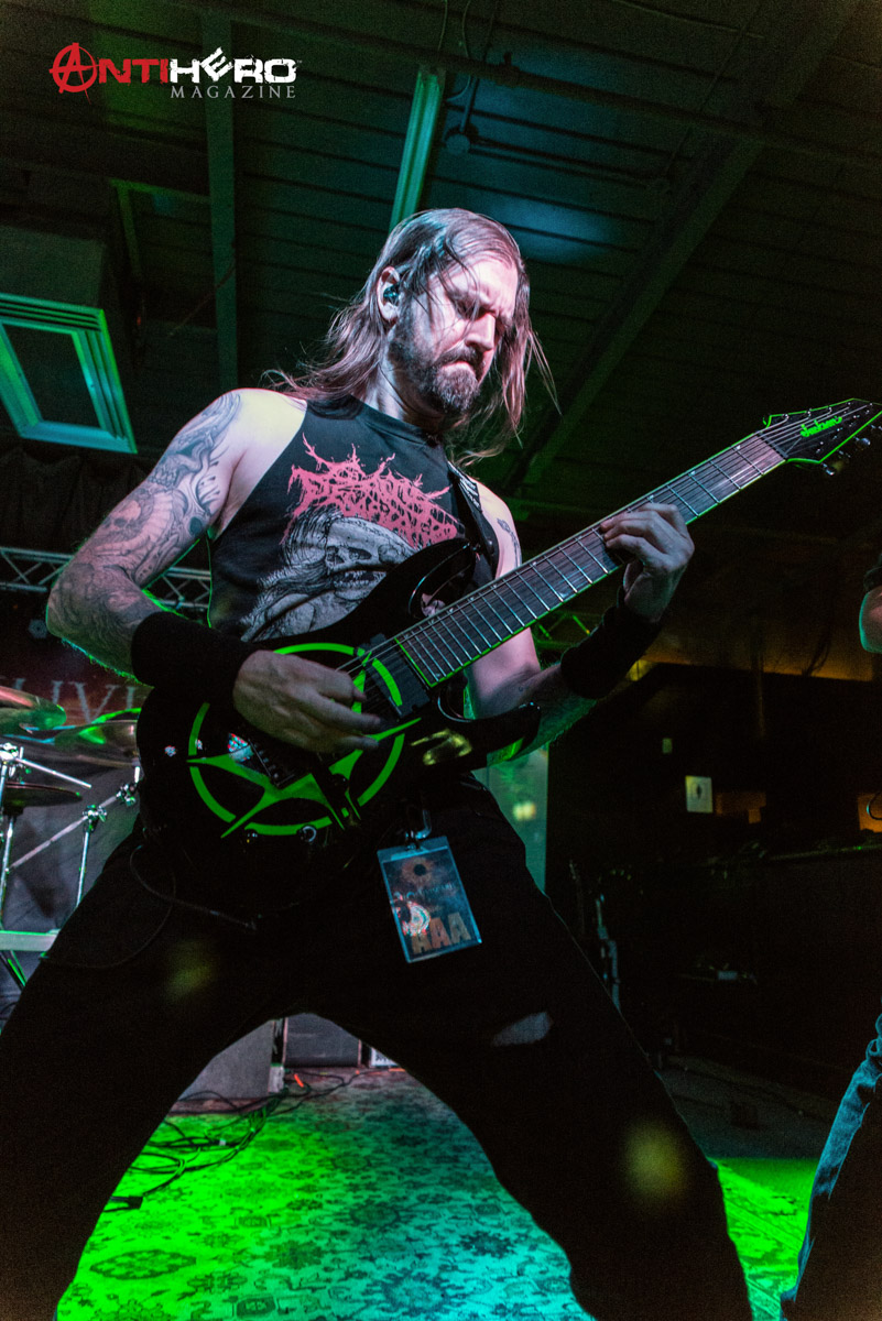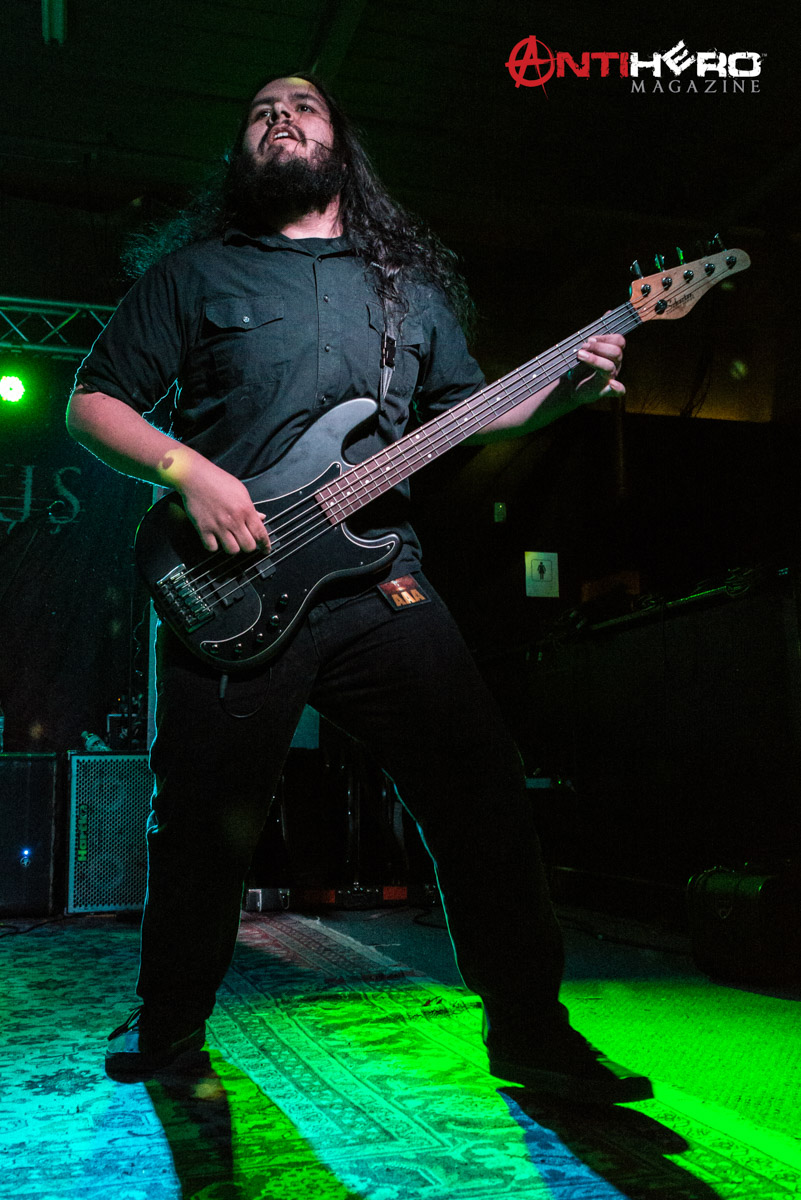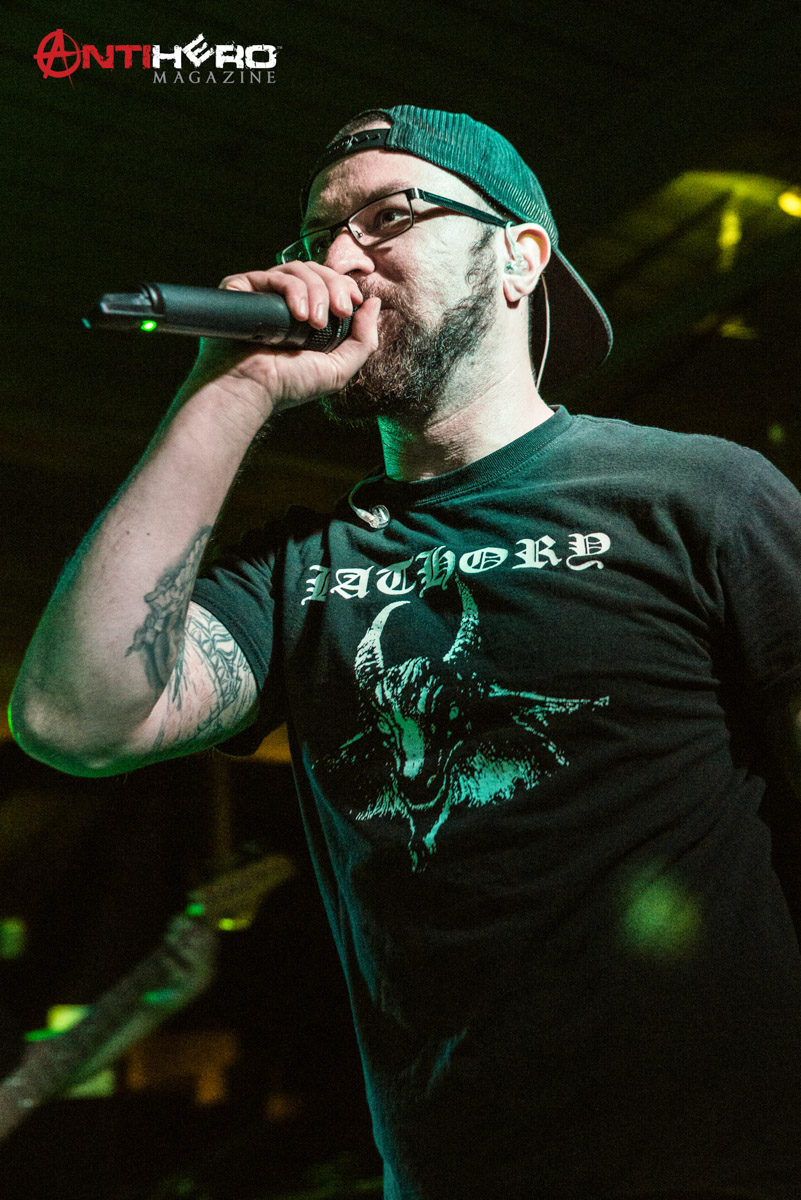 The first band to hit the stage was local act False Awakening from High Point, NC. The three-piece band helped warm the crowd up from the cold temperatures outside with their blend of progressive rock and EDM. Not the perfect fit for this show, since their music was all instrumental with no lyrics. Even though the bands they shared the stage with on this night were a little bit more on the extreme side, this group of kids gave the venue everything they had and for that, I throw my horns to them.