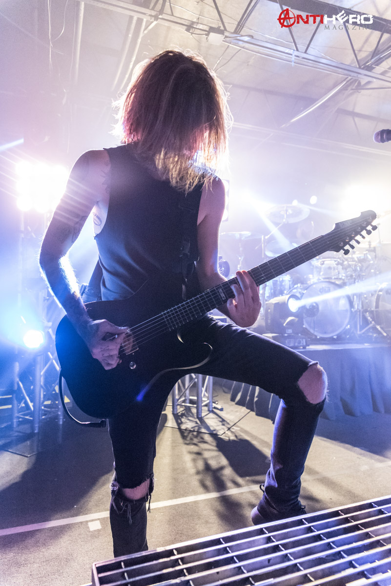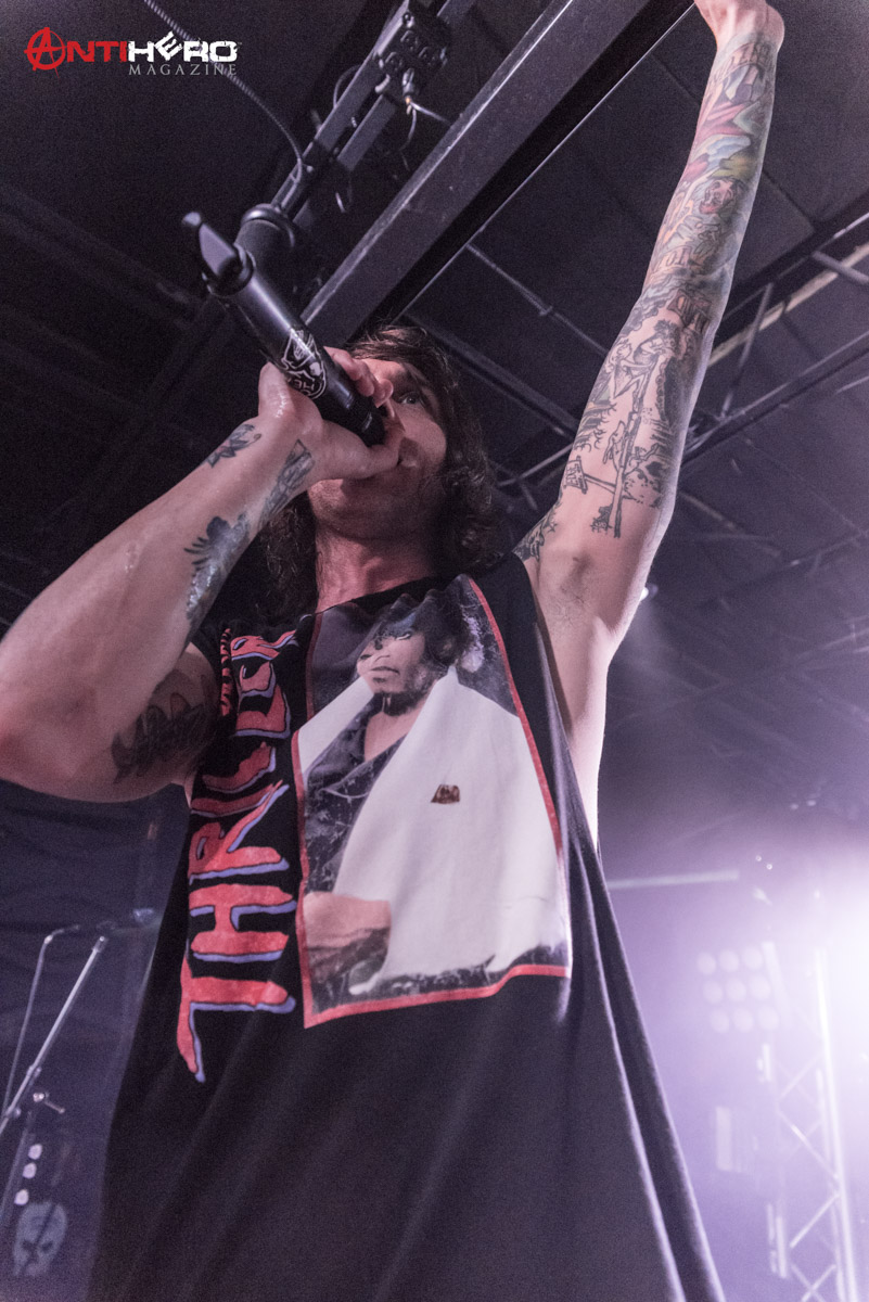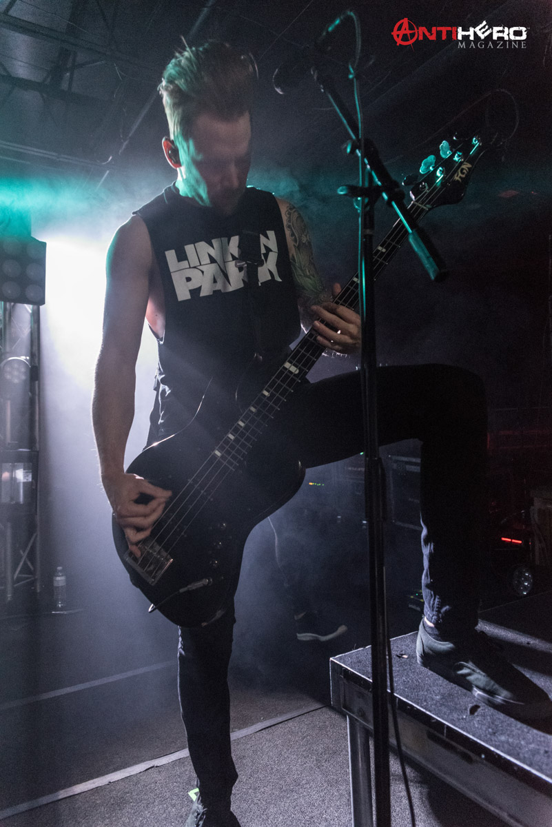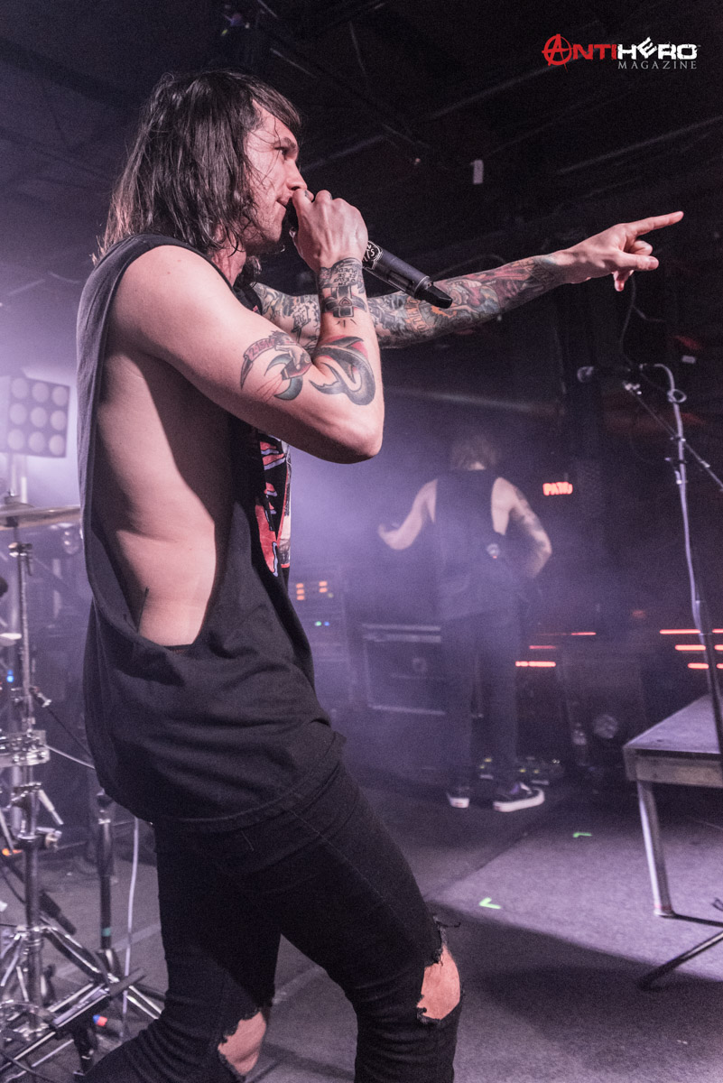 Fire From The Gods was the first band to take the stage after I entered the venue. Moscow had already played their set as I was standing in line and going through security. I met the guys of FFTG last year at Carolina Rebellion, way before I even knew anything about their music. Once I did get the record through a promo, I was mind blown by their sound and the mix of musical influences. The band backs up their diverse sound in their live performances with stellar crowd interaction and high energy on stage. All members of the band, drummer included are always jumping around the stage and enjoying their show. For me, it really seems like they just love being there, and their rigorous touring cycle solidifies that. This band has been on the road most of the past year and even though they seem like they should be burnt out, they don’t show it if they are. Their lighting for this tour is also really good, but sadly for the other bands, this wasn’t the case.
