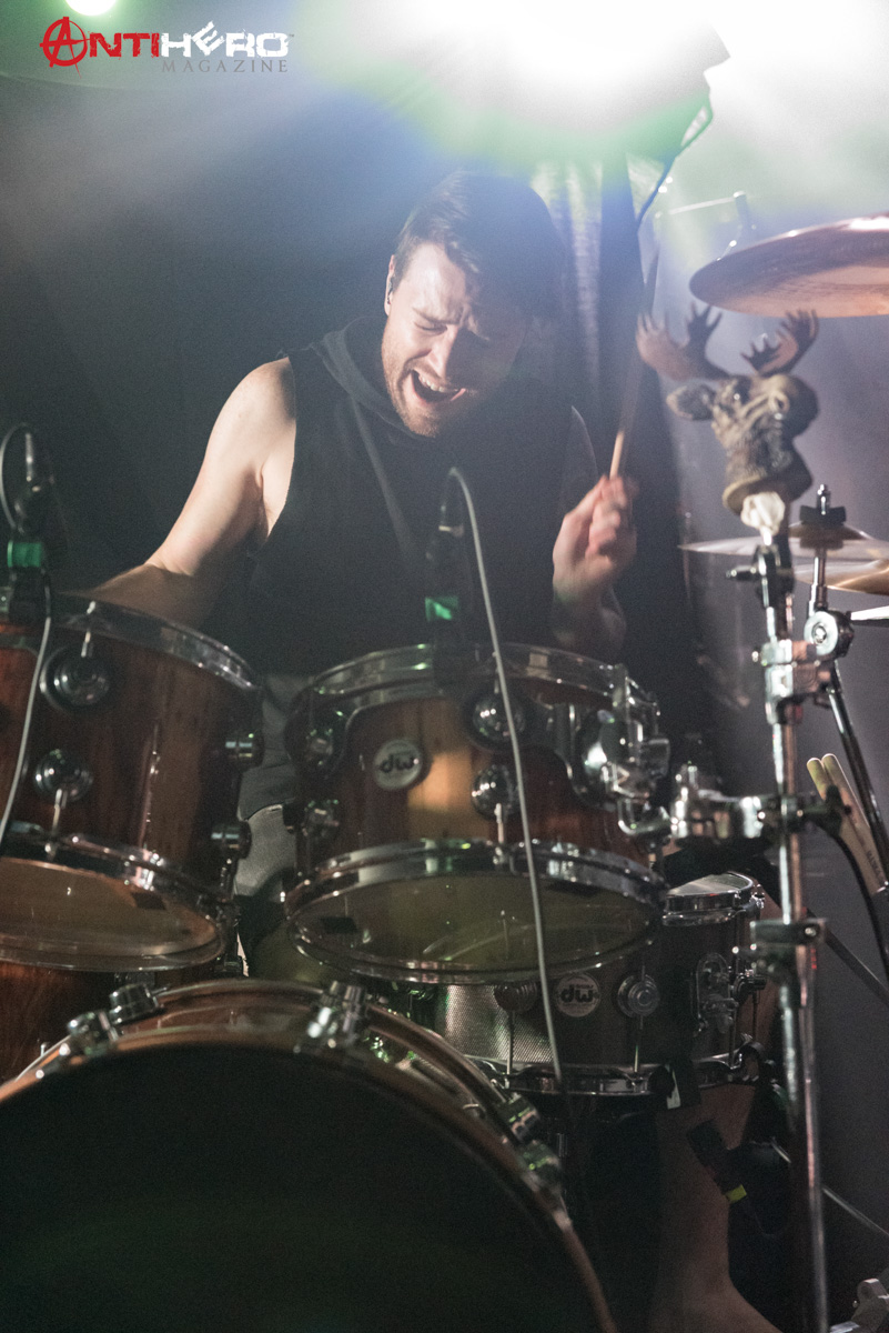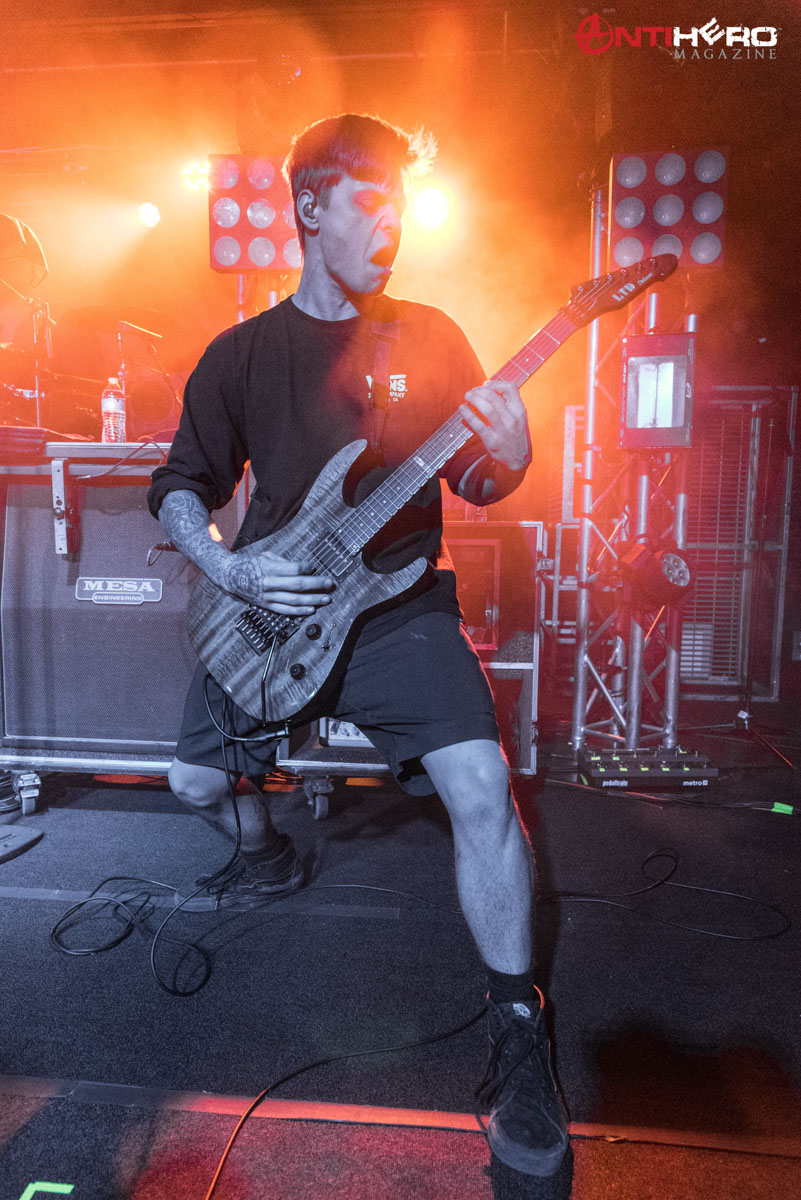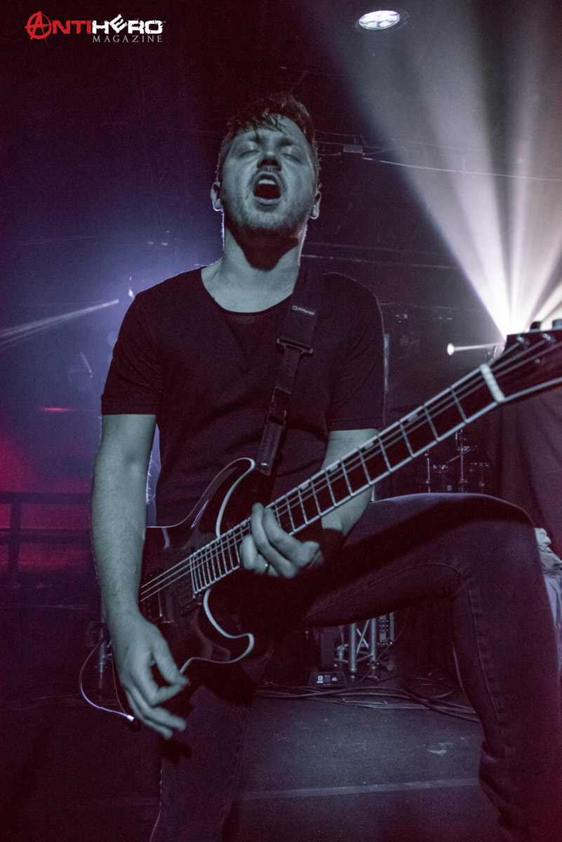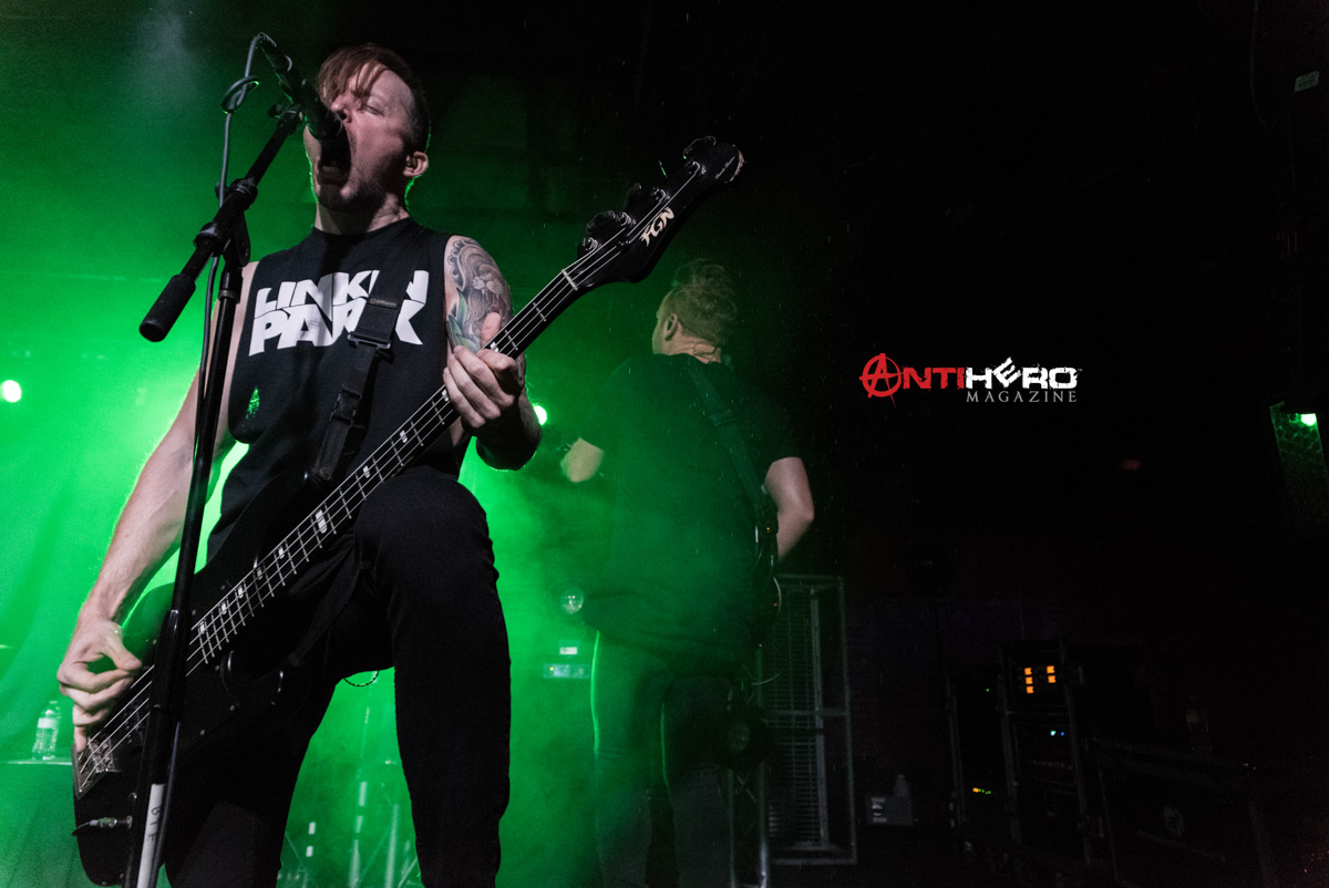 Fire From The Gods was the first band to take the stage after I entered the venue. Moscow had already played their set as I was standing in line and going through security. I met the guys of FFTG last year at Carolina Rebellion, way before I even knew anything about their music. Once I did get the record through a promo, I was mind blown by their sound and the mix of musical influences. The band backs up their diverse sound in their live performances with stellar crowd interaction and high energy on stage. All members of the band, drummer included are always jumping around the stage and enjoying their show. For me, it really seems like they just love being there, and their rigorous touring cycle solidifies that. This band has been on the road most of the past year and even though they seem like they should be burnt out, they don’t show it if they are. Their lighting for this tour is also really good, but sadly for the other bands, this wasn’t the case.