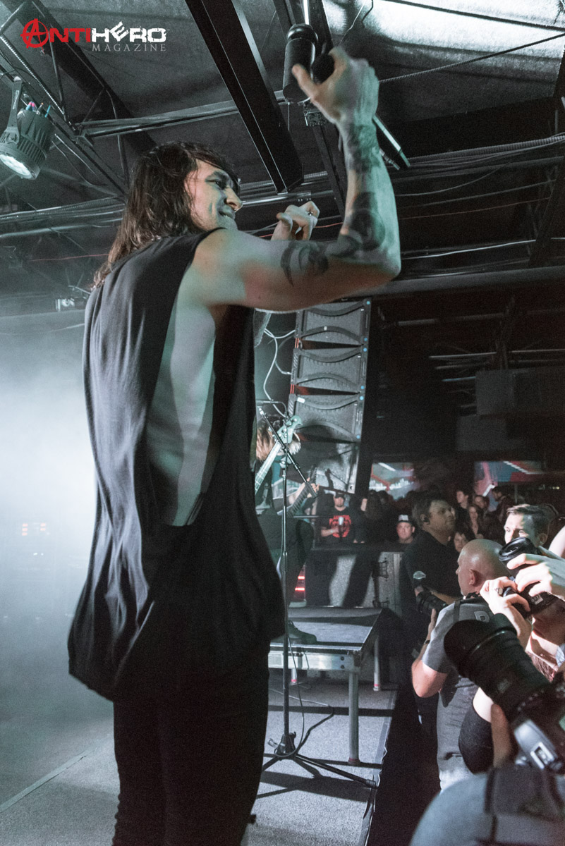 As the dust settled a bit after Canehill left the stage, Blessthefall took their places to help keep the energy levels up. The band, who is currently on tour to help promote their new album due out next month, love to have fun on stage. They constantly ran around in any open space that they could find or in some cases getting on the barricade to get closer to their fan base. Fans in the front row along with many of the photographers in the pit received a more than welcomed cool down from frontman Beau Bokan as he sprayed everyone down with water from the on-stage water bottles. It was during their performance that I realized something, photographing the headliner for the night was going to be a challenge, especially with the number of crowd surfers in the venue.