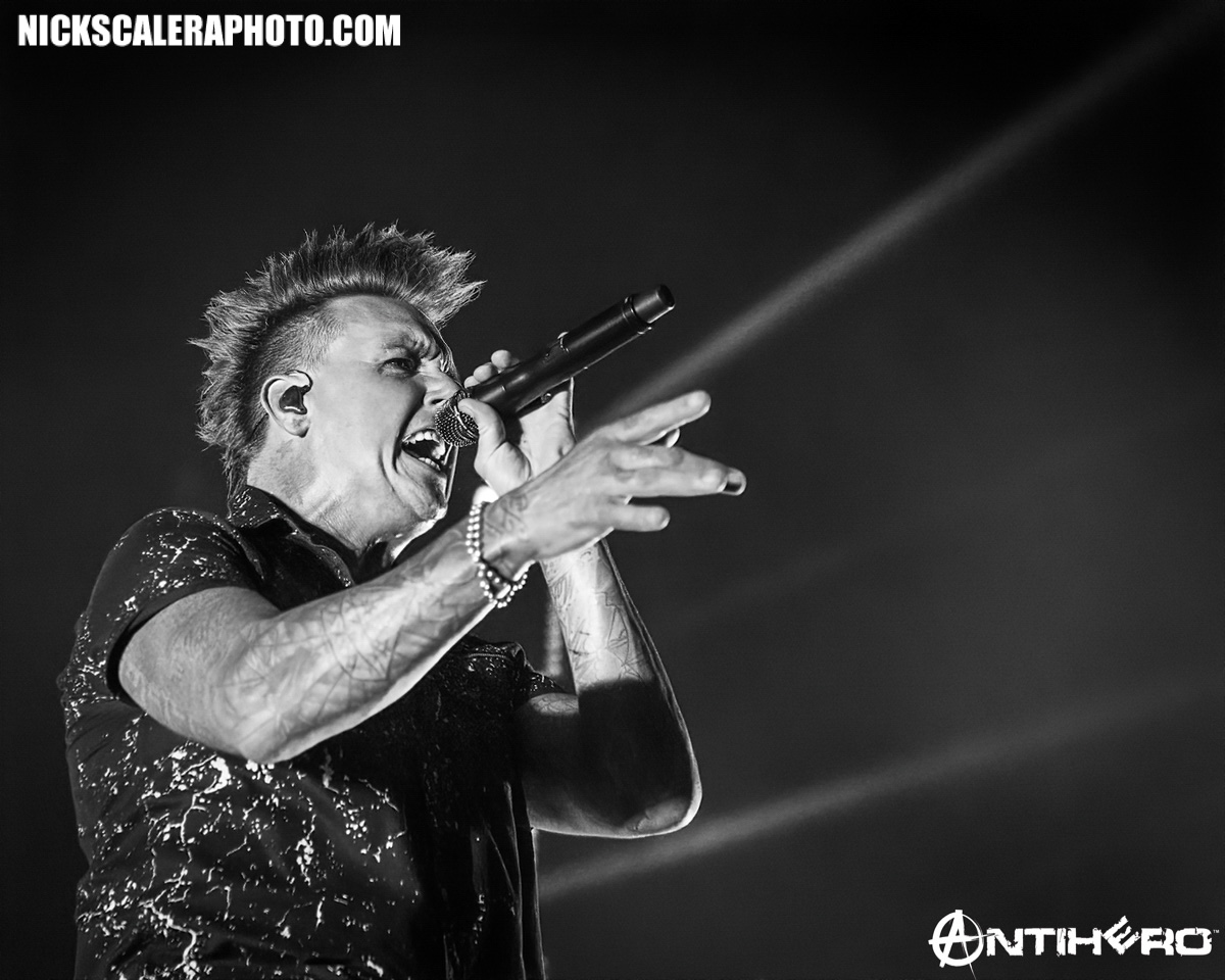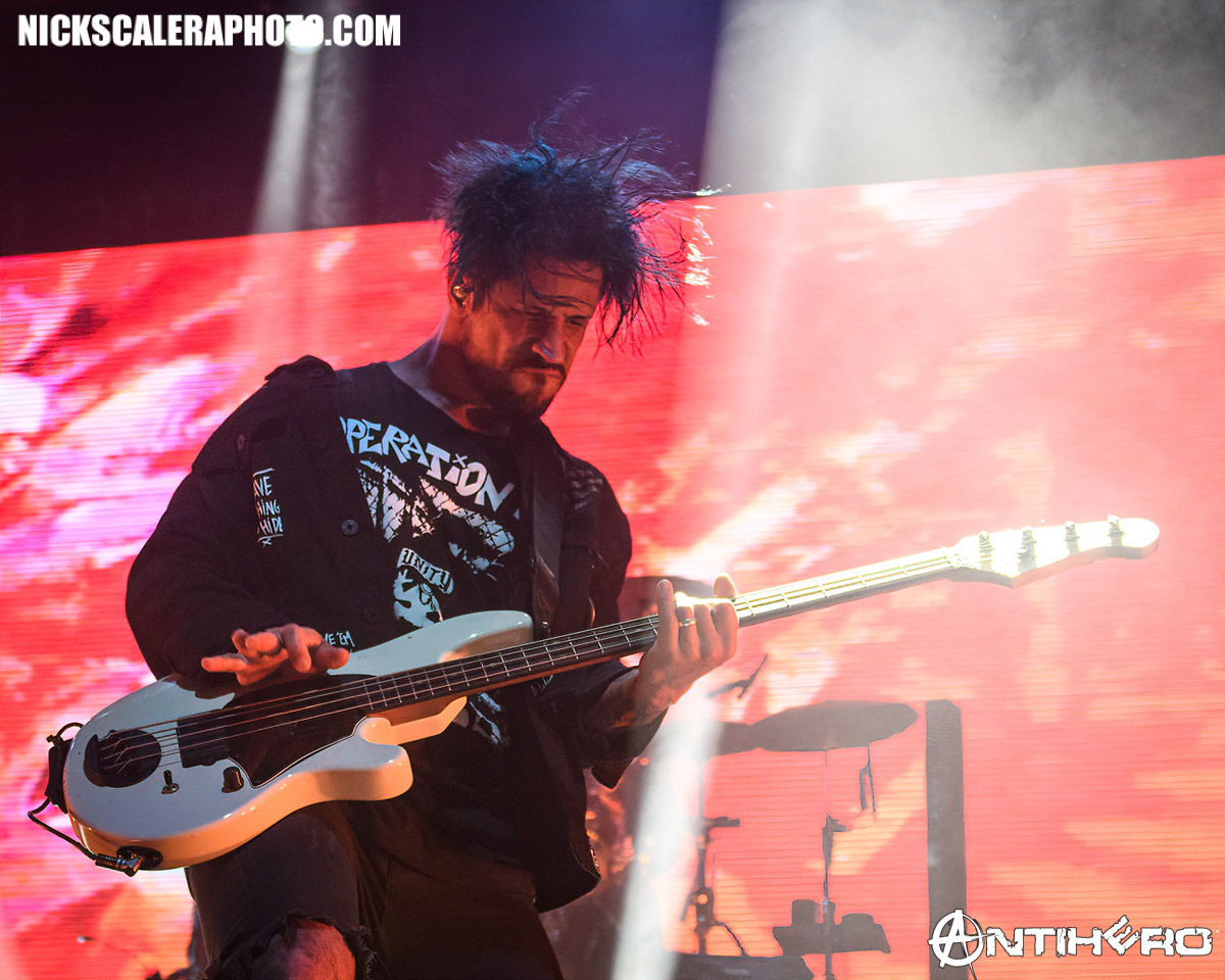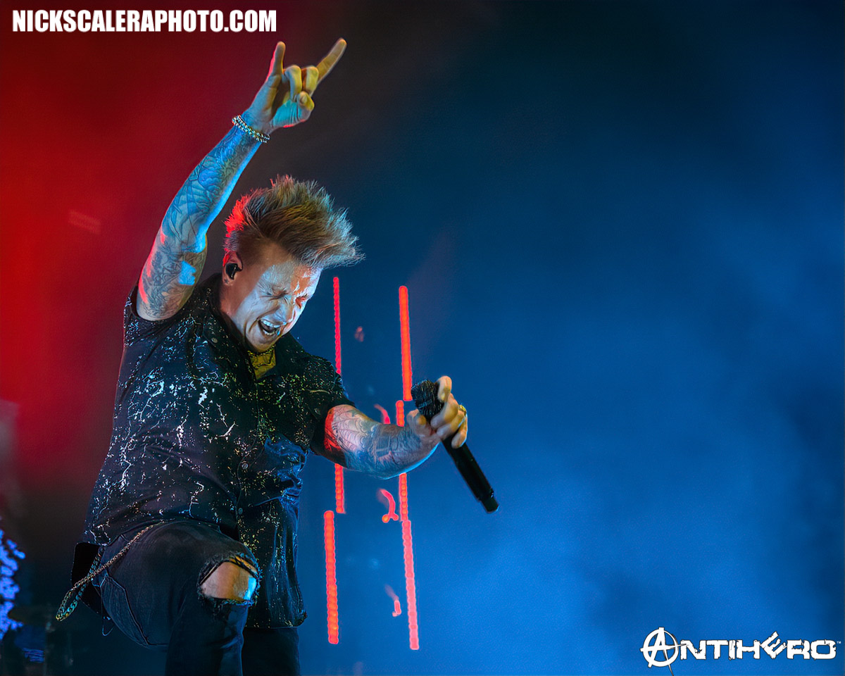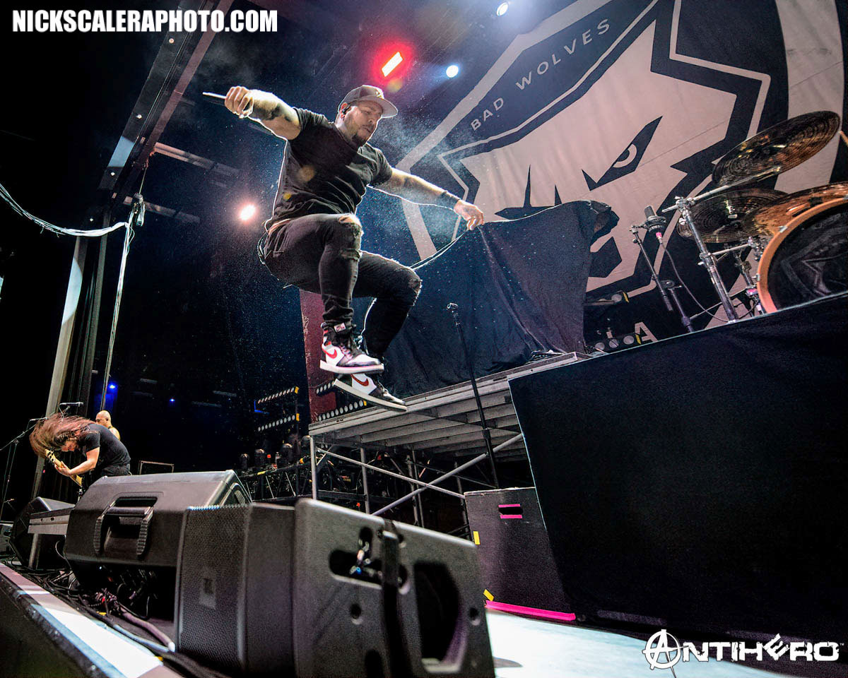Bad Wolves began the night serving to dedicated fans as lead singer Tommy Vext checked-in with the crowd asking “is this your first time seeing Bad Wolves?! If not, Welcome to the Wolf Pack!” Vext stressed the importance of mental health, taking care of yourself and greeted fans by shaking hands with them before commanding the stage. He playfully asked fans to take a knee then jump up and go crazy because they were shooting a music video during this live performance. Vext and his bandmates left fans in a haze of cheers and amped energy by concluding their set with the noteworthy Cranberries cover hit, “Zombie”. Encouraging fans to raise their cell phones in the air, the scene was nothing short of magical as the capacity crowd obliged and sang along in unison in what would be one of the most emotional moments of the night. The Bad Wolves’ cover of Zombie went Platinum on the 2018 Billboard charts which is a remarkable accomplishment. Proceeds of the track were generously donated to Cranberries’ lead singer Dolores O’Riordan’s children after her passing.