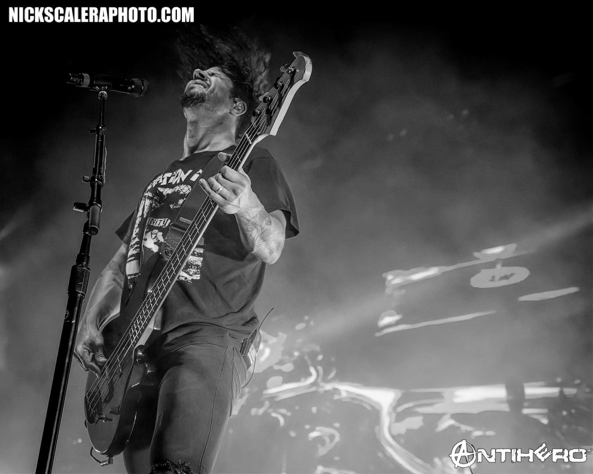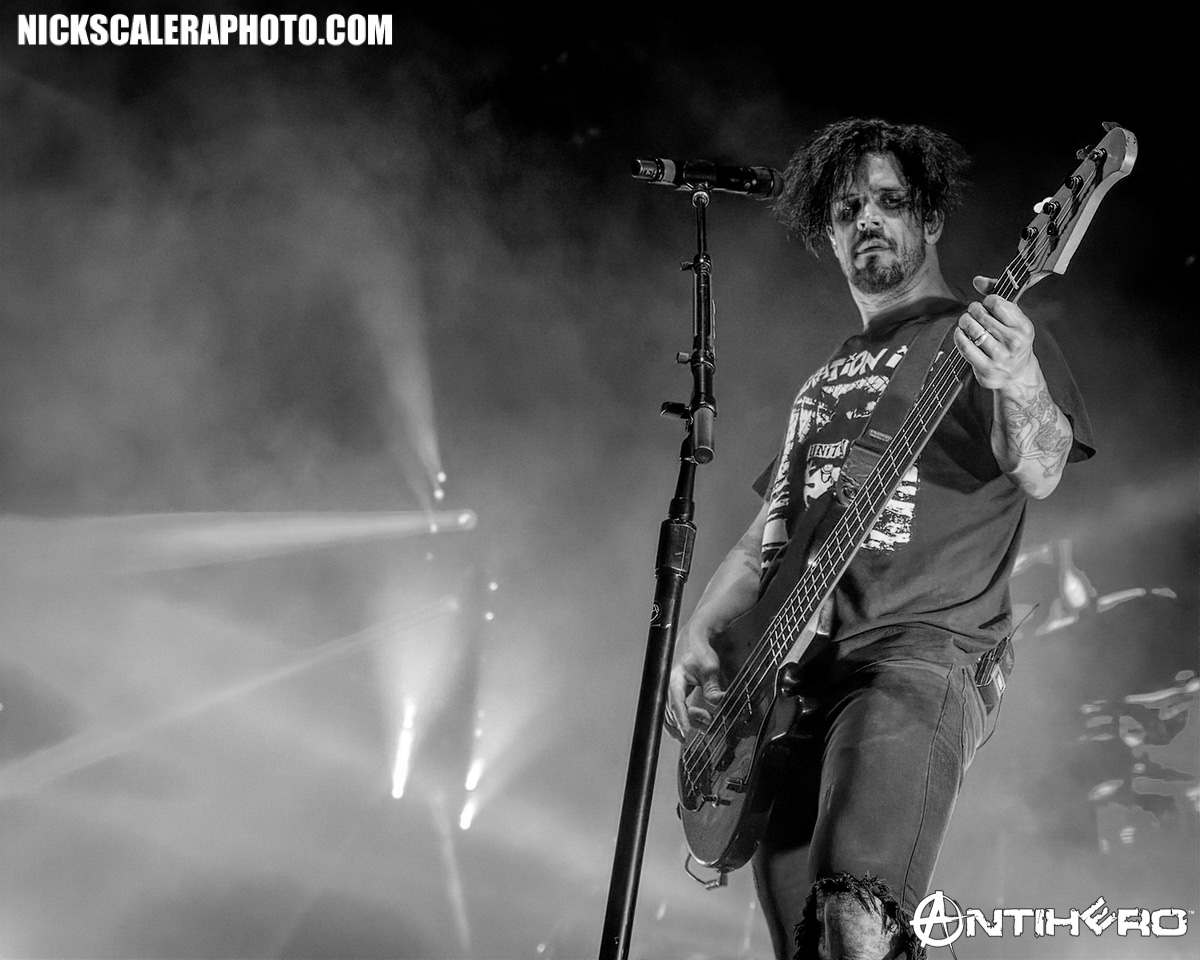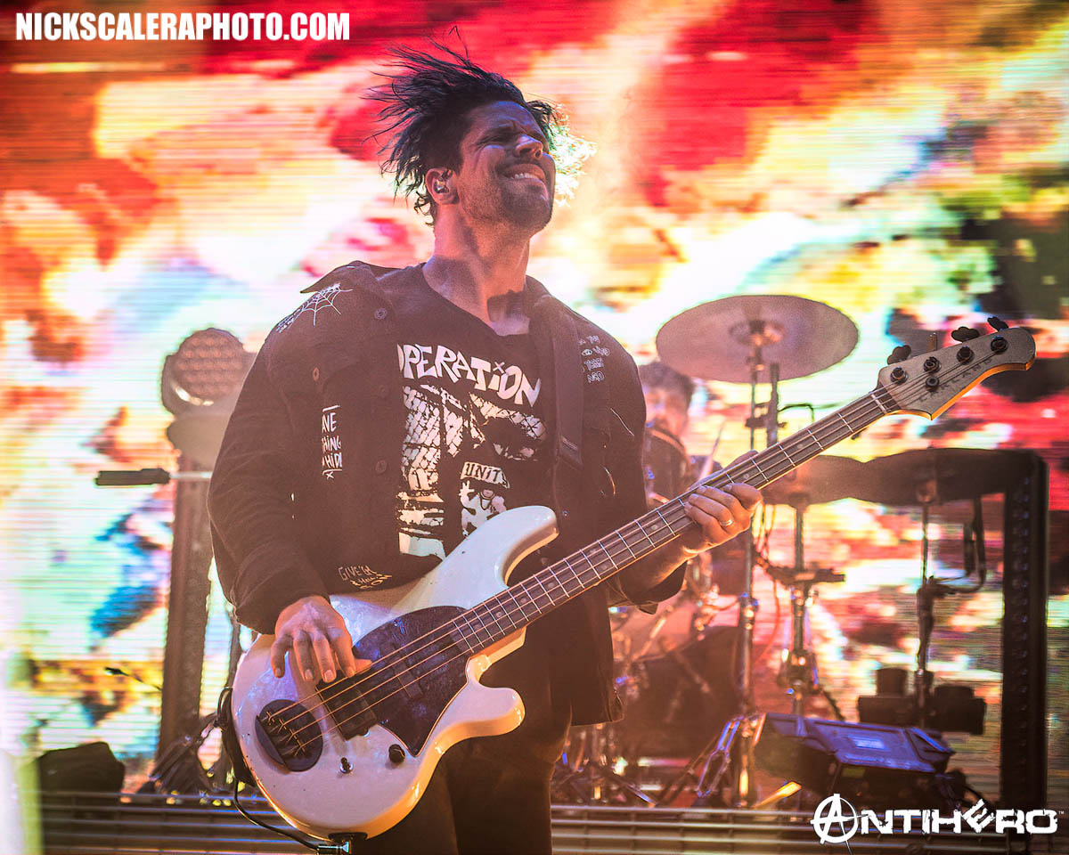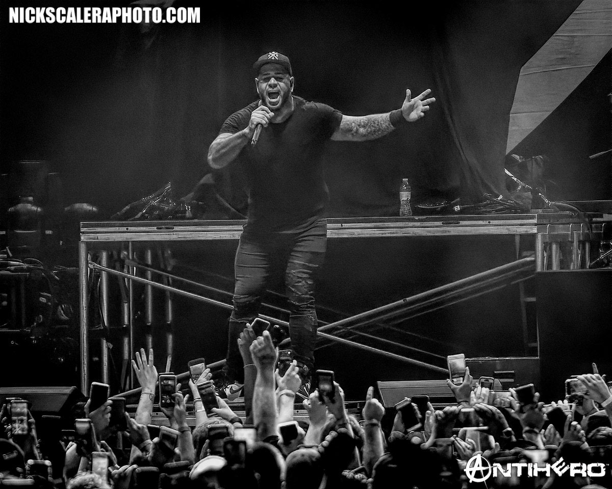 Bad Wolves began the night serving to dedicated fans as lead singer Tommy Vext checked-in with the crowd asking “is this your first time seeing Bad Wolves?! If not, Welcome to the Wolf Pack!” Vext stressed the importance of mental health, taking care of yourself and greeted fans by shaking hands with them before commanding the stage. He playfully asked fans to take a knee then jump up and go crazy because they were shooting a music video during this live performance. Vext and his bandmates left fans in a haze of cheers and amped energy by concluding their set with the noteworthy Cranberries cover hit, “Zombie”. Encouraging fans to raise their cell phones in the air, the scene was nothing short of magical as the capacity crowd obliged and sang along in unison in what would be one of the most emotional moments of the night. The Bad Wolves’ cover of Zombie went Platinum on the 2018 Billboard charts which is a remarkable accomplishment. Proceeds of the track were generously donated to Cranberries’ lead singer Dolores O’Riordan’s children after her passing.