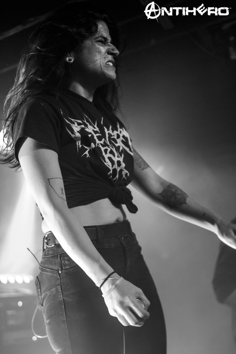 Entheos made their way to the front, bringing about a slew of technical and progressive metal prowess, making them the most similar to the headliners, Rivers of Nihil. I had witnessed them perform last year during Summer Slaughter and was immediately impressed. I was happy to see them in a more intimate setting and with a slightly prolonged time to play. Chaney Crabb is an amazing frontwoman, leading the crowd in whichever way she wanted, all the while bouncing all over the place in her own merriment. Every song played was explosive at the right moments. They even brought their own additional lighting which really pushed the atmosphere and aesthetic of their sound to the max.