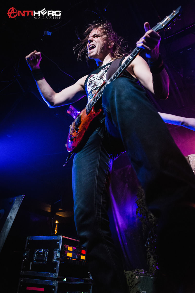 The main support act for the night Battle Beast took the stage shortly after 9pm. This was the band’s first tour in the United States and they used this as an opportunity to help win fans over with their live show. Concertgoers knew who the band were as they began chanting “Battle Beast” before they even walked out onto the stage. Members of the band filled the small stage at The Underground at the Fillmore, interacting with each other and the crowd through their performance, leaving everything on stage and making everyone in the venue an immediate fan.