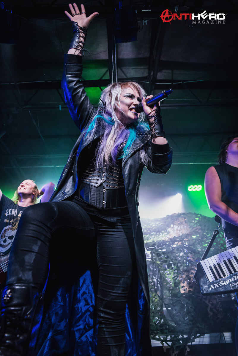 The first band to take the stage in the muggy venue was symphonic metal act, Leaves Eyes. The band’s high energy and interactions with the fans in the crowd, helped make the attendees forget all about the damp garments on their bodies. This was the band’s sixth tour to the States, after their horrific experience with their first tour that lead them stateside due to management issues, the band saw this as an opportunity to put on the show that they wanted to that first time they were here and the fans loved it.