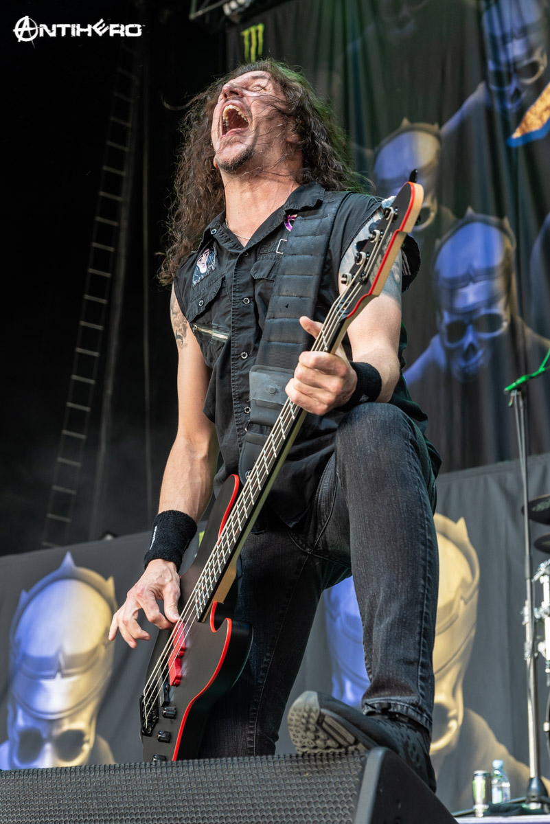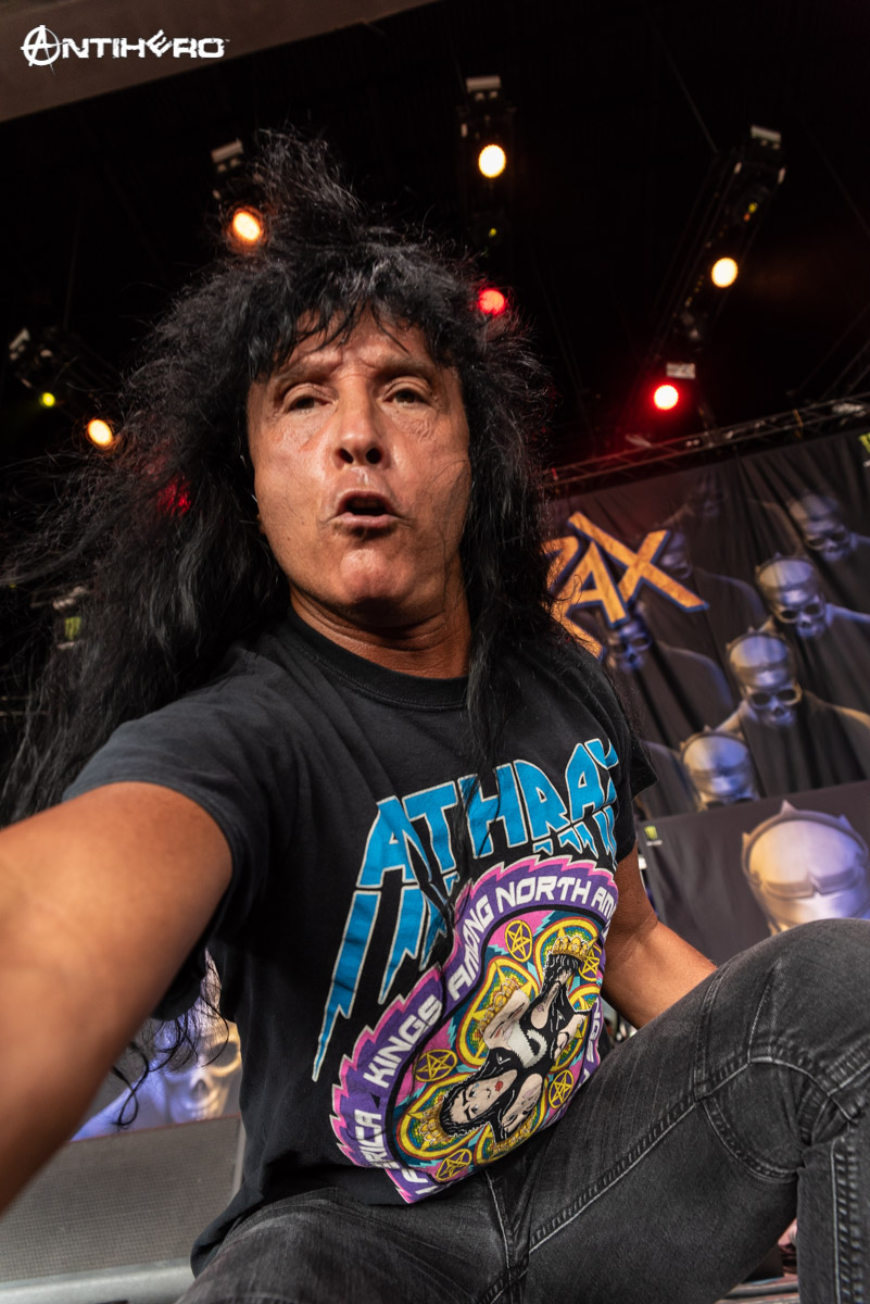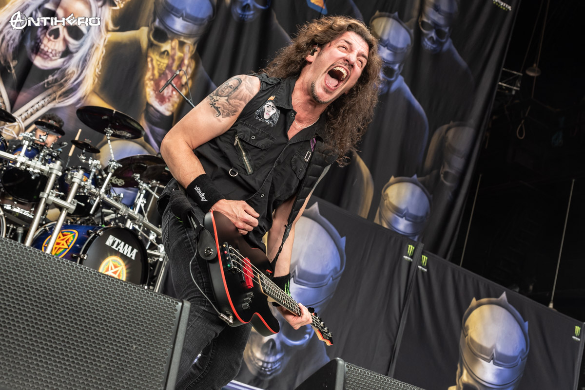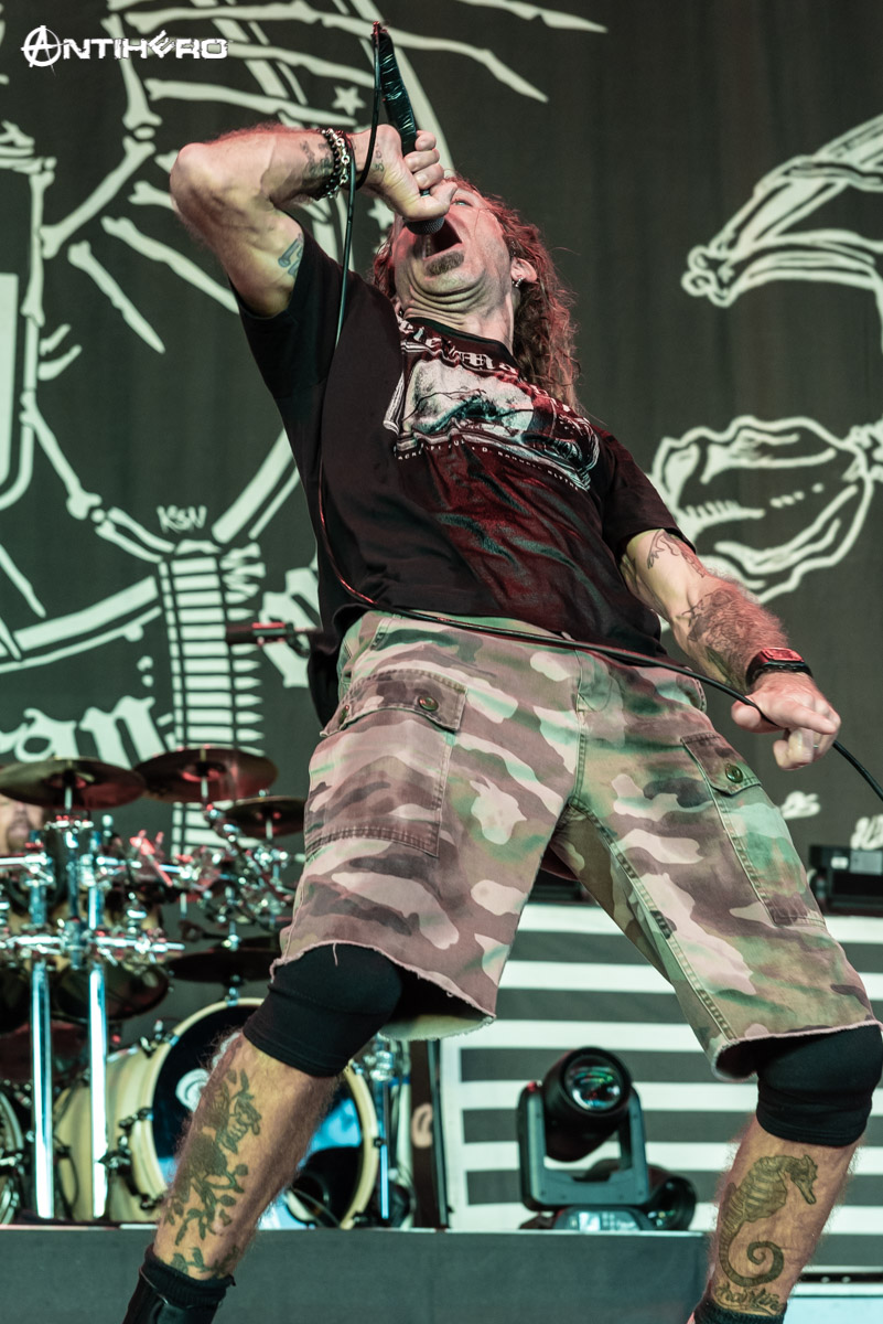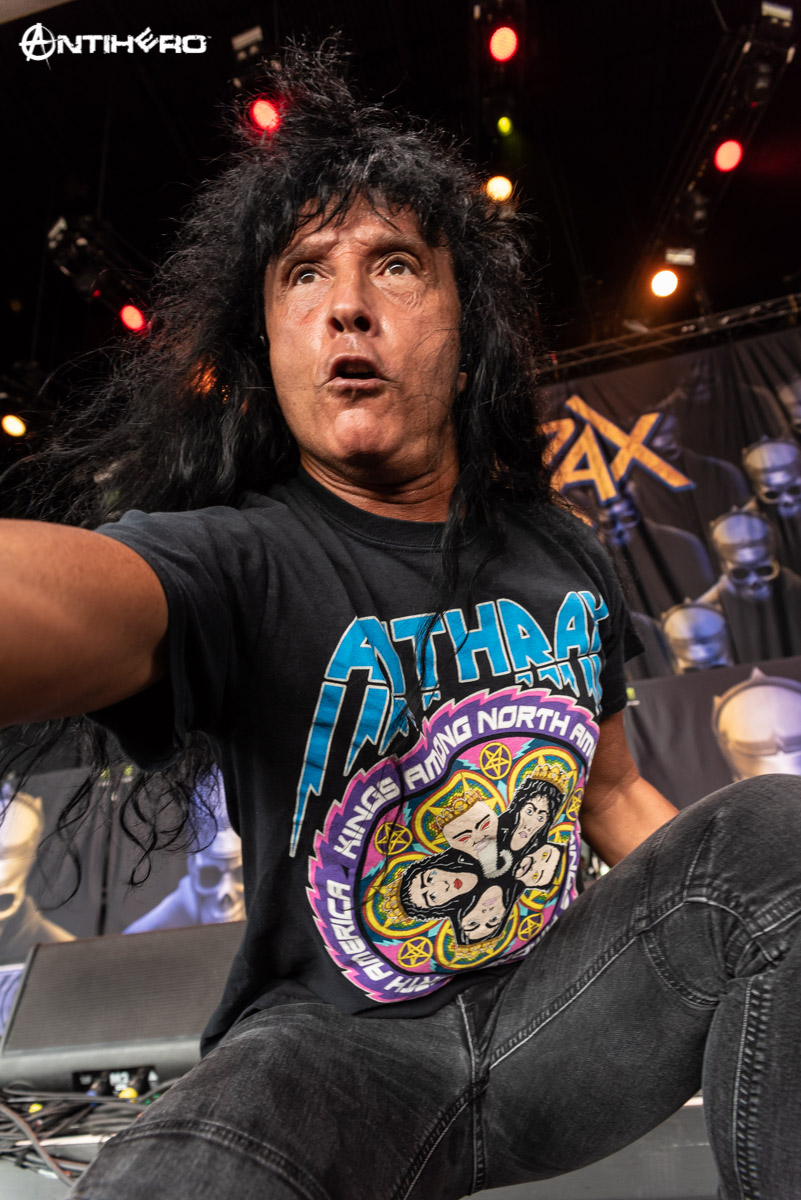 For me, my biggest and most memorable moment of the night came when fellow members of the Big Four Anthrax, took the stage. Now I’ve seen Anthrax before, so my level of excitement was extremely high for their performance, but I could have never guessed what was about to happen during the band’s second song. I was dead center in the photo pit as frontman Joey Belladonna was walking across the speakers interacting with the crowd. As I am looking through my viewfinder, snapping shots, I see him motion to me. Before I know it, he is standing right in front of me, I feel a light tap on my cheek, well about five light taps. Thinking it was someone else in the photo pit messing with me, I put my camera down and turn to my left. I see one of my buddies pointing at Joey, who is looking down at me, saying “Get the shot”. Thinking that he wanted my camera, I froze. It was a moment where my brain was trying to process everything that was going on but completely failed to. What can I say, a metal god touched my face! Anthrax always delivers the most energetic performances and honestly bassist Frank Bello is one of the most fun musicians to photograph.