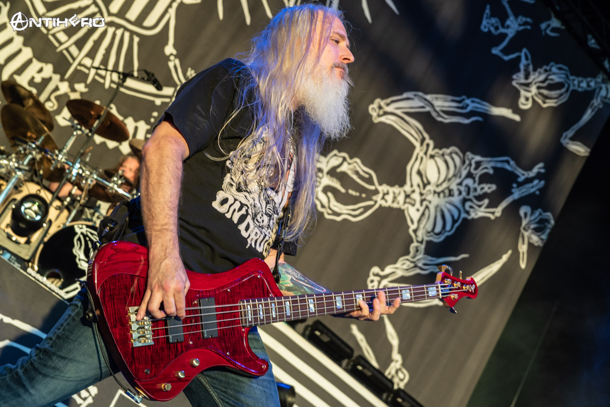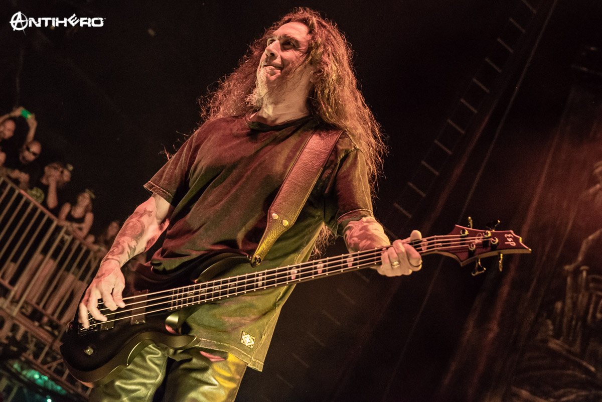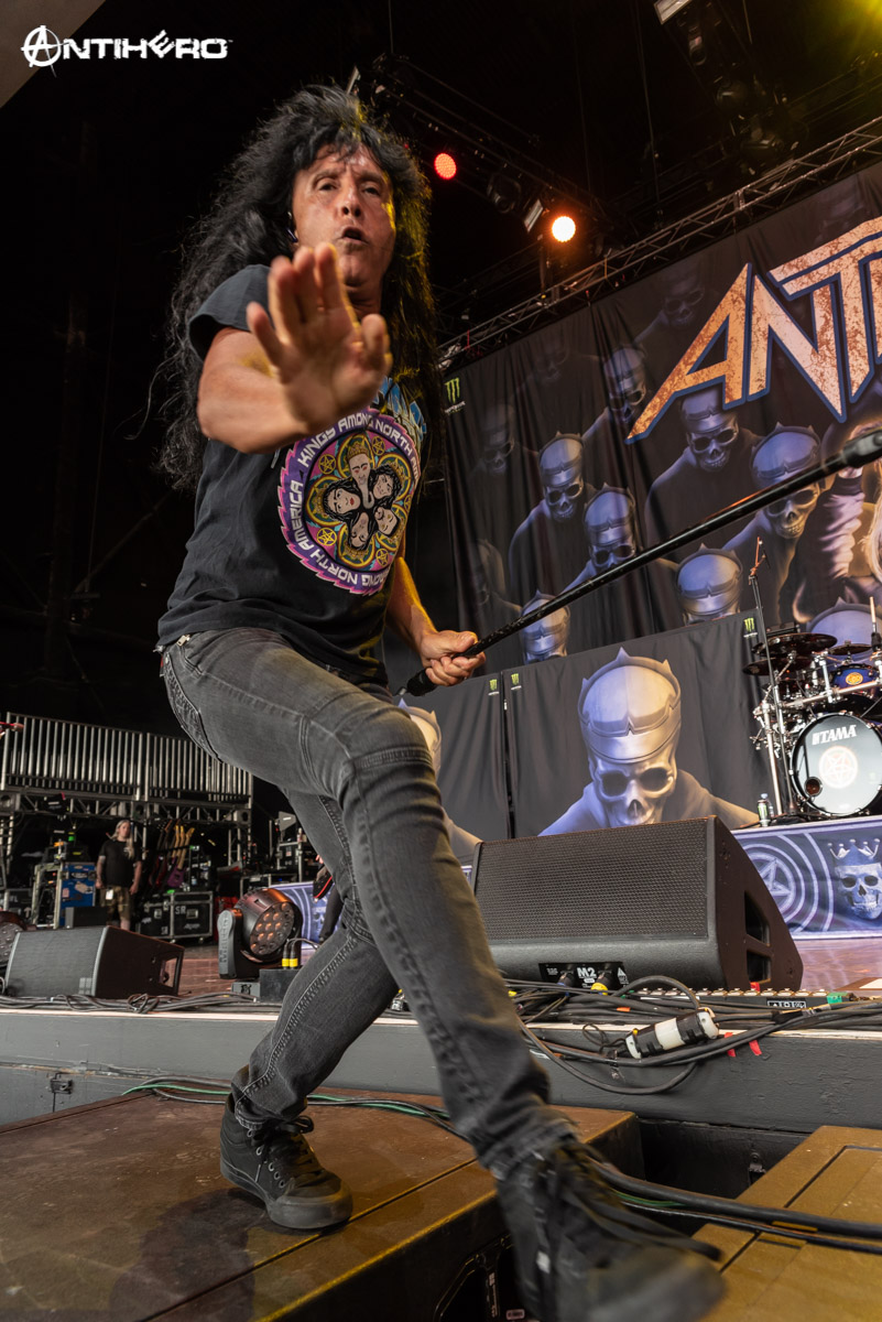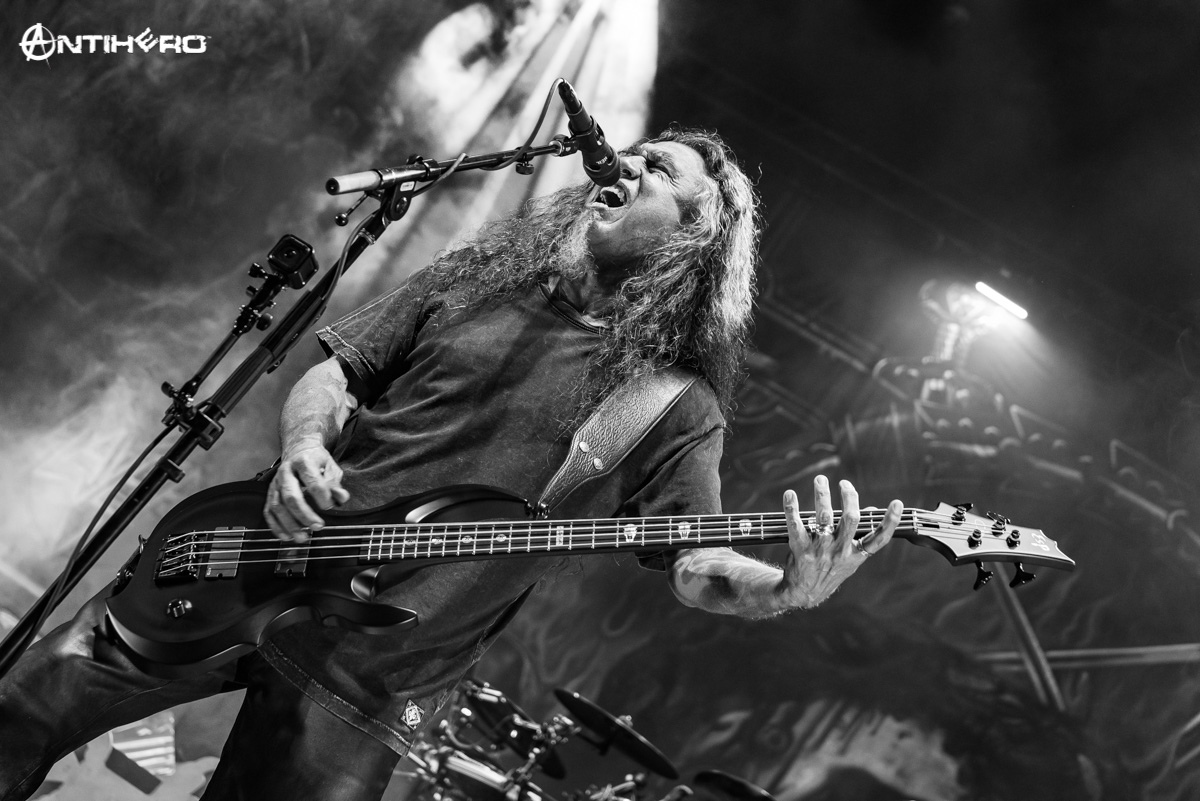 For me, my biggest and most memorable moment of the night came when fellow members of the Big Four Anthrax, took the stage. Now I’ve seen Anthrax before, so my level of excitement was extremely high for their performance, but I could have never guessed what was about to happen during the band’s second song. I was dead center in the photo pit as frontman Joey Belladonna was walking across the speakers interacting with the crowd. As I am looking through my viewfinder, snapping shots, I see him motion to me. Before I know it, he is standing right in front of me, I feel a light tap on my cheek, well about five light taps. Thinking it was someone else in the photo pit messing with me, I put my camera down and turn to my left. I see one of my buddies pointing at Joey, who is looking down at me, saying “Get the shot”. Thinking that he wanted my camera, I froze. It was a moment where my brain was trying to process everything that was going on but completely failed to. What can I say, a metal god touched my face! Anthrax always delivers the most energetic performances and honestly bassist Frank Bello is one of the most fun musicians to photograph.