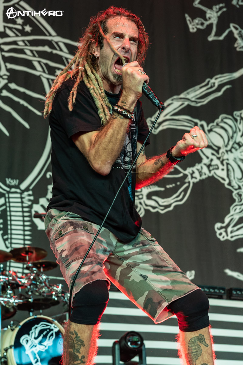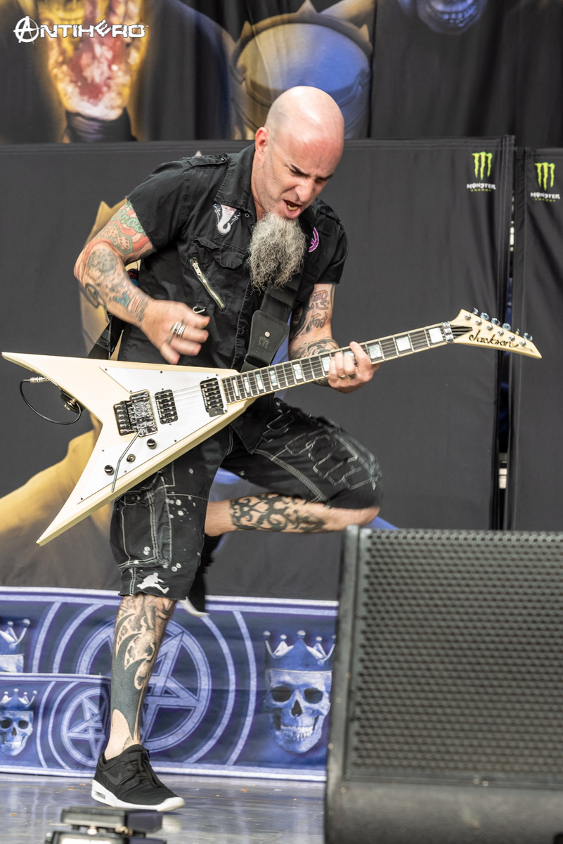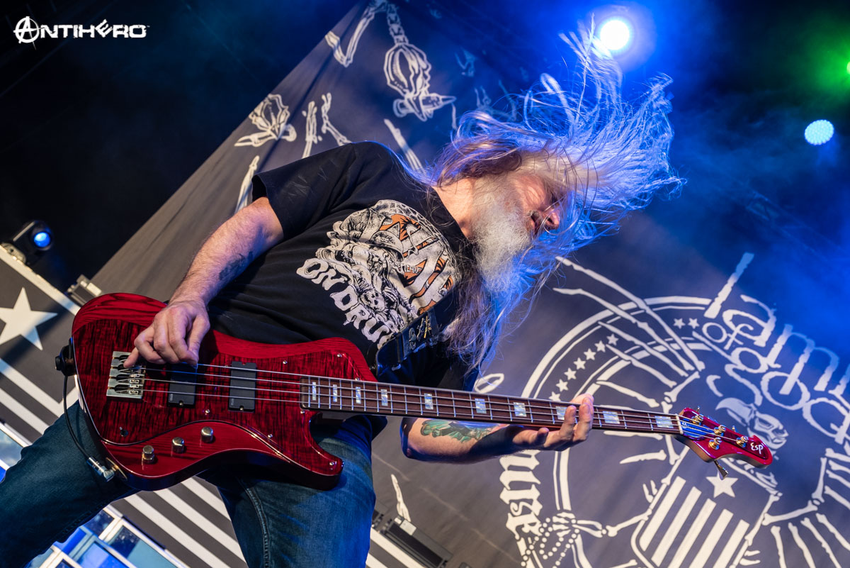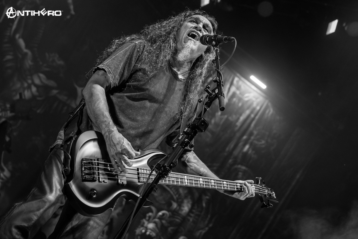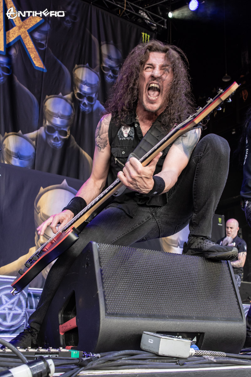 For me, my biggest and most memorable moment of the night came when fellow members of the Big Four Anthrax, took the stage. Now I’ve seen Anthrax before, so my level of excitement was extremely high for their performance, but I could have never guessed what was about to happen during the band’s second song. I was dead center in the photo pit as frontman Joey Belladonna was walking across the speakers interacting with the crowd. As I am looking through my viewfinder, snapping shots, I see him motion to me. Before I know it, he is standing right in front of me, I feel a light tap on my cheek, well about five light taps. Thinking it was someone else in the photo pit messing with me, I put my camera down and turn to my left. I see one of my buddies pointing at Joey, who is looking down at me, saying “Get the shot”. Thinking that he wanted my camera, I froze. It was a moment where my brain was trying to process everything that was going on but completely failed to. What can I say, a metal god touched my face! Anthrax always delivers the most energetic performances and honestly bassist Frank Bello is one of the most fun musicians to photograph.