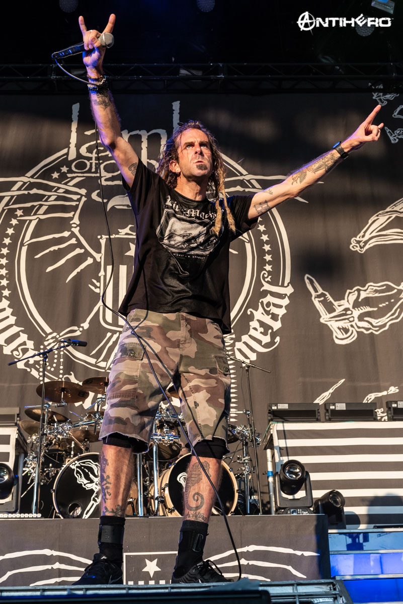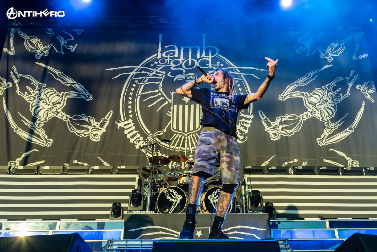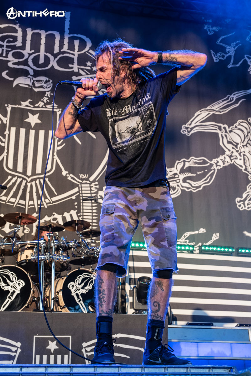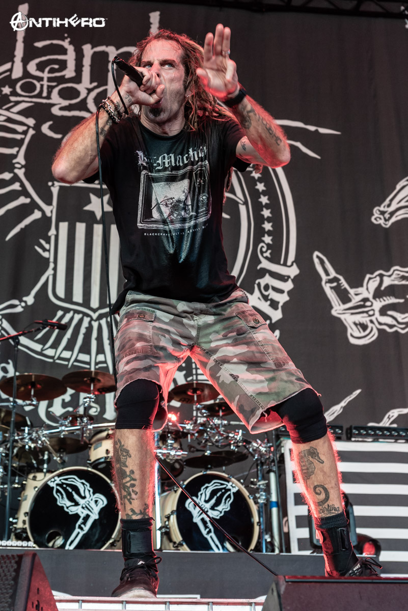 After I gained my composure in the VIP section and made sure that I got the shot on my camera, it was time for one of the bands that I was most excited about seeing, Lamb of God. Now, I have been a fan of this band since I was about 18, living in a party house watching the same four DVDs for days one of the being Lamb of God Live. So, I can honestly say that my expectations for this one were extremely high, but by god did they blow them out of the water. I have a ton of respect for Randy Blythe and what he has done for the industry, but as a frontman, I don’t think it gets any better than him. From his demand of the crowd’s attention to the carelessness of his own body by jumping off of anything and everything he can get air off of, he delivers an amazing performance for every single person in attendance. For me and in my opinion, I feel as if Lamb of God set the bar extremely high for Slayer, creating large mosh pits outside the protection of the awning on the lawn of the venue.
