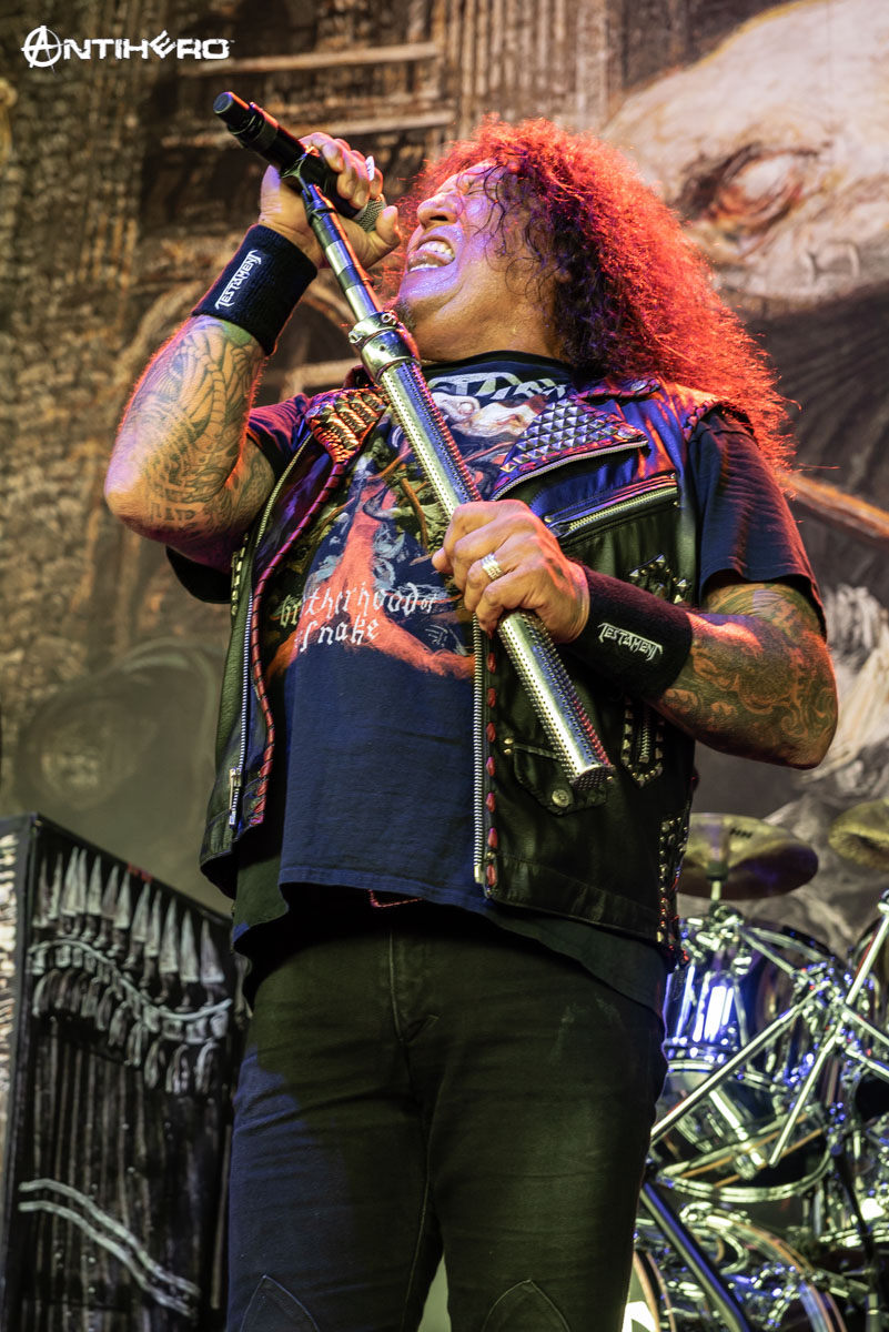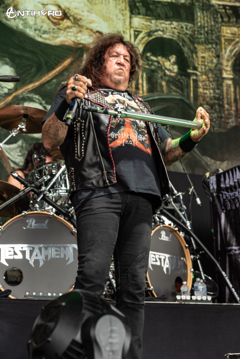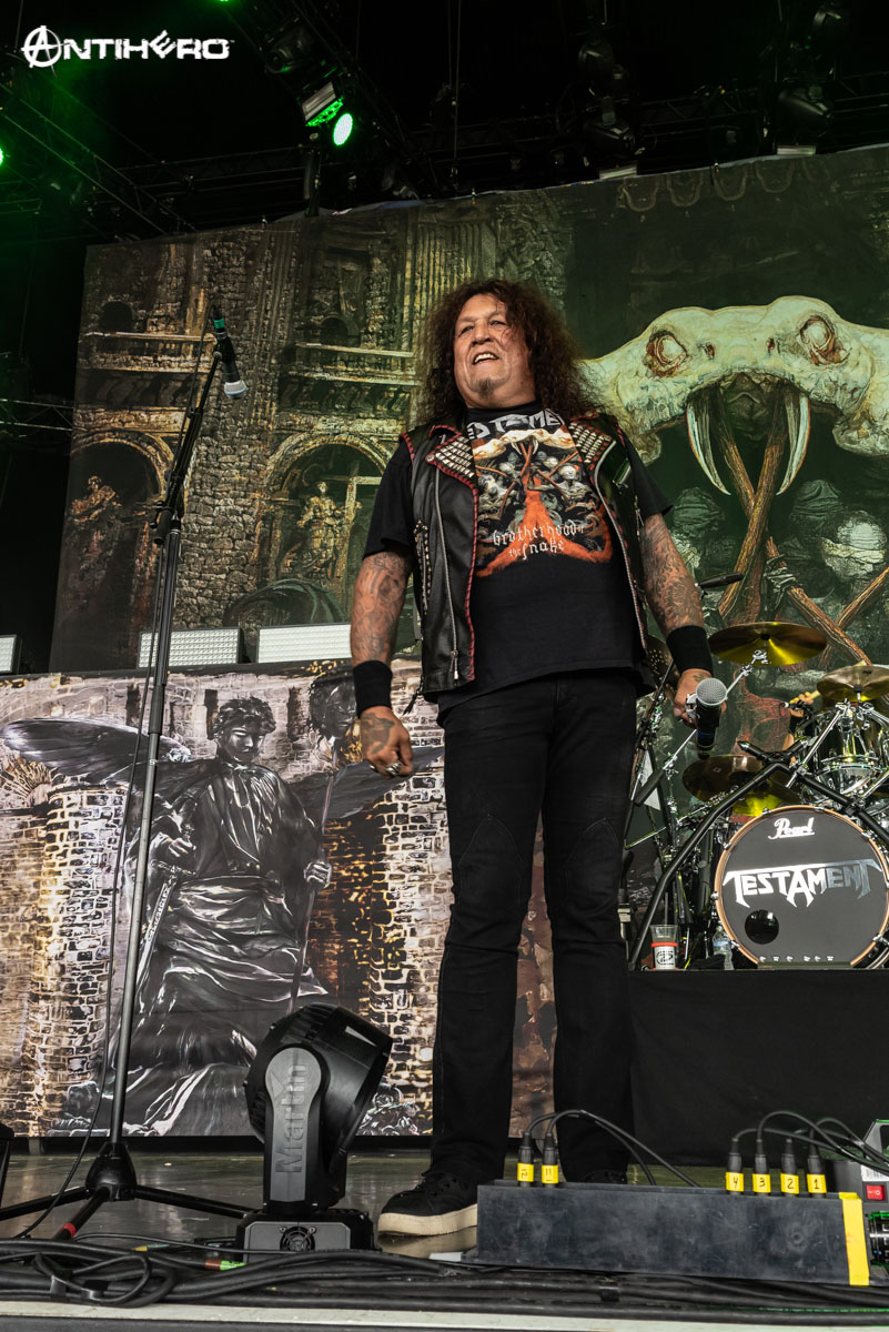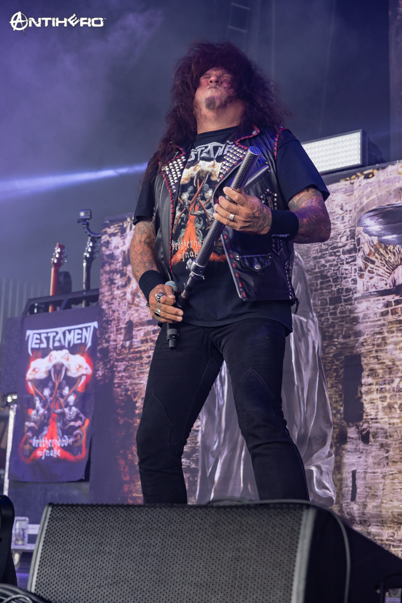 It was a hot and humid afternoon in Charlotte, North Carolina as the tour stopped at the PNC Music Pavilion. The evening was stacked with bands who are all worthy of headlining places but the symbolism of these bands opening spoke volumes about the influence that Slayer has had. The first band to hit the stage, California’s own and fellow thrash legends, Testament. Testament delivered an amazing performance, setting the bar high for the bands that followed once their set was complete. With tons of energy and amazing crowd interaction, this band showed exactly why they have had the long career that they have had.