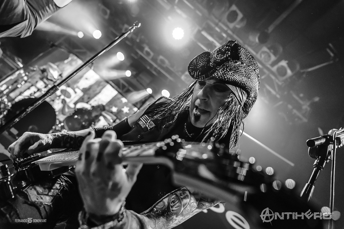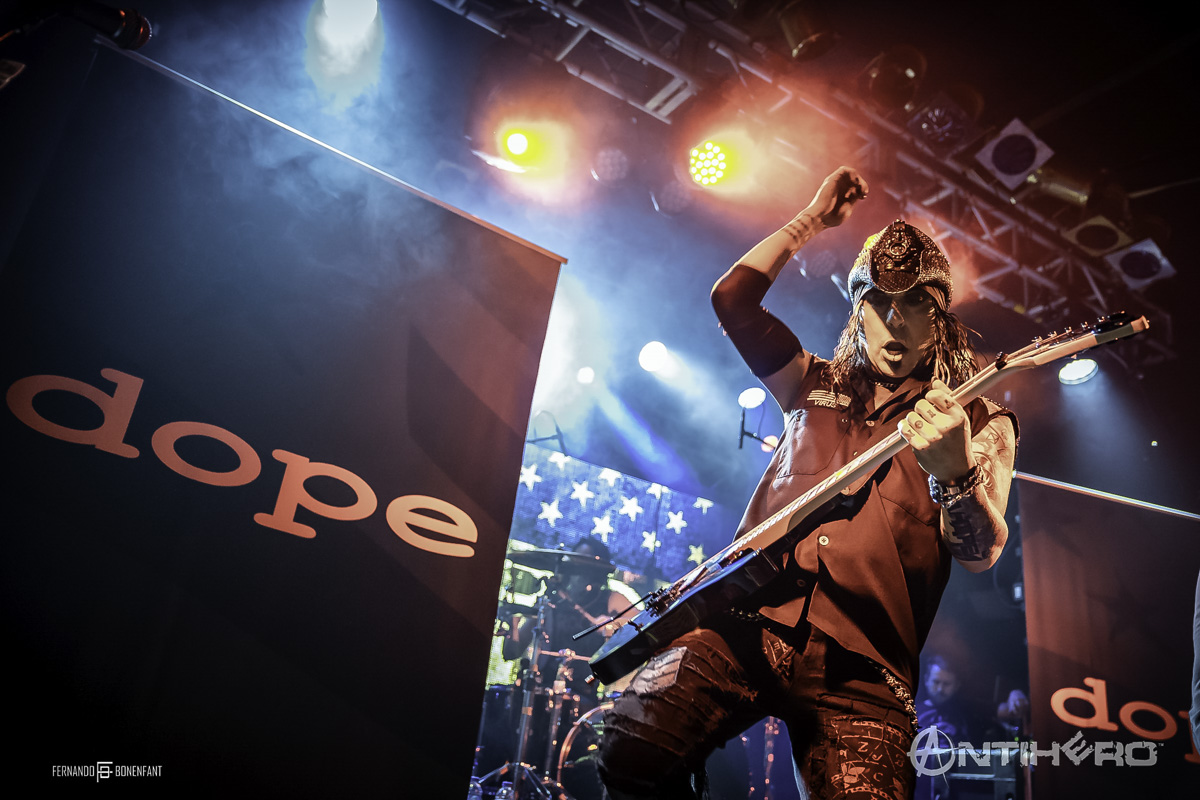 The ferocious industrial/nu-metal band Dope kicked things off tonight with a filthy, dirty performance fuelled by distorted screeching guitar solos and high energy. London was “ready to go to hell” during the very short 20-minute set with crowd favourites “6-6 Sick” and finishing with the brilliant cover of “You spin Me Round (Like A Record)” (Dead or Alive.) Vocalist Edsel Dope certainly pumped the crowd for the rest of the night.