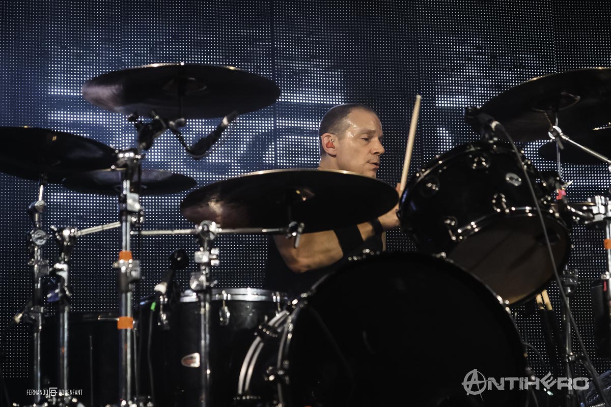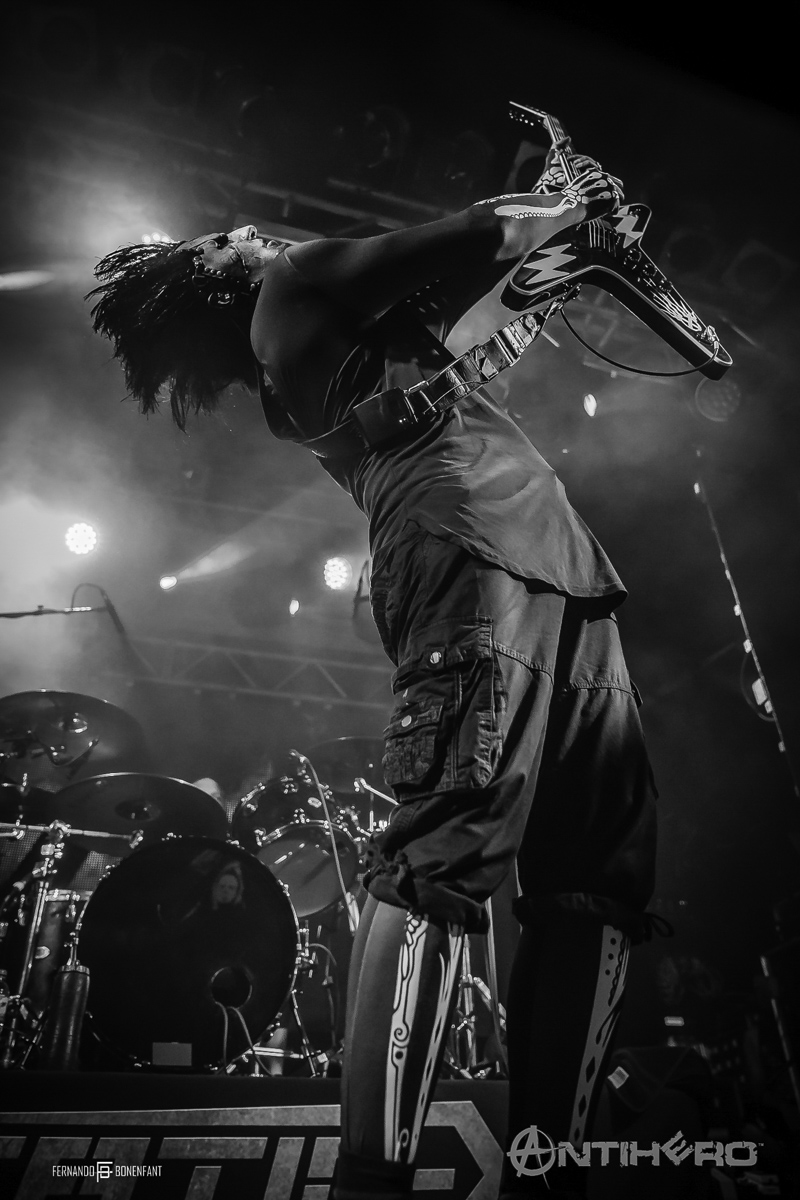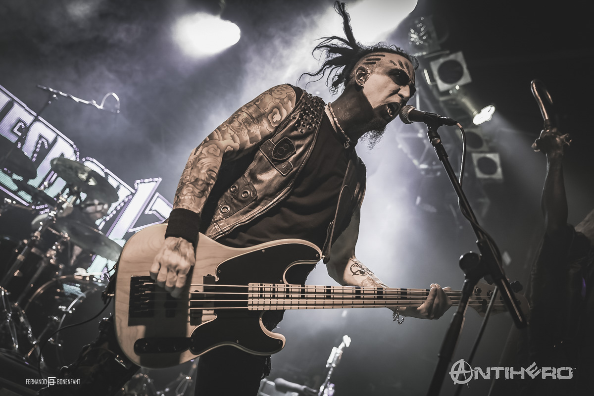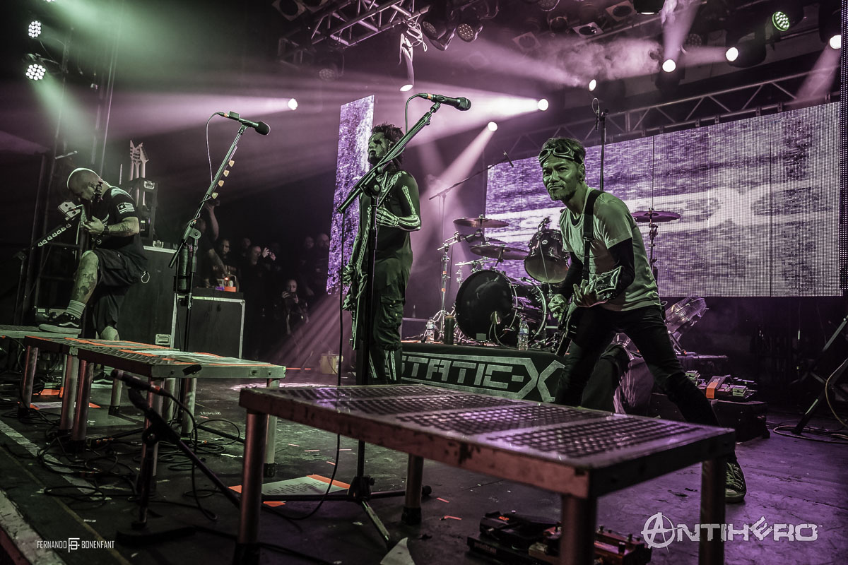 After the energy unleashed during Soil, momentum was high. It was finally time for headliners Static X to hit the stage as a growing buzz was building during the backing track. Featuring the original Wisconsin Death Trip line up, Tony Campos, Ken Jay, and Koichi Fukuda entered the stage to a huge reception with masked mystery man Xero fronting the band complete with Wayne Static’s trademark electrified hair. Immediately the tone was set for the evening as they plunged straight into “Bled for Days.” Their energy was uncompromising, and the aggression coupled with the heavy riffing radiated passion and enthusiasm throughout made it a cutthroat performance.
