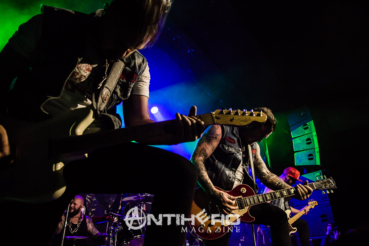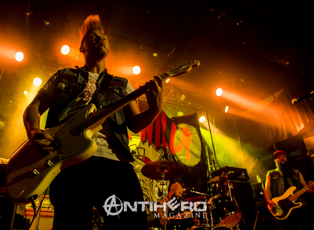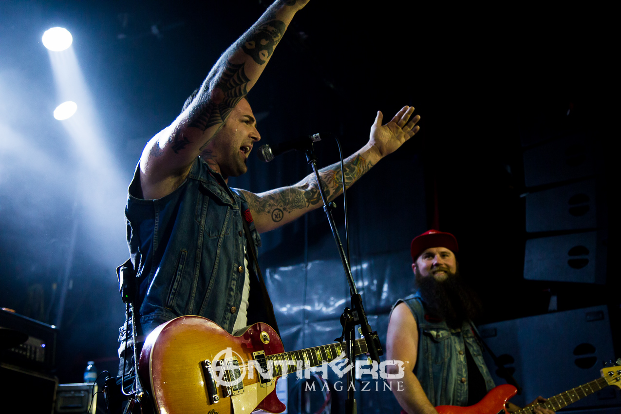 They swaggered on to the stage and launched right in to “RoadHouse,” which immediately had fists pumping in the air and heads banging along to it. Quick mention of the “fucking van” and that it did not stop their determination to reach Toronto, was well received by the crowd as they launched into “Livin’ Free”.