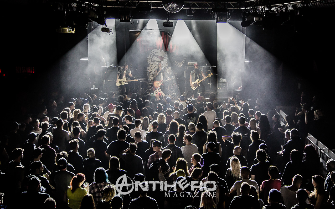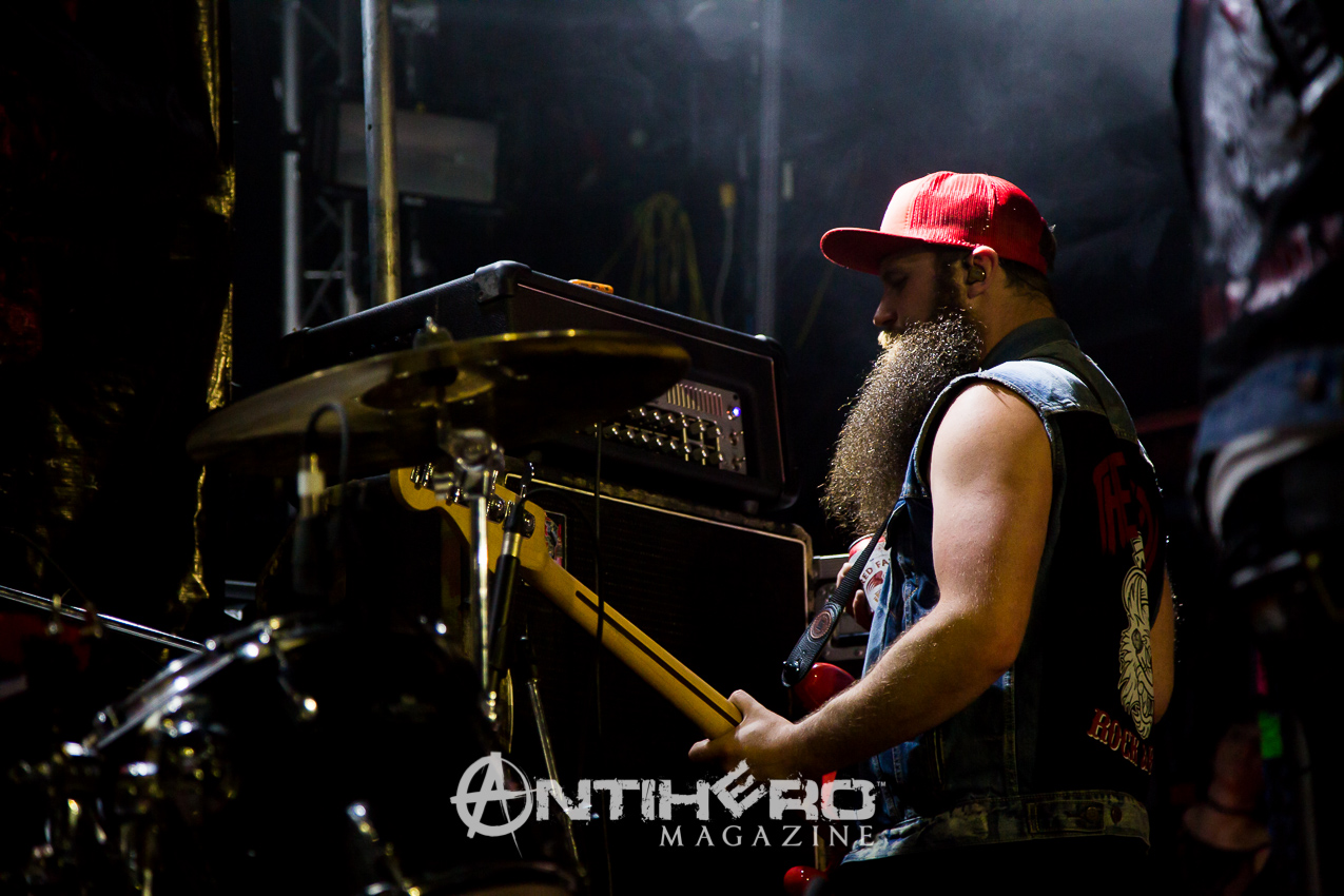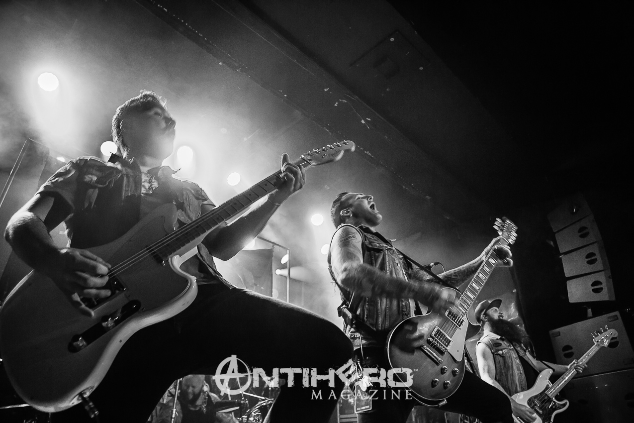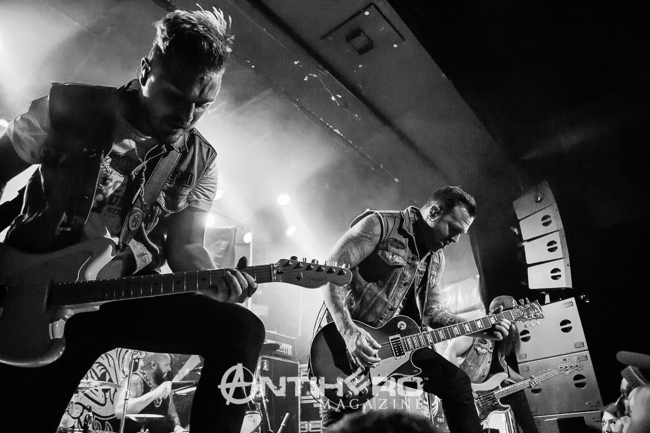 They swaggered on to the stage and launched right in to “RoadHouse,” which immediately had fists pumping in the air and heads banging along to it. Quick mention of the “fucking van” and that it did not stop their determination to reach Toronto, was well received by the crowd as they launched into “Livin’ Free”.