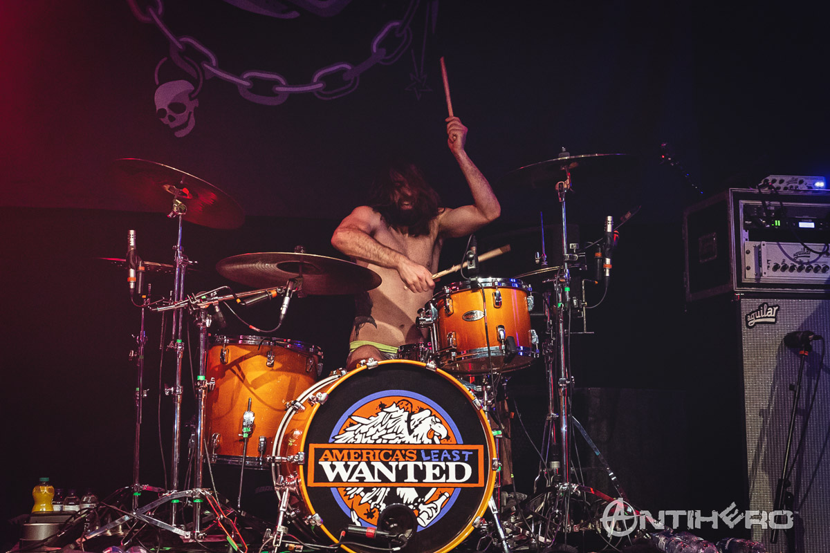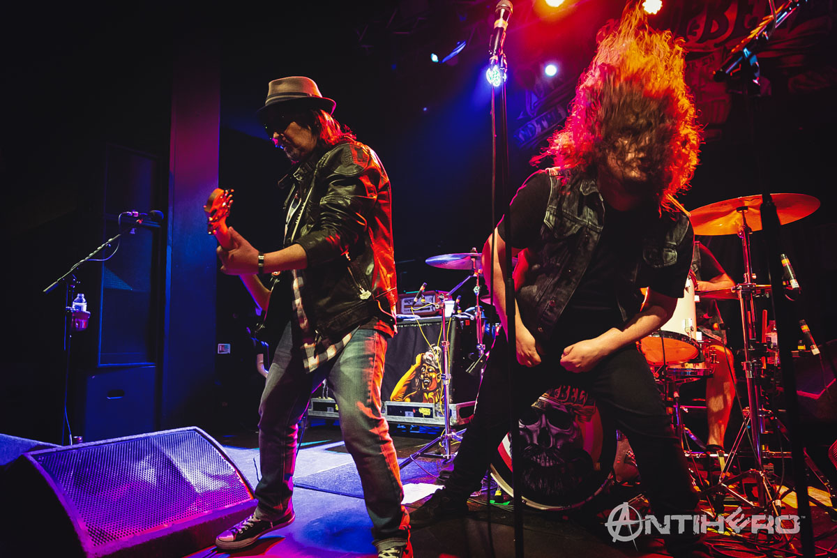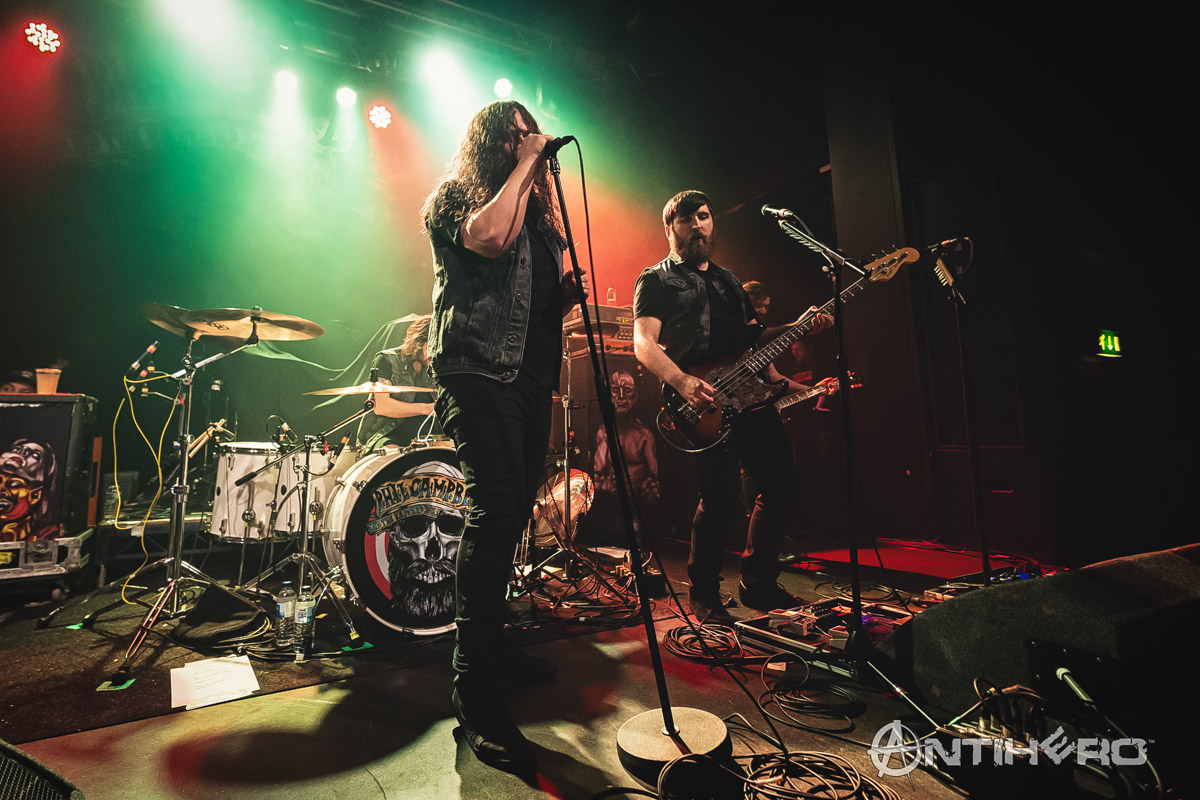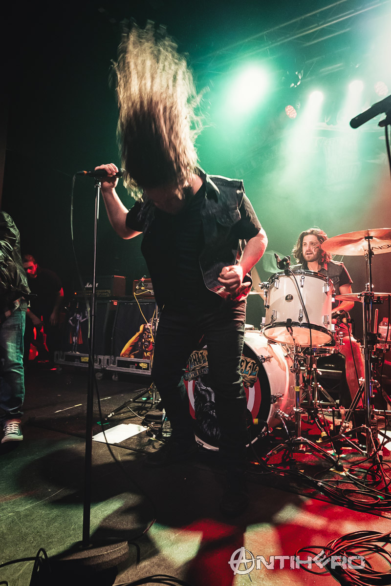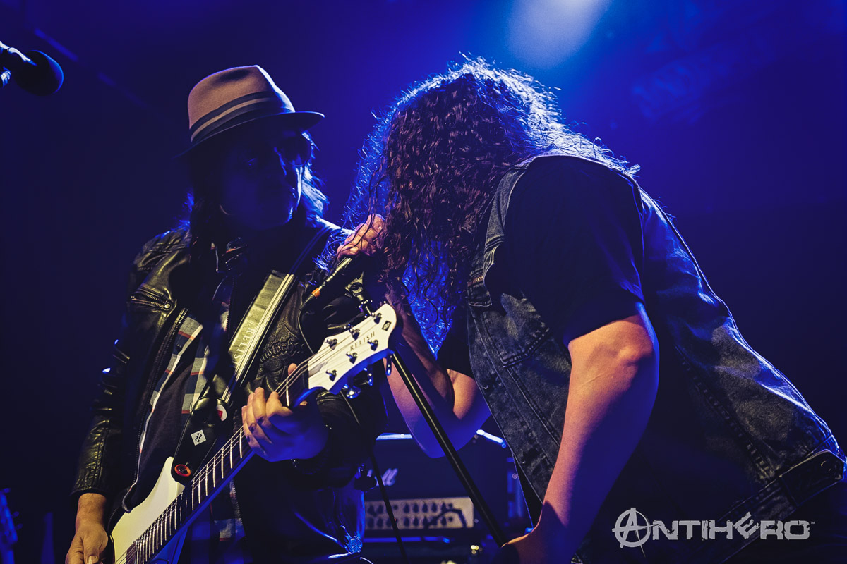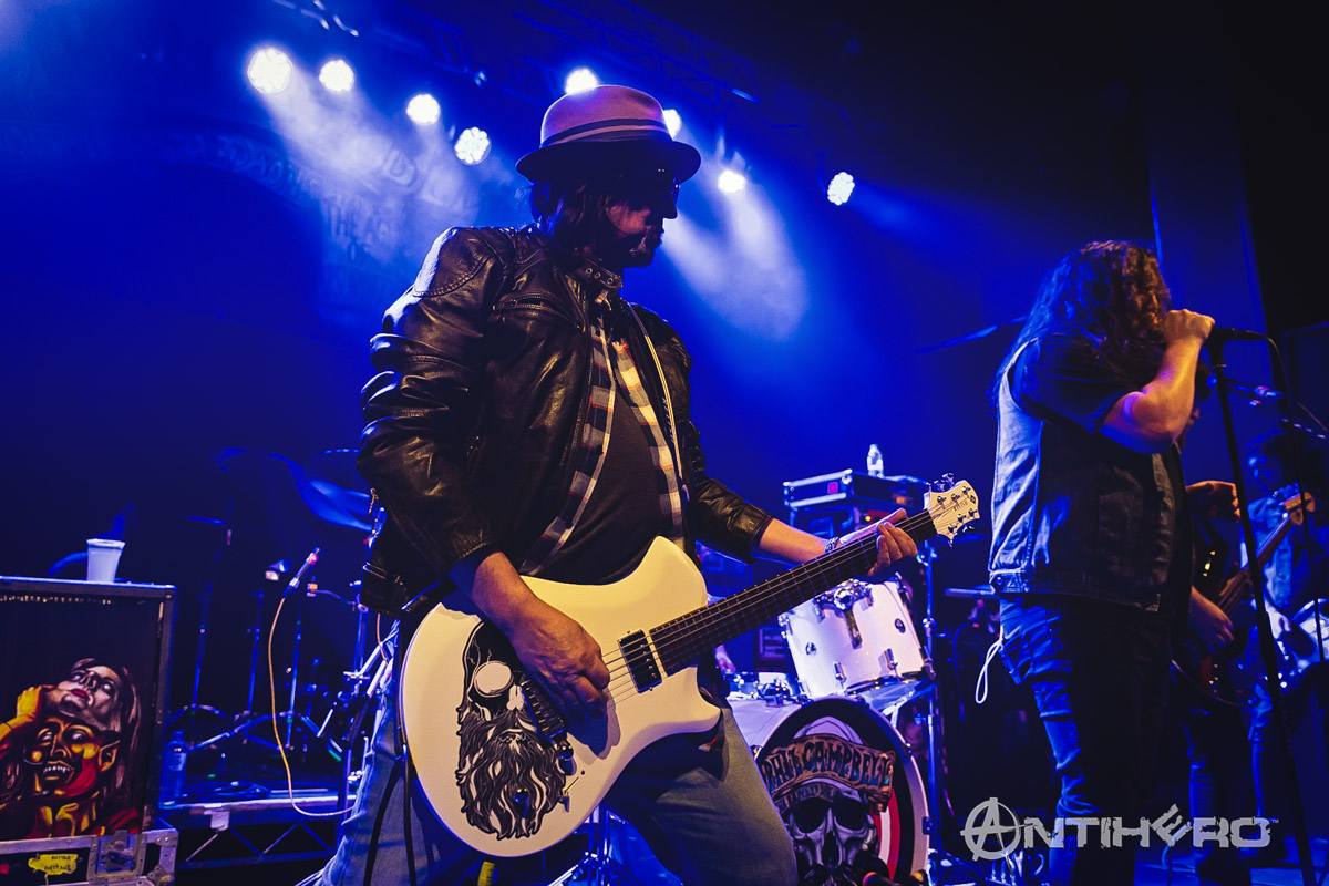 I arrived into the venue just as Phil Campbell and The Bastard Sons took to the stage and it’s not just a clever name for a band, as the line-up consists of Motorhead legend Phil Campbell and his three sons, Todd, Dane, and Tyla. Although I (and their mother) are not so sure about their official bastard status. Handling lead vocal duties for the group is family friend Neil Starr and their debut album, The Age of Absurdity, was released this January and has garnered many positive reviews since then.