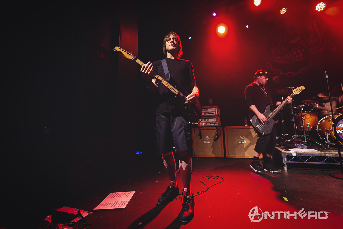 This was the first show on the UK and Europe leg celebrating the 25th anniversary of the release of their debut album, America’s Least Wanted. Even though this is an anniversary tour, it is not a straight run through of the celebratory album in question but more of a retrospective journey through the majority of the band’s back catalogue. Being the first night of the tour, everyone seemed fresh and ready to go, with Whitfield, Klaus, Dave and Cordell pacing and bouncing across all areas of the stage and playing up to the audience, and each other, as much as possible. Thankfully, the volume had been dialed back slightly after the Bastard Sons set so the songs were delivered with better intelligibility while still maintaining all the heft one would expect. In fact, compared to the original records which had that 90’s high sheen production value, in the live setting, the songs come across with an imbued sense of weight and freshness which really helped to connect with the crowd. This connection was most evident during the closing lines of “Cats in the Cradle” when the father’s revelation that his son had grown up like him was delivered by the crowd with such passion and emotion that it seemed to actually knock the band backward a step or two. And therein lies the appeal of Ugly Kid Joe. While they may not be the most prolific band when it comes to recorded output through their career to date, they are a band that revels in what they do and because of this obvious joy that they display on stage, they have amassed a loyal fan base that sees them playing bigger venues each time they come to town. I came into this show thinking they would be fun to watch, but I didn’t expect them to be that much fun.