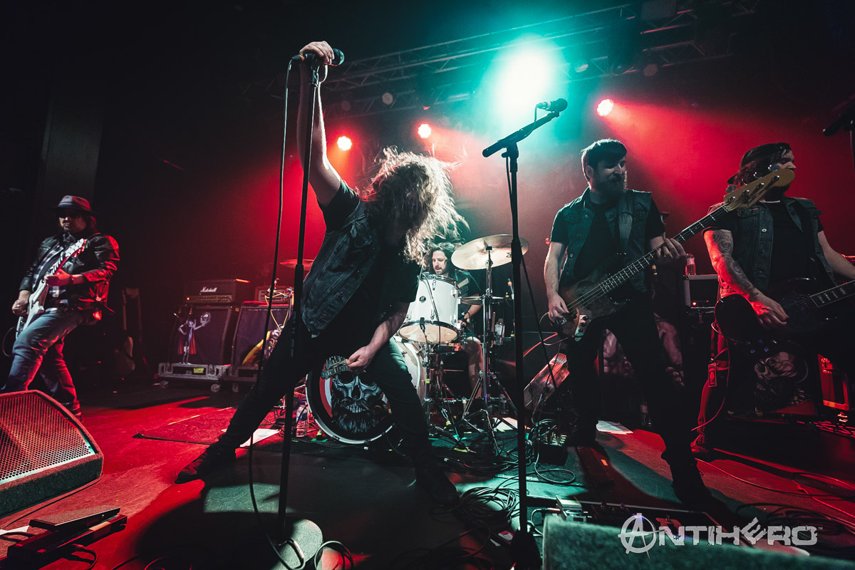 Lined up across the front of a slightly cramped stage, the Pontypridd 5-piece launch into their set and lay down the template for the next 35 minutes which included huge riffs, soaring solos, plenty of headbanging and the odd crowd singing face-off. As this was my first time hearing the band, I was happy that they weren’t aiming for “Motorhead Mk II”, but are striving to make their own mark with a heavier rock orientated sound. One thing the Campbell patriarch has brought with him from the Motor-days and instilled into his kids is to play at an absolutely blistering stage volume. While those in the crowd wearing the aged battle vests would expect the ear-numbing sound levels being thrown forth, it did come at a cost as, at times, Neil Starr’s vocals just couldn’t rise above what the rest of the band were doing and ended up becoming lost in the mix. Luckily there were no such issues for their penultimate song, the rather catchy Ace of Spades, which unsurprisingly brought the biggest reaction of the set. Phil Campbell has done a great job of bringing together this band, one that will ensure that his legacy will extend beyond the glory days of yore and with only one album under their belt so far, there’s still life in the old dog yet.