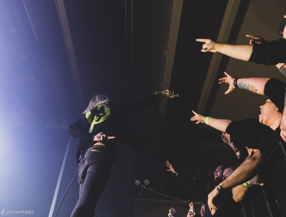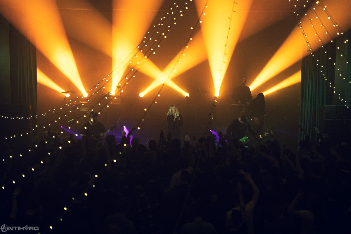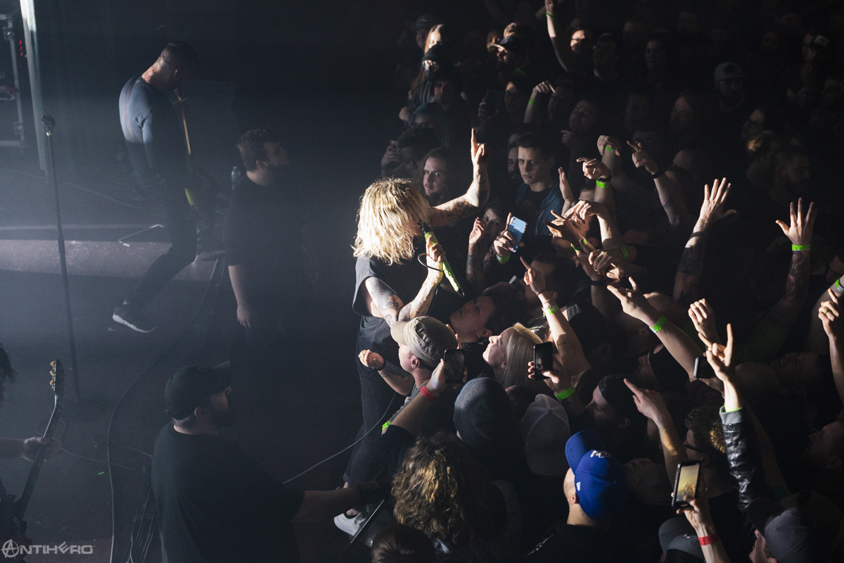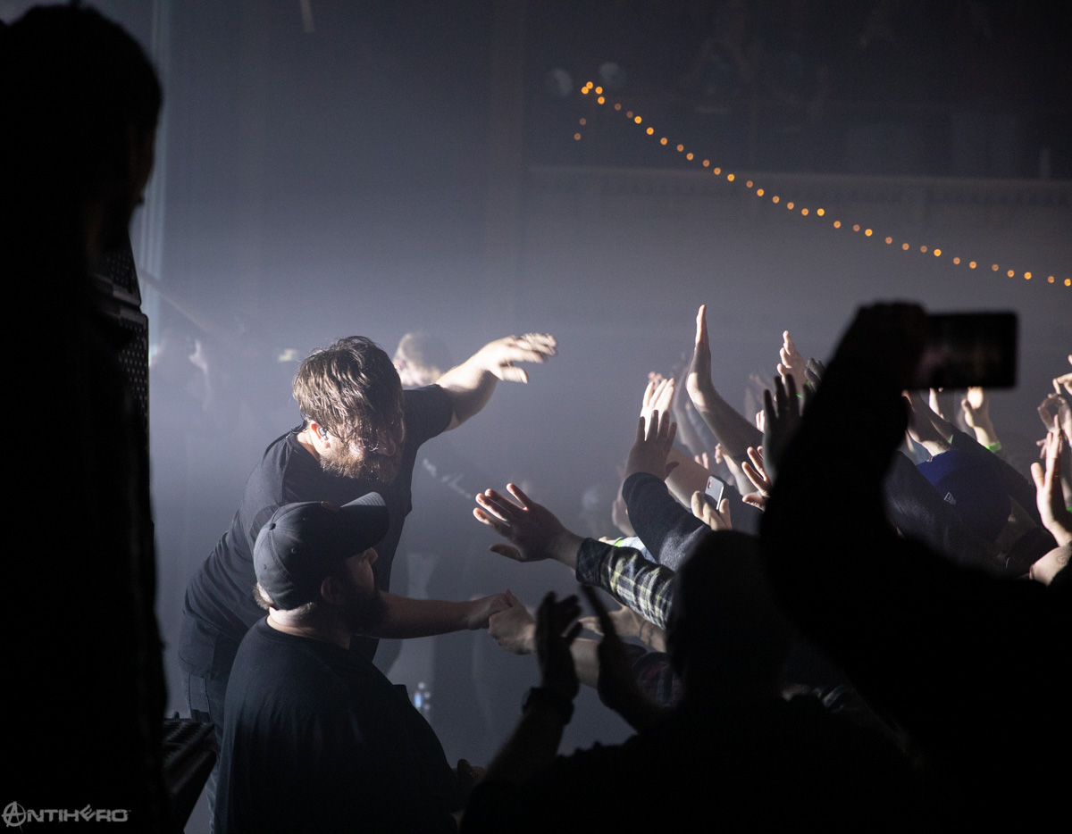 After only one opening band (Columbus’ own The End of the Ocean), Underoath hit the ground running with their loud, high energy, and sweat filled performance on a stage almost level with the audience (which was a dream as a short photographer). This only added to the more intimate feel, as this room held around 500 or so people. This small room inside of an enormous building from the late 1800s that normally hosts weddings and proms. It has been restored a bit, but still keeps most of the vintage charm. Perfect for a concert, right? Despite my initial skepticism when entering, that answer is yes. The sound ran great, the lighting was spot on, and the balcony added a perfect view for those not wanting to mosh.