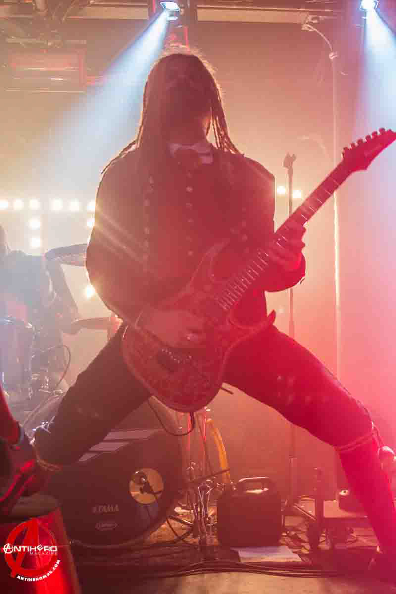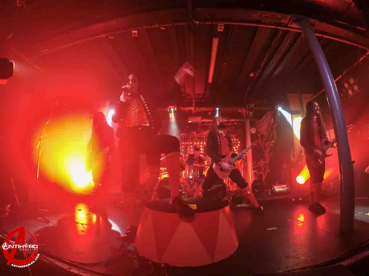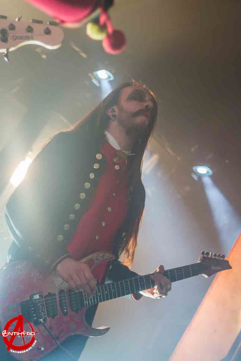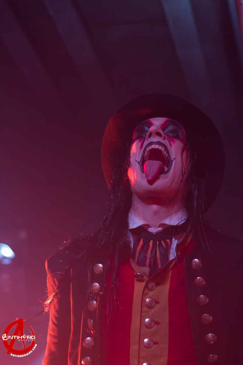 Johannes Eckerström, a ridiculously tall, immensely charismatic frontman, is like a man possessed, whipping the entire place into a frenzy of devil horns and sweaty moshing, interspersed with creepy monologues to the audience. “The Eagle has Landed,” “Paint Me Red,” “House of Eternal Hunt,” and “Black Waltz” are followed by drummer John Alfredsson’s obligatory drum solo, with the band then launching into “Vultures Fly,” which sends the crowd absolutely insane. “Murderer” follows and then “Fiddler’s Farewell” takes the energy down a notch, with Johannes donning a Pierrot clown costume and the slower tone of the song highlighting his more delicate vocal styles. It’s a lovely moment, well performed and eaten up by the crowd.