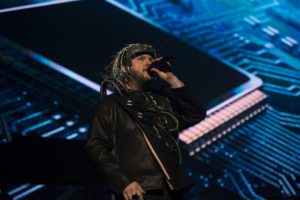 Getting into the venue, the fans are greeted by large curtains which, as the show begins, open to a large stage and a big screen working as a backdrop that showed a number of impressive animations over the night.