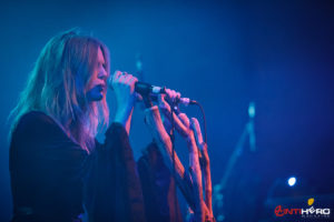 Only one opening band tagged along for this trek, a Danish performer under the moniker Myrkur. Frontwoman Amalie Bruun writes and records all the parts except drums by herself (although her live backing band is quite excellent), and the music she creates is certainly unique. A thick, doomy mix of black metal and European folk metal – actually not as rare a genre as you might except – Myrkur‘s songs were all about texture, featuring a predominant mix of clean, soaring vocals that wouldn’t feel out of place on an Enya song, but occasionally switching to possessed screams that pierce the ears and would be downright unsettling if they weren’t so beautiful. The backing music was never bright or cheery, but due to the folky influences, never felt particularly brutal, even with the drums hammering out blastbeats and the guitarist’s speed-strumming abilities put to the test.