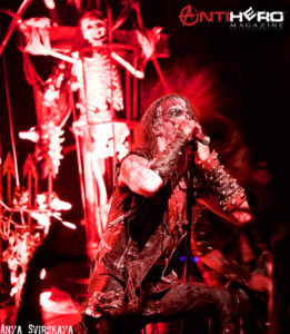 WatainLead vocalist Erik Danielsson starts the night with his traditional ritualistic mojo thing he does as Watain tears into the song “Underneath the Cenotaph,” followed quickly by “Black Flames March” from 2013’s The Wild Hunt. While most of the material tonight seemed like one extended song that ran for an hour, it wasn’t until they played “Angelrape” from their debut album Rabid Death’s Curse that things got interesting. With a chalice containing pig’s blood in hand, he then brings the attention to himself by raising it in a ritualistic pose (kind of reminded me of Jay Z doing the diamond symbol that he took from pro wrestler Diamond Dallas Page) and douses the audience with the chalice’s contents. To my surprise, the audience wanted to get drenched with the foul-smelling substance. Once this was over the focus went back to the music as they plunged into the popular song “Outlaw” from their critically-acclaimed album The Wild Hunt.