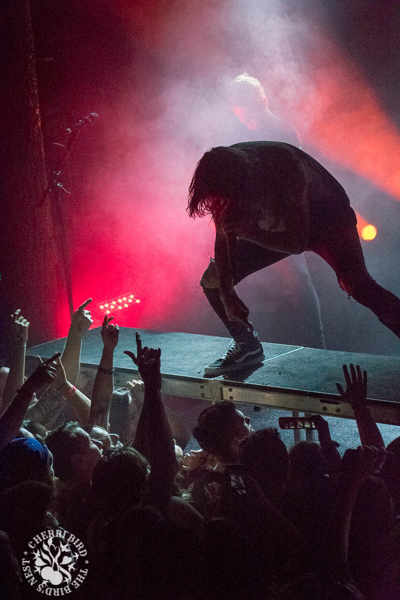 Now, I loved every single moment of this show. Why, you ask? Well lovelies, I’ll tell you. All five bands were kickass and all had a tad bit of individual flair that kept everything fans engaged with all the bands throughout the whole night. A WAR WITHIN kicked off the show and calibrated and tuned the audience into the same channel; dialed us all in, if you will. Here’s what I love about this band from Detroit; their unclean parts are punk-proded, fuckin’ gritty and heavy like the metal that’ll hold a body hostage. And then, and then…wait for it – yep, there is a sick sweet spot in the clean sing-song parts that is so smooth you almost think it’s another band. But, it’s NOT! And I think this is exactly why metalcore is coming up to the surface – it’s not just to suck in some air – it’s because of the diversity intertwined within the bands that create music like this. A WAR WITHIN does this exceptionally well. Check them out on Spotify if you’ve not heard of them until now, they will blow you back a couple of steps. (Specifically Promises…then listen to Where The Lines Are Drawn to hear the evolution…eek!! Ballz-tough!!)