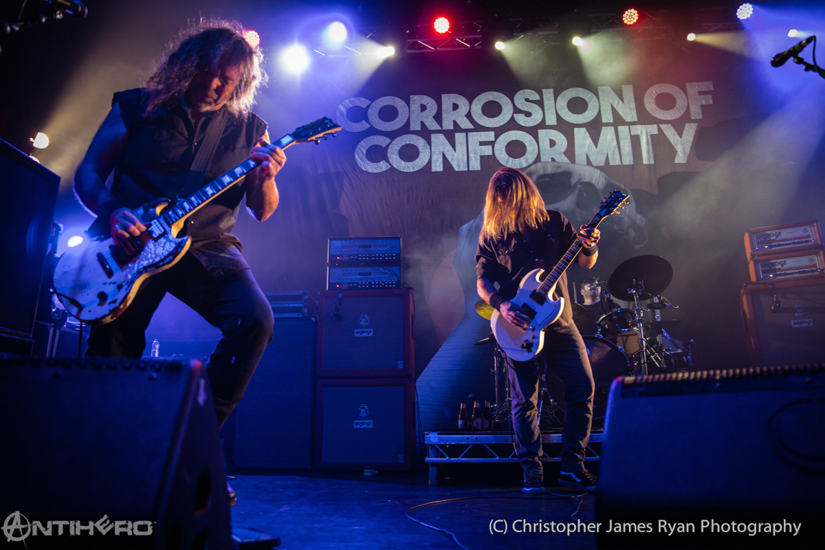 Corrosion of Conformity are a legendary act that have in recent years made the UK a compulsory stop off on each tour that they play. Increasing the amount of UK dates each occasion. they combine a classic song back catalogue, with a simple stage set and prefer instead to just focus on delivering quality in terms of live performance. In a set led by Pepper and also peppered with the obligatory classic anthems like “Clean My Wounds” and “Albatross” (no not that Fleetwood Mac song) the band do just what they do best-laying down a basic heavy groove which has the fans heads nodding in appreciation. Touring to support their latest release No Cross No Crown there are also some newer songs which don’t break any new musical boundaries in terms of style but still deliver in terms of substance…The return of Keenan in 2014 has restored what many fans regard as the band’s classic lineup and that has subsequently ensured that their newest album became the band’s first to enter the Top 100 on the Billboard 200 where it peaked at number 67. Justifiable success for forty years of hard work and many thousands of road miles racked up by the COC guys. No surprises offered up just as expected heavy crushing riffs with a groove. A quality night out with a guarantee of a sore neck come the next day.