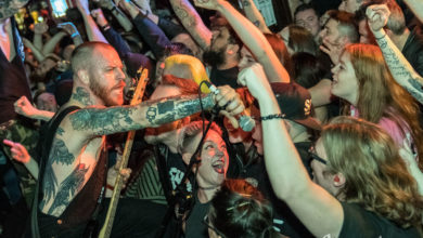 At last the main event hit the stage. DevilDriver came out firing with fan-favorite “End Of The Line,” and it became apparent that the stage was even smaller than usual due to the band choosing to leave their cabs even with the front of the drum kit rather than the back. And DevilDriver thrive in that small stage setting. Guitarist Mike Spreitzer frequently stood so close to the edge of the barrier-less stage that fans along the front row hit in the back by moshers smacked their faces on his guitar – and appeared to think this was the coolest thing to ever happen. Frontman Dez Fafara smiled, high-fived, and fist-bumped his way along the front the entire set, even using fans’ outstretched hands to balance him so he could stand one-legged on tilting monitors while leaning out over the crowd and bellowing through hits like “Not All Those Who Wander Are Lost” and “I Could Care Less,” a bizarre cover of AWOLNation’s megahit “Sail,” as well as enthusiastically received new songs from their upcoming release, “Daybreak” and “My Night Sky,” and of course signature track “Clouds Over California.” The band clearly appreciated having a packed house on a Thursday night, and that positive energy flowed back and forth for 13 songs, the intensity never letting up onstage or off. To wit: the gentleman standing next to me spontaneously Hulk-Hogan’ed his brand new DevilDriver t-shirt midway through the second song, which got a mid-performance laughing hug out of Fafara, and that sort of energy permeated the entire evening. DevilDriver may not be the biggest name in metal, but maybe that’s for the best. If they’re happy playing crowded, dive-bar party shows like their set in Kansas City, fans will be happy to keep coming out every time.