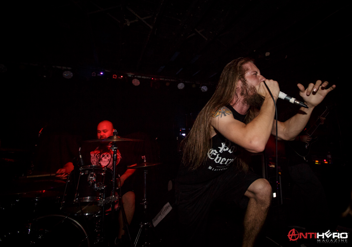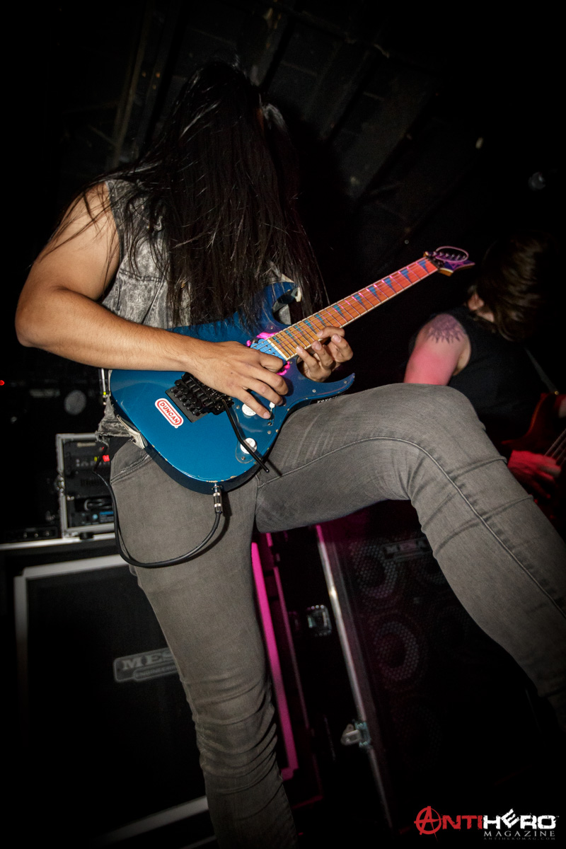 Have you ever wondered what it would have been like to see Motley Crue back at the Whisky-A-Go-Go before they ever made it big? Well, seeing retro power-metal/thrash band Holy Grail in a small venue isn’t quite like that, but it could be easy to confuse them for an opener from the Crue’s club days. The sound is pretty standard (Iron Maiden worship crossed with early Metallica), but the presentation is phenomenal, in no small part due to their lighting tech. While the previous bands were drenched in dull reds, the full color spectrum was used for Holy Grail, including the house laser lights (which in 20+ shows at the venue I didn’t even know existed) and strobes. The small stage seemed a whole lot bigger with the controlled chaos of long-haired, head-banging men flailing around being matched by the equally frenetic light show. The visual and crowd-participation aspect of Holy Grail‘s show not only elevates the music, it compliments it. It’s cheesy and quaint, but it knows it’s cheesy and quaint and still doesn’t give a damn, and that makes it a hell of a lot of fun. The only real gripe I had is with the mix early in their set, as none of the vocals were set high enough until about halfway through.