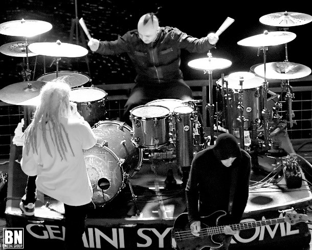 It’s one thing to pick this up from a record; it’s a whole other thing for a band to be able to deliver this live. GEMINI SYNDROME, hands down, delivers what a listener finds trapped in the songs of their records. From what an audience member sees on stage with the animated and engaging way BRIAN STEELE MEDINA plays the kit, to AP’s boisterous bass playing, to the righteous riffs ringing through MEEGS’ and MAX’s guitars. Not to mention the very stoic movements of AARON around the stage; almost like a shaman that is showing the audience all of the secrets of humanity and the age-old questions of life.