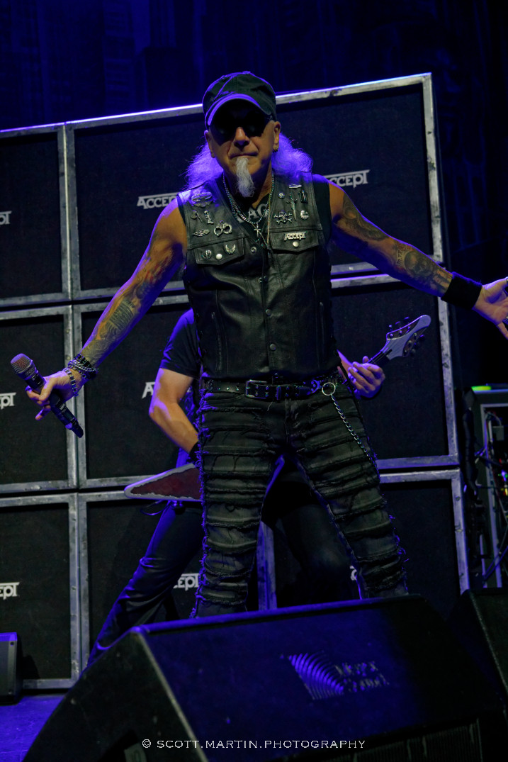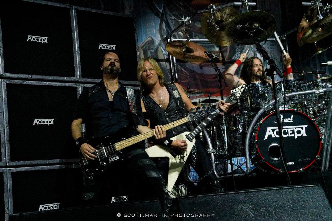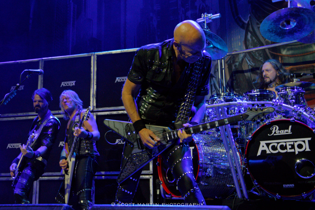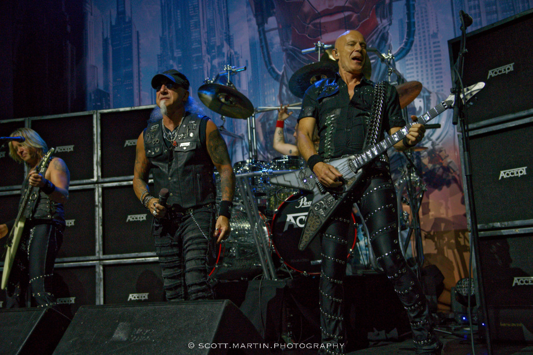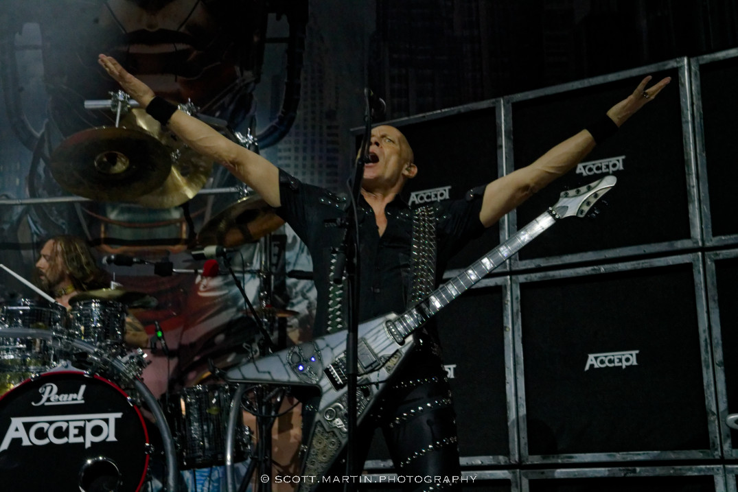Accept took the stage first, wasting no time getting the crowd roaring with their explosive opener, “The Reckoning.” As soon as the heavy riffs from Wolf Hoffmann and Uwe Lulis kicked in, it was clear that the band meant business. With his raw and raspy voice, Vocalist Mark Tornillo was a commanding presence, leading the charge on both older classics and newer material.