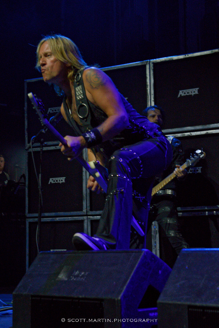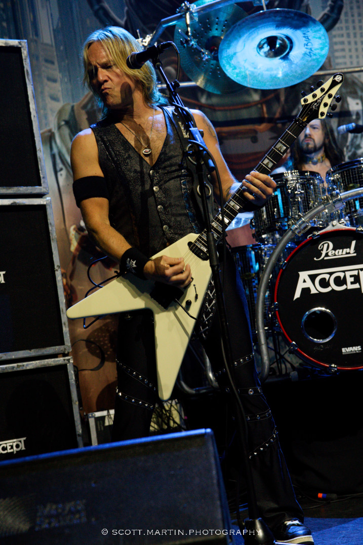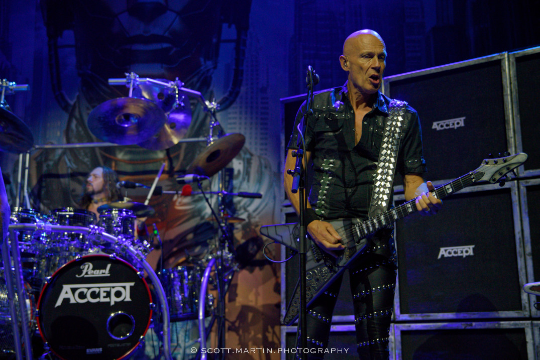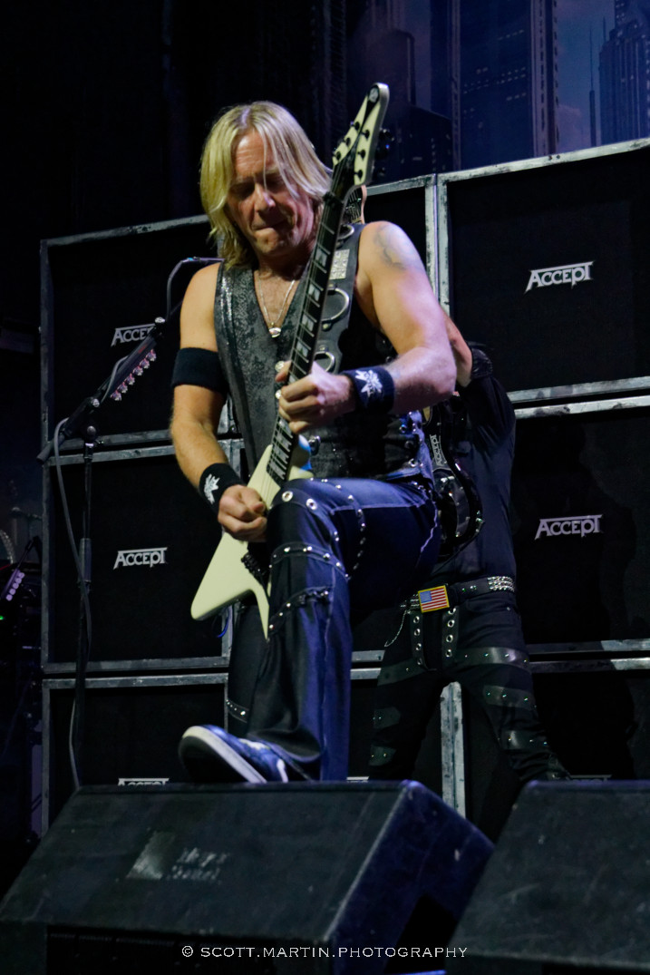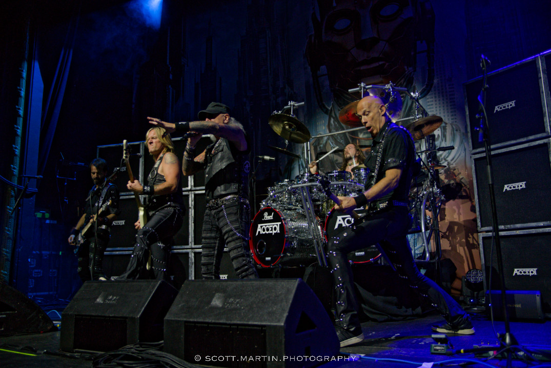Accept took the stage first, wasting no time getting the crowd roaring with their explosive opener, “The Reckoning.” As soon as the heavy riffs from Wolf Hoffmann and Uwe Lulis kicked in, it was clear that the band meant business. With his raw and raspy voice, Vocalist Mark Tornillo was a commanding presence, leading the charge on both older classics and newer material.