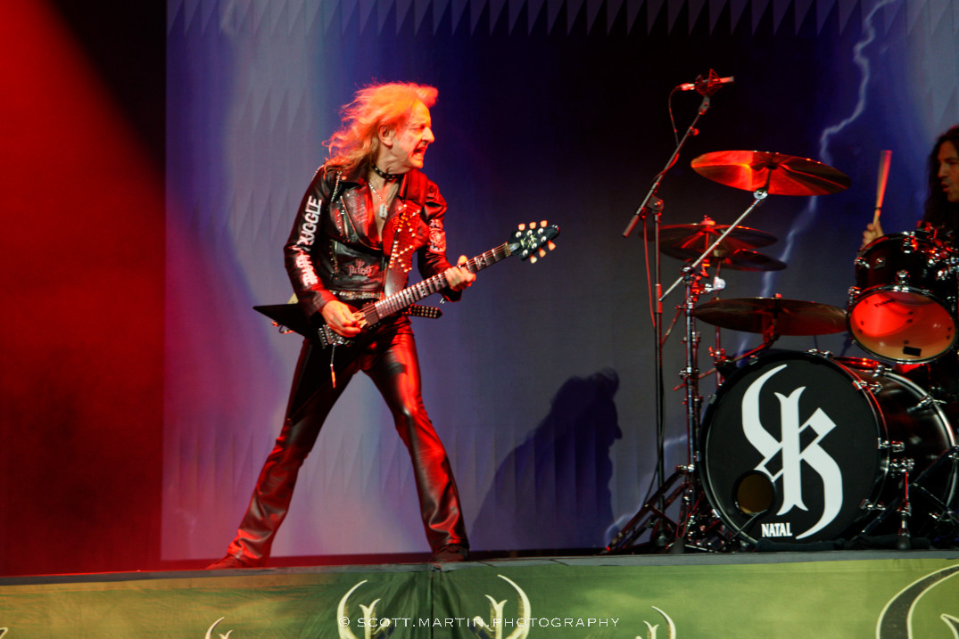 Next came “Strike of the Viper,” another new song that showcased the twin-guitar attack of Downing and A.J. Mills. The track’s fast-paced riffs and Owens’ commanding vocal presence had the crowd headbanging furiously, while Sean Elg’s drumming thundered throughout the ballroom.