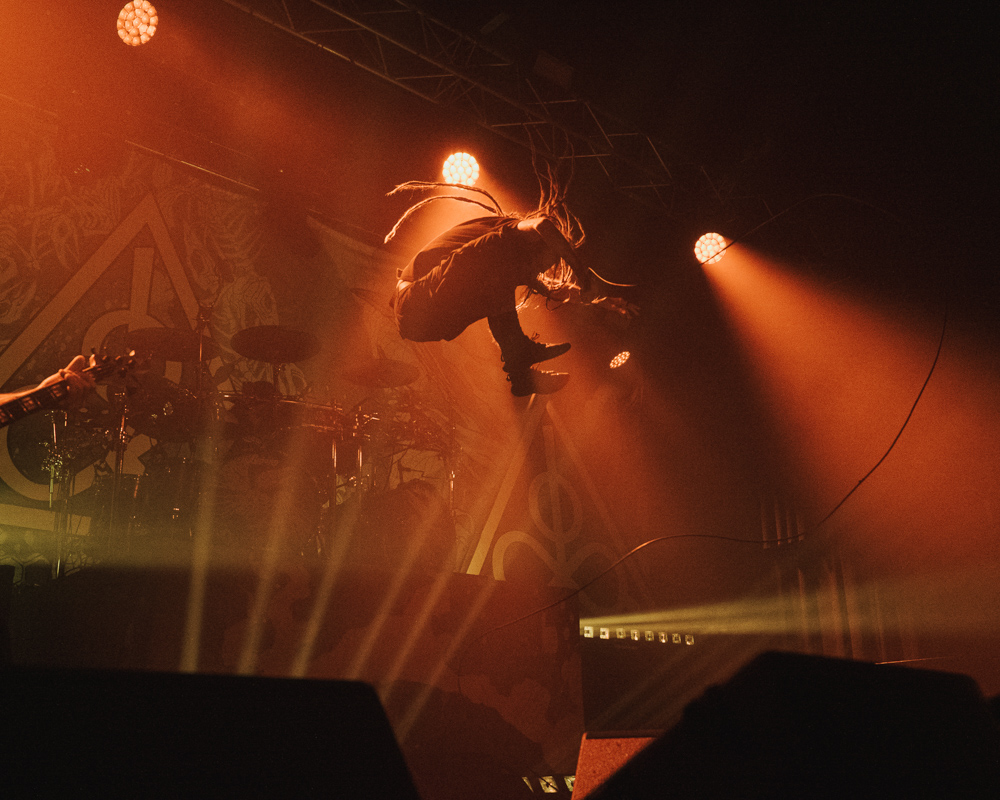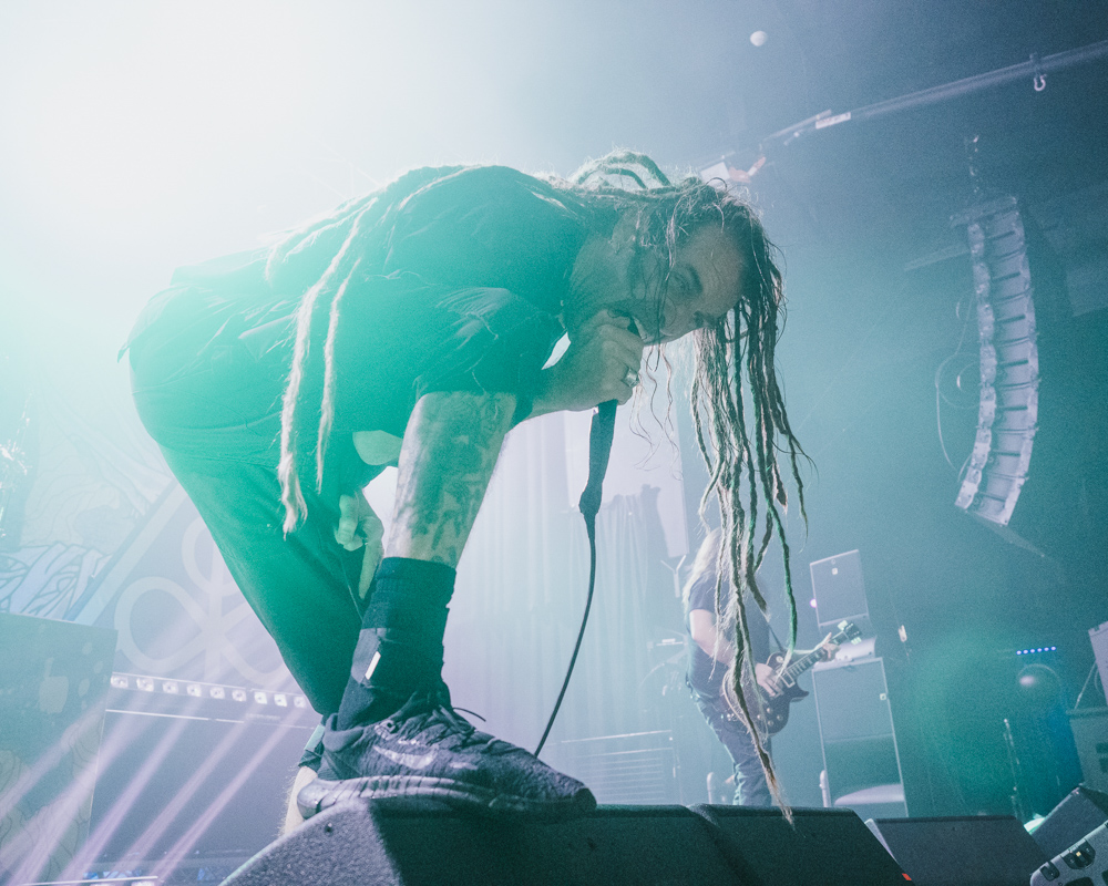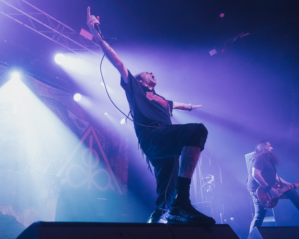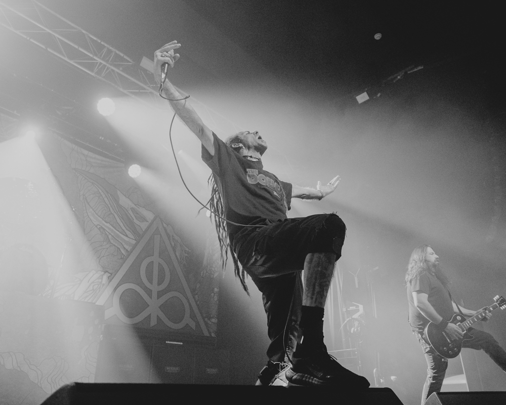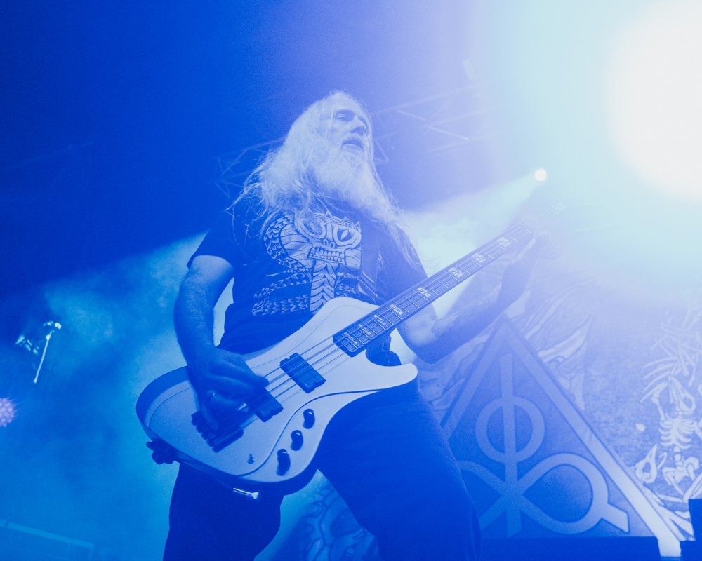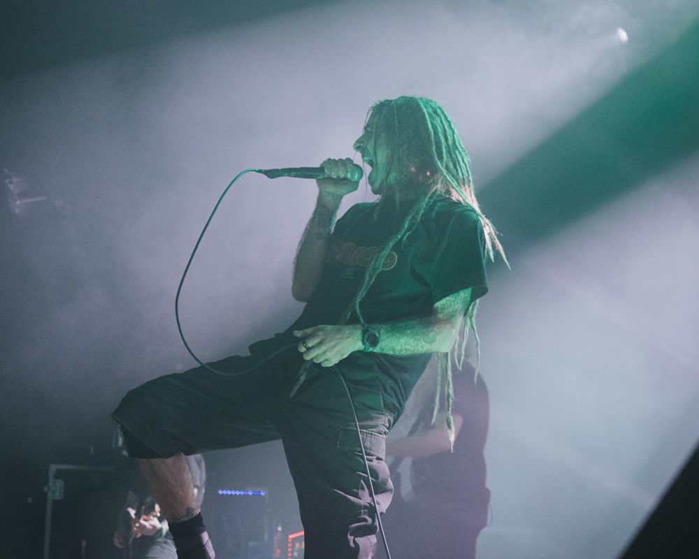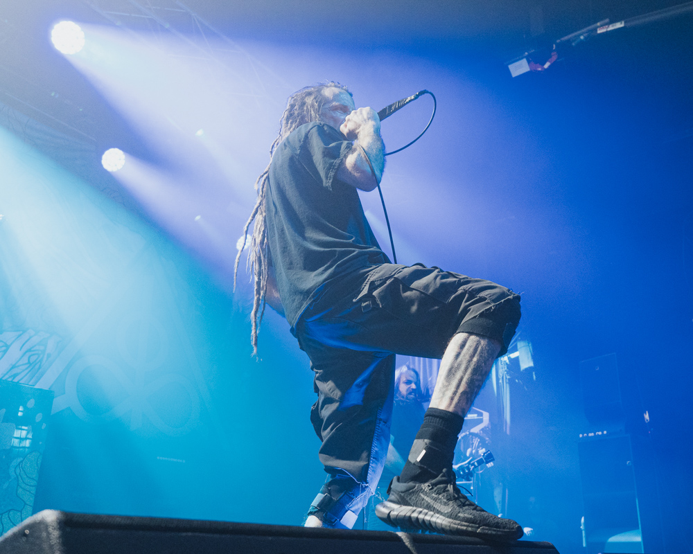 Opening their set with “Memento Mori” from their 2020 eponymous album, and then launching immediately into older tracks “Ruin” and “Walk With Me in Hell,” Lamb of God are sonically crushing, with frontman Randy Blythe a whirling dervish of a frontman, never stopping, continuously high energy, dreadlocks flying all over the place. One of the most impressive things about Lamb of God‘s live show is the level of musicianship on display. The band members are all virtuosos, and their intricate and complex arrangements are executed flawlessly on stage.